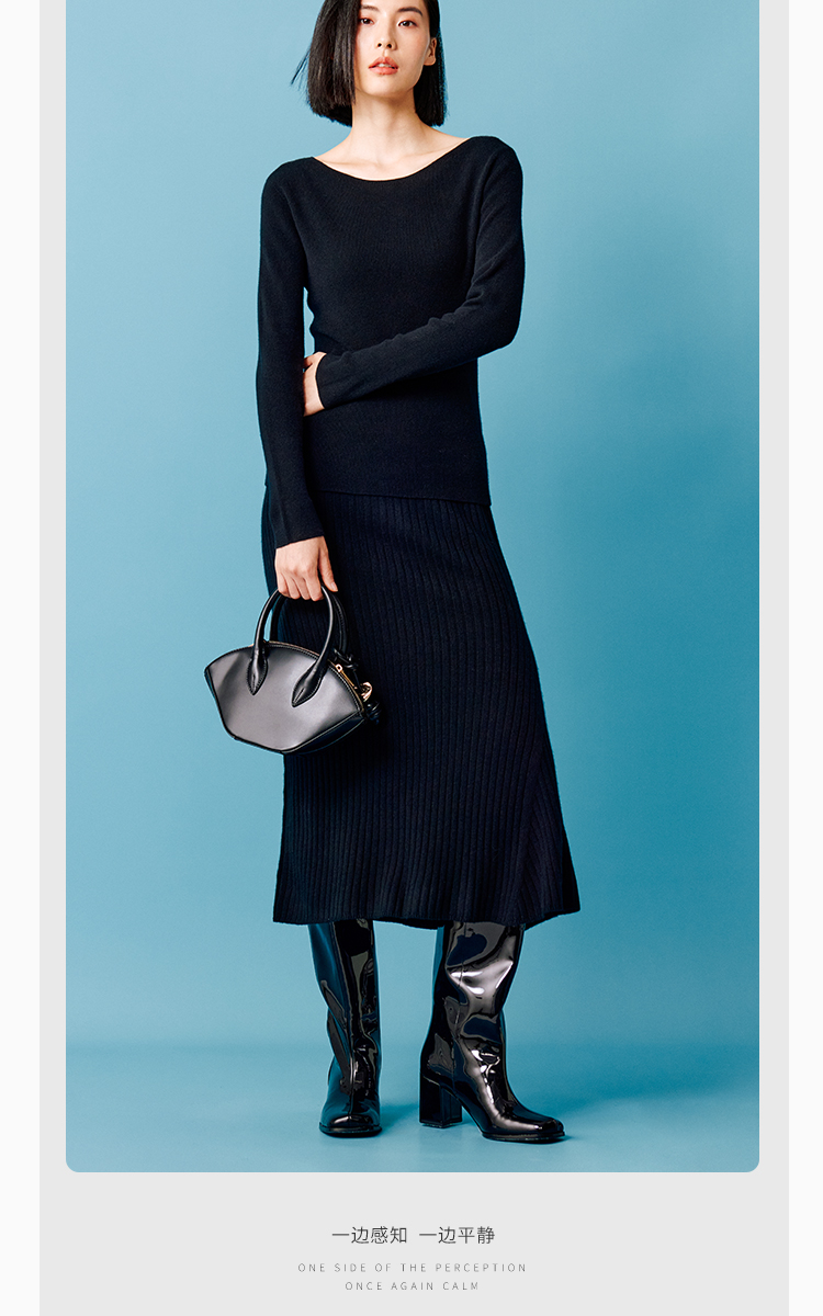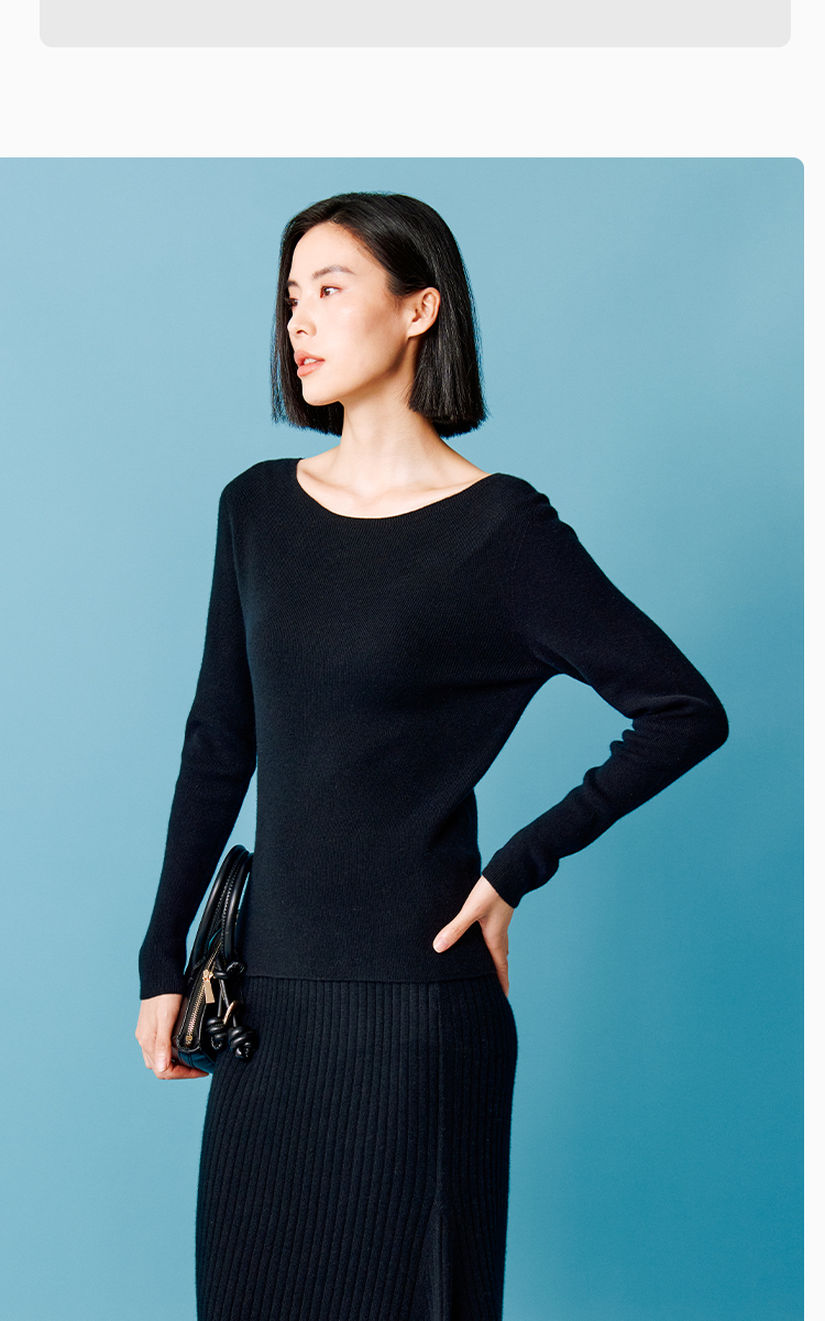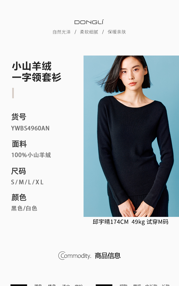 东黎 • 秀场同款 小山羊绒 女士秋冬针织一字领休闲时尚羊绒打底 4960