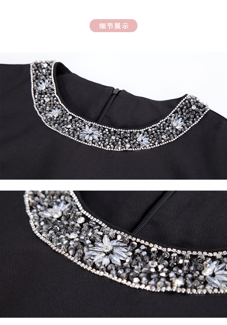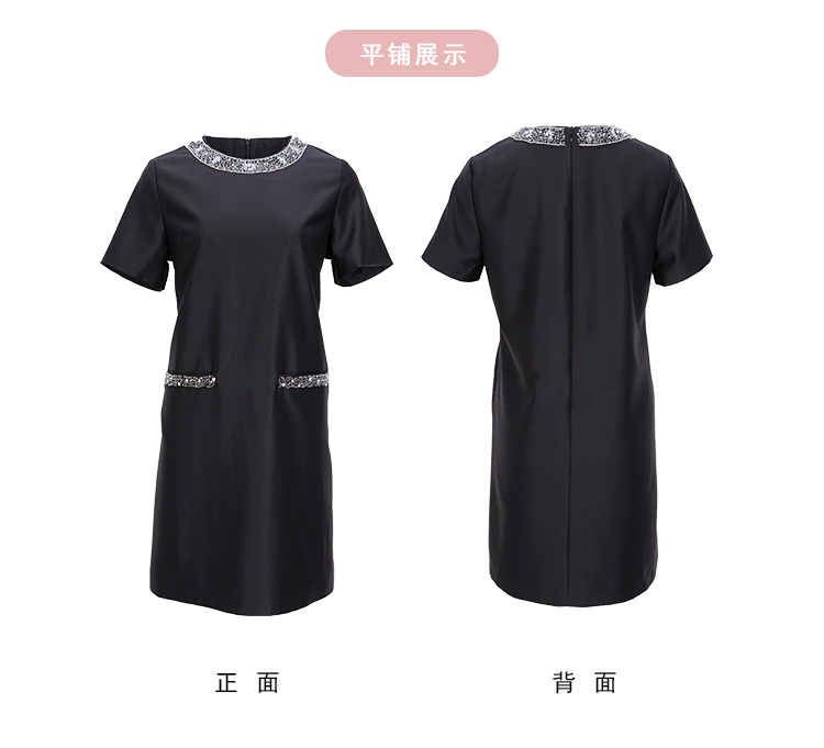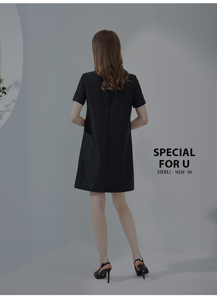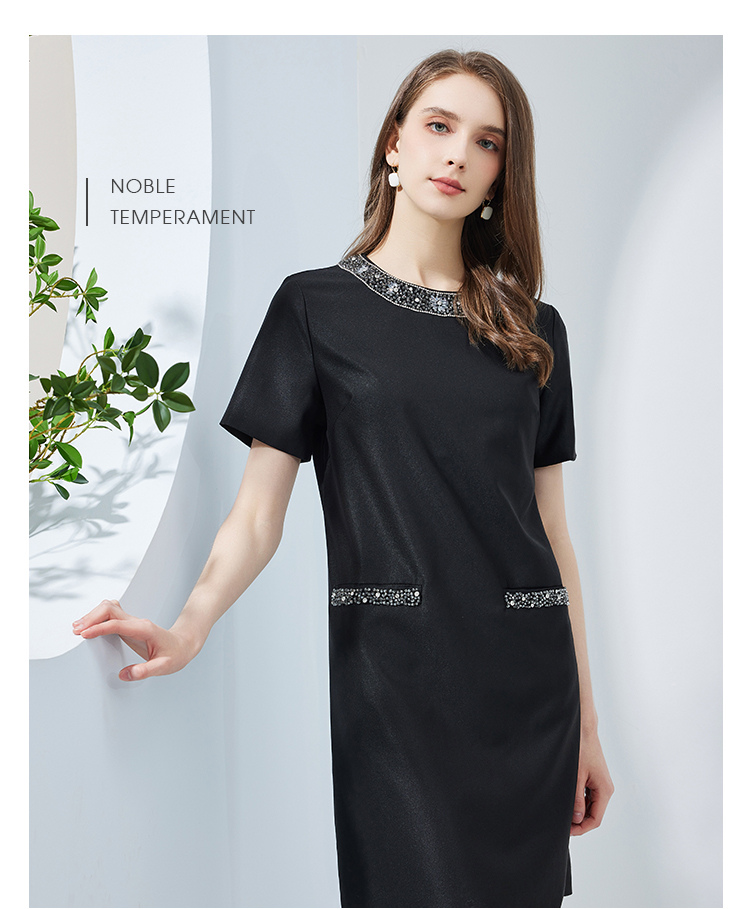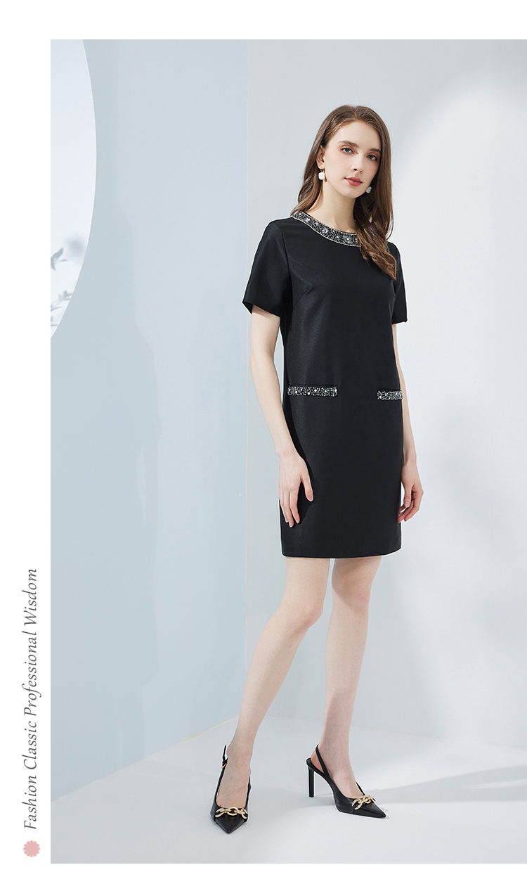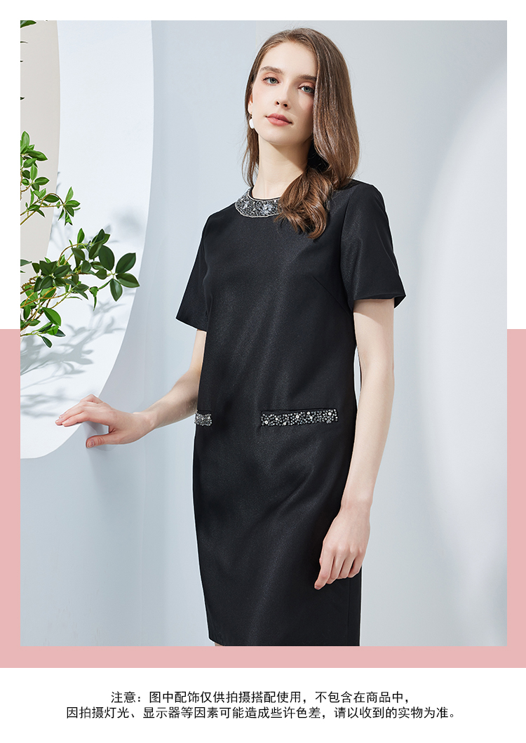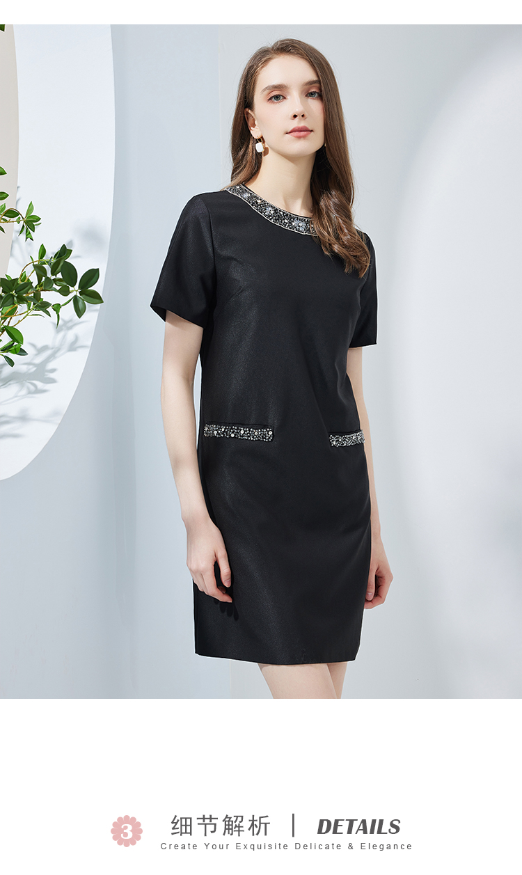 NF8J9斯尔丽瑟俪2023夏季新款直身圆领不挑身型减龄钉珠小礼服连衣裙