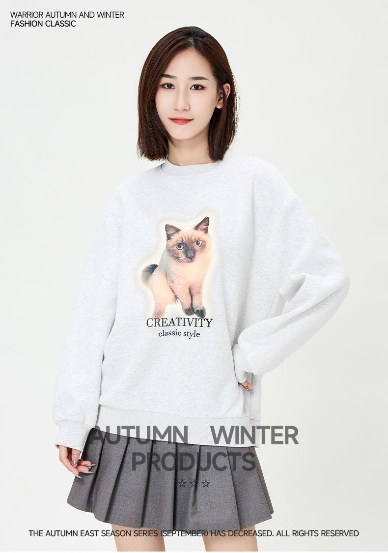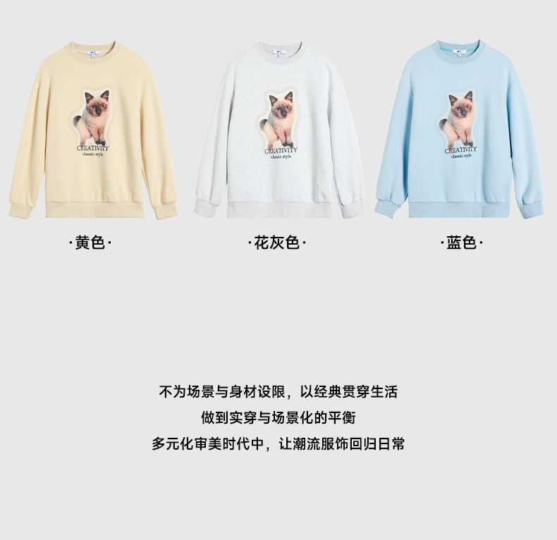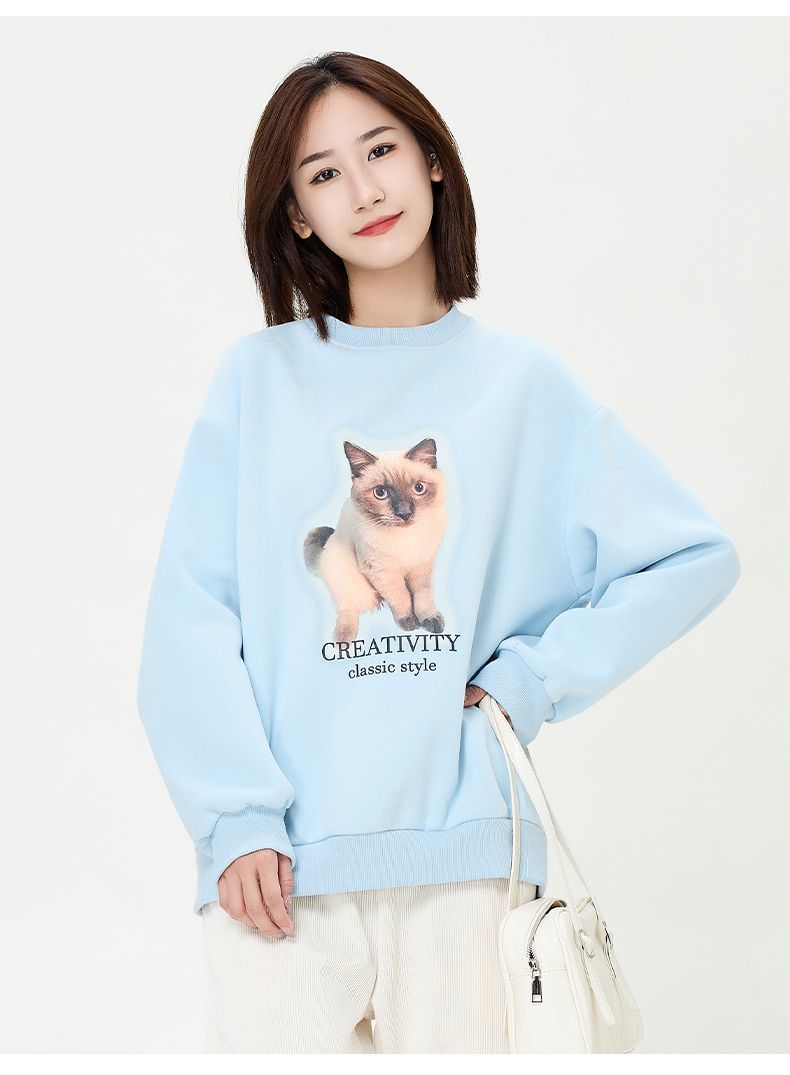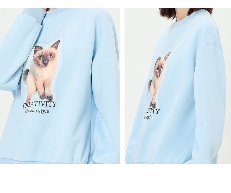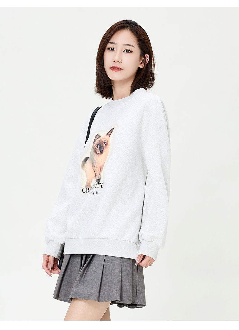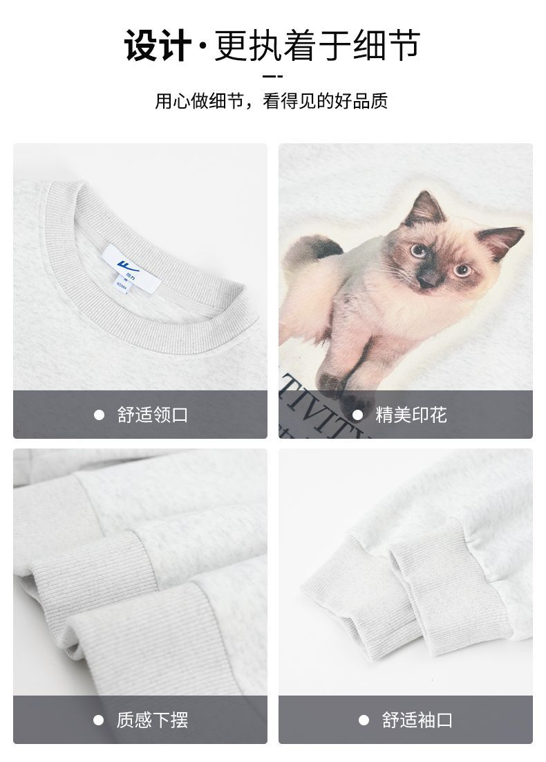 回力圆领卫衣女春秋款潮流新款猫咪印花套头卫衣宽松长袖上衣女生