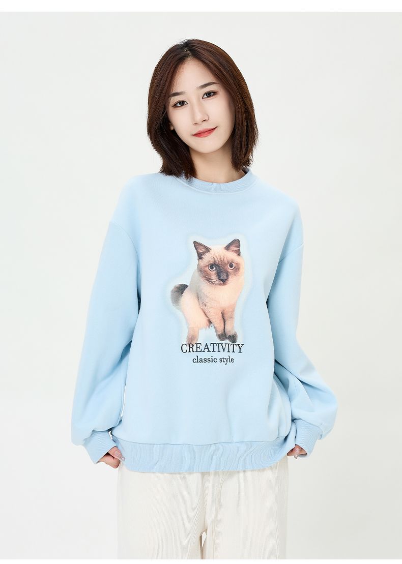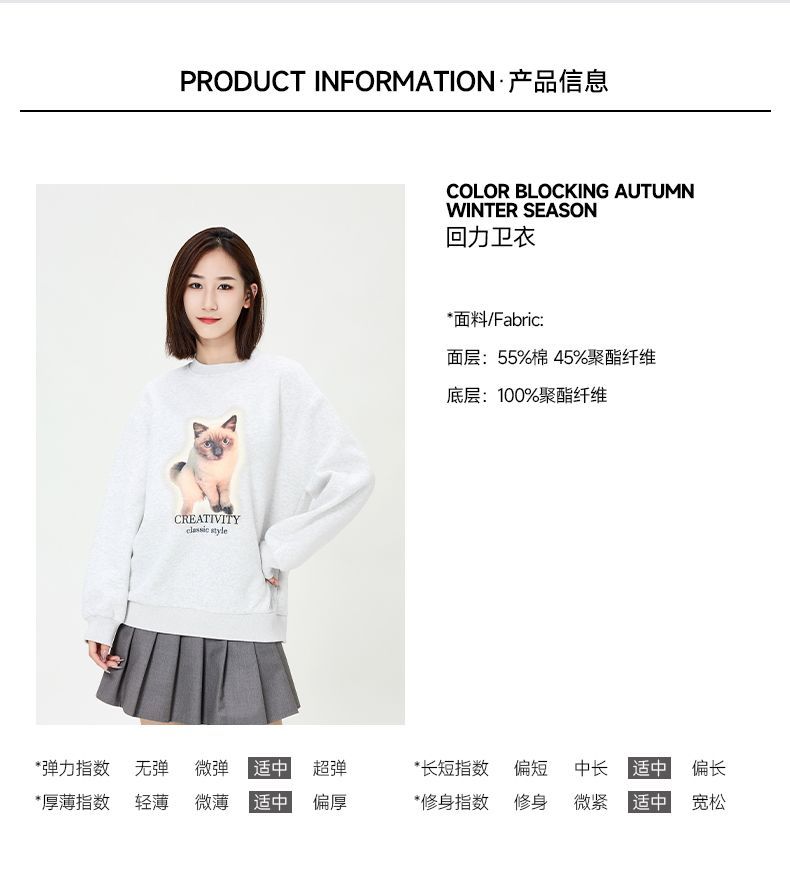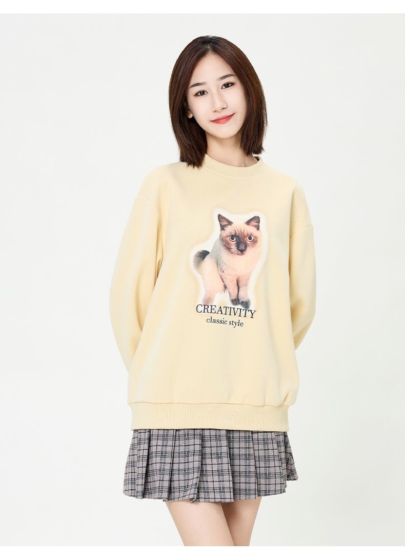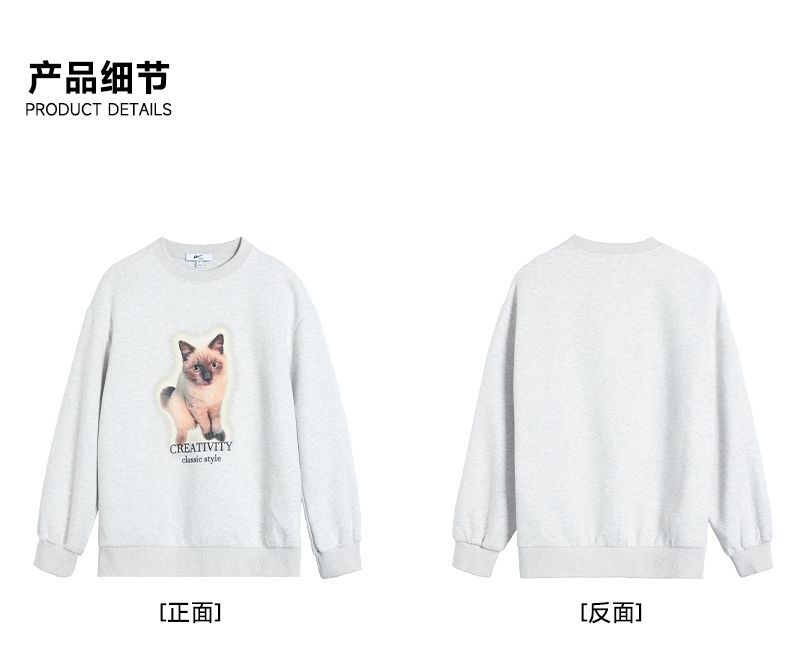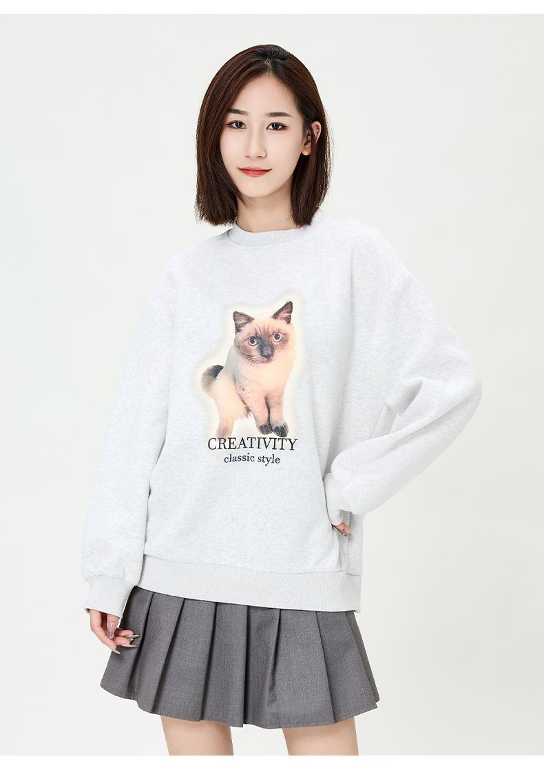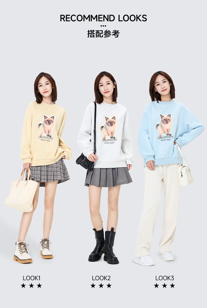 回力圆领卫衣女春秋款潮流新款猫咪印花套头卫衣宽松长袖上衣女生