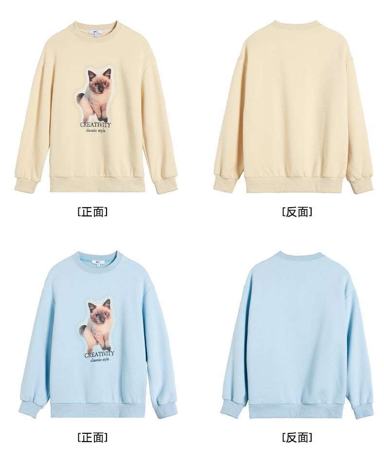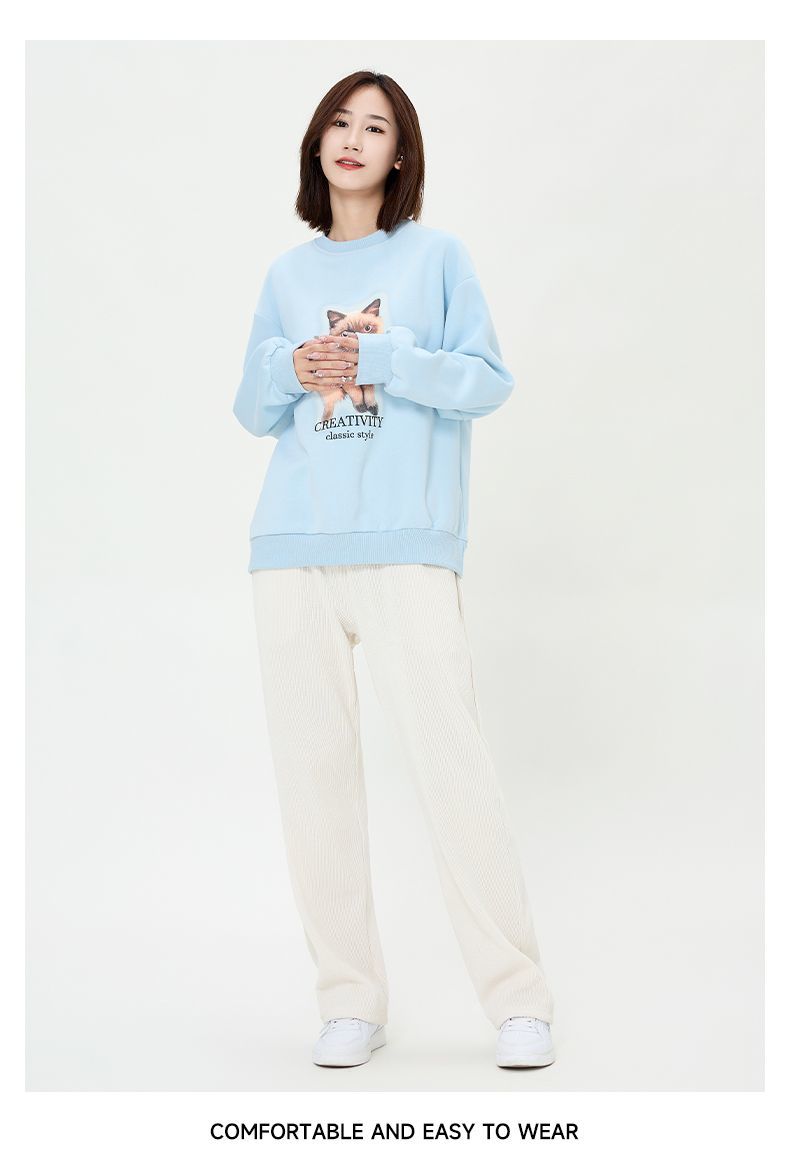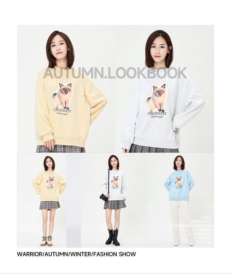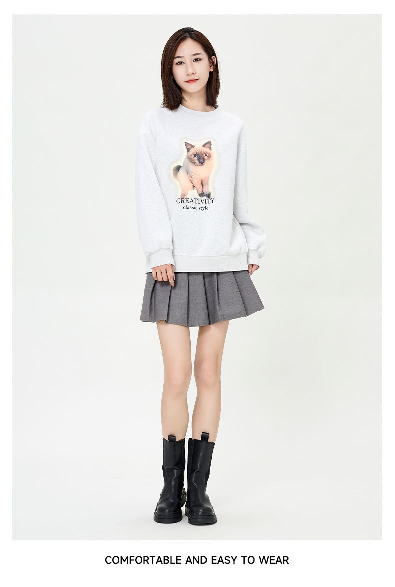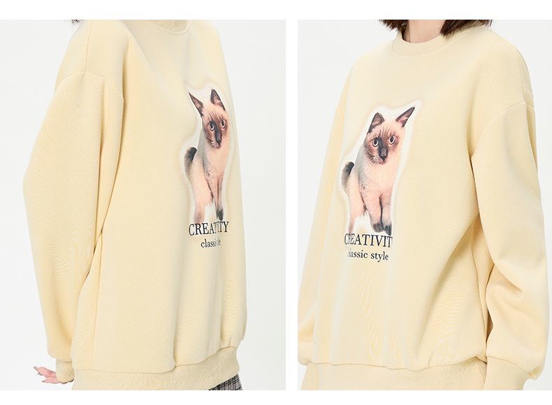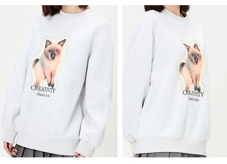 回力圆领卫衣女春秋款潮流新款猫咪印花套头卫衣宽松长袖上衣女生
