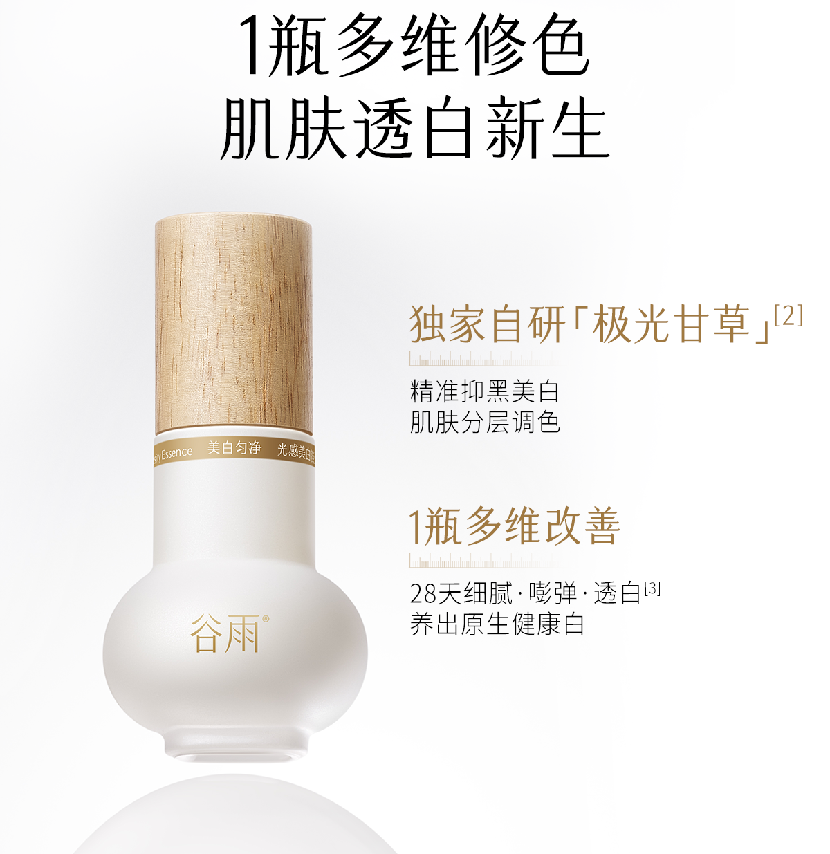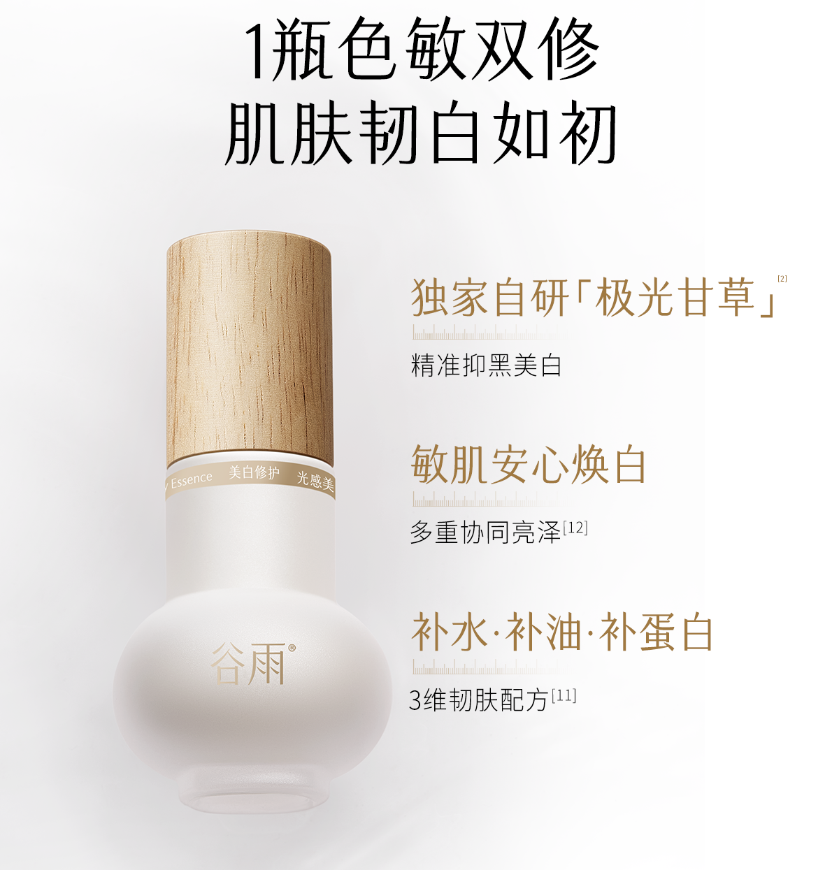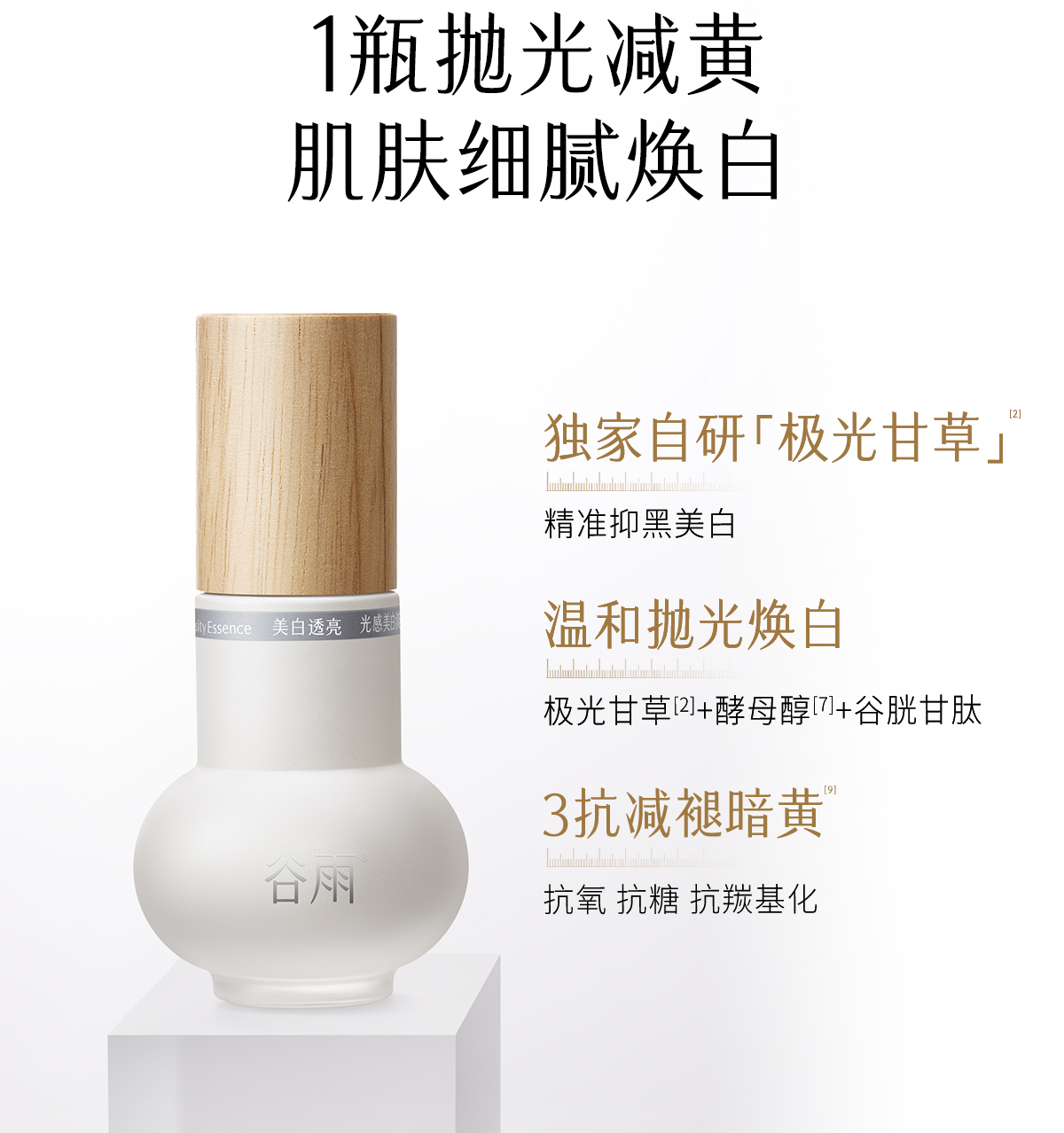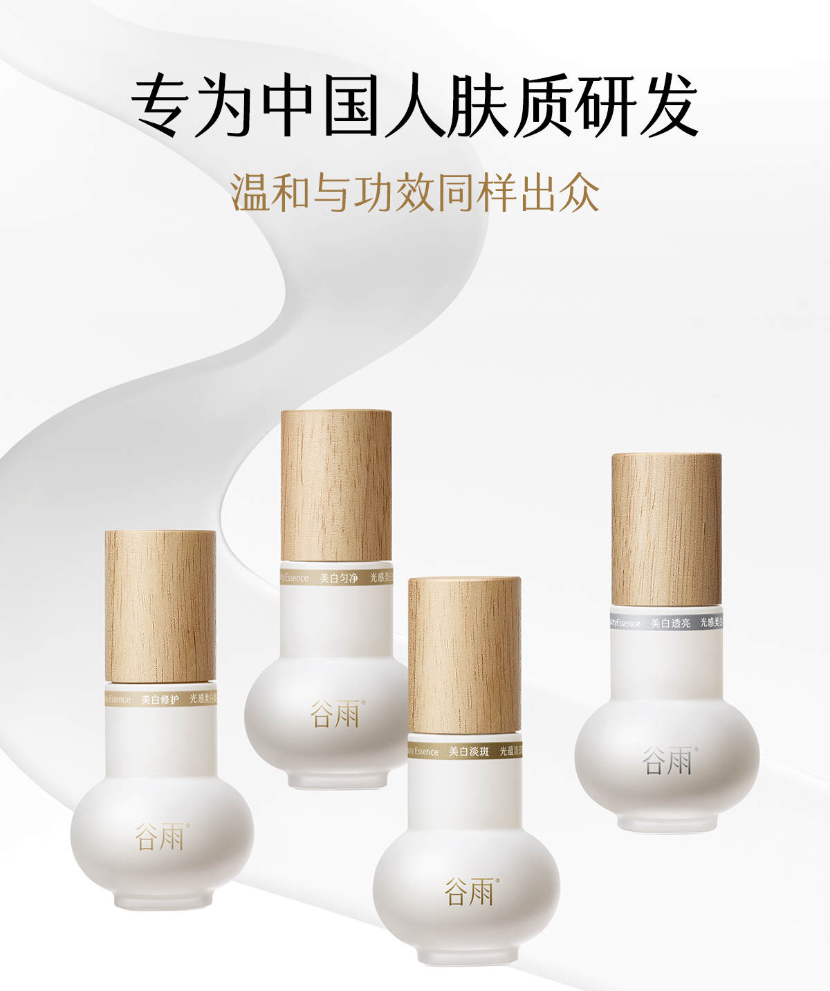 - 谷雨,更适合中国人肤质的植萃美白。专研中华珍稀美白植萃光甘草定,深入研究中国人肤质特点,打造中国女性独有的仙气白。