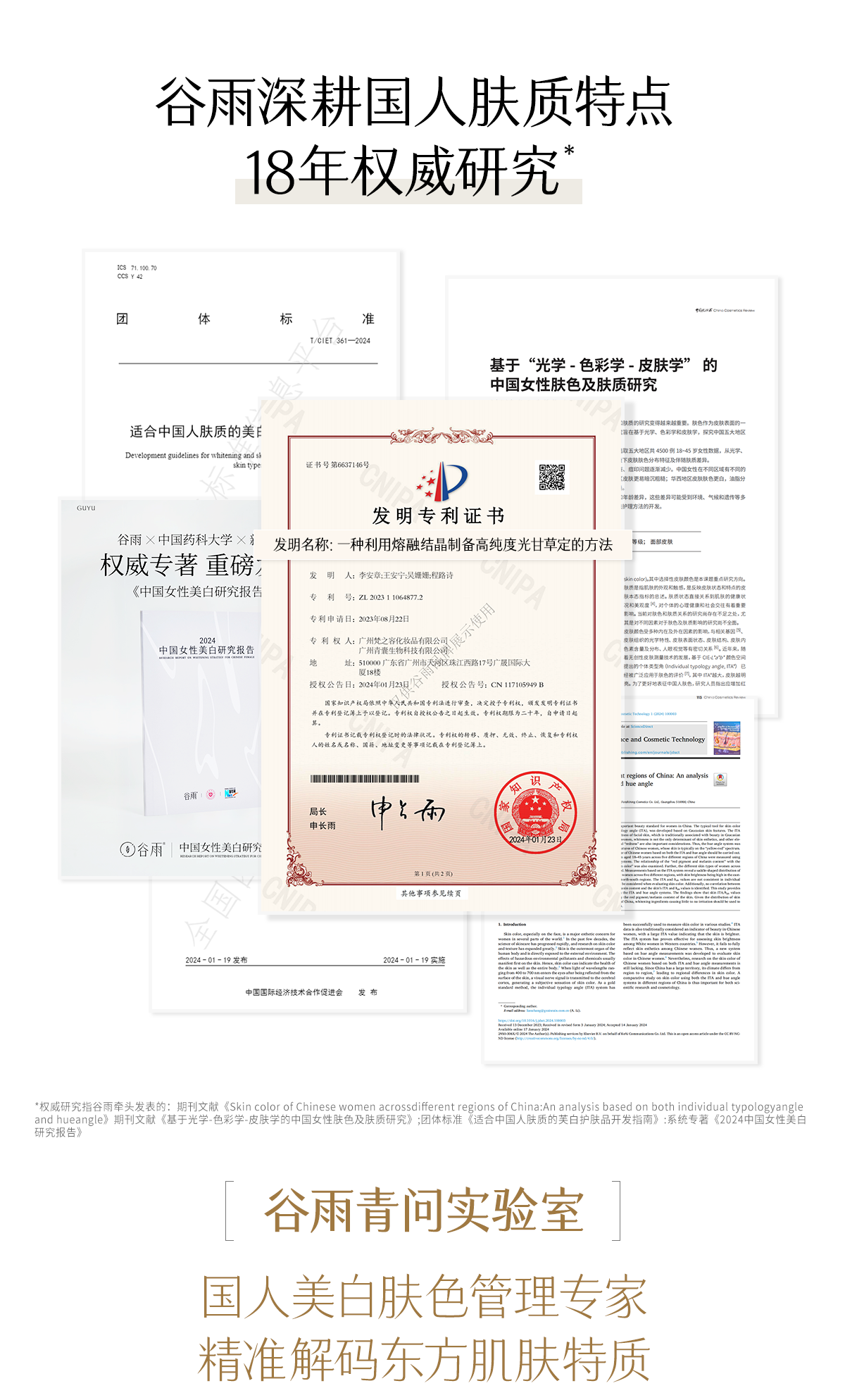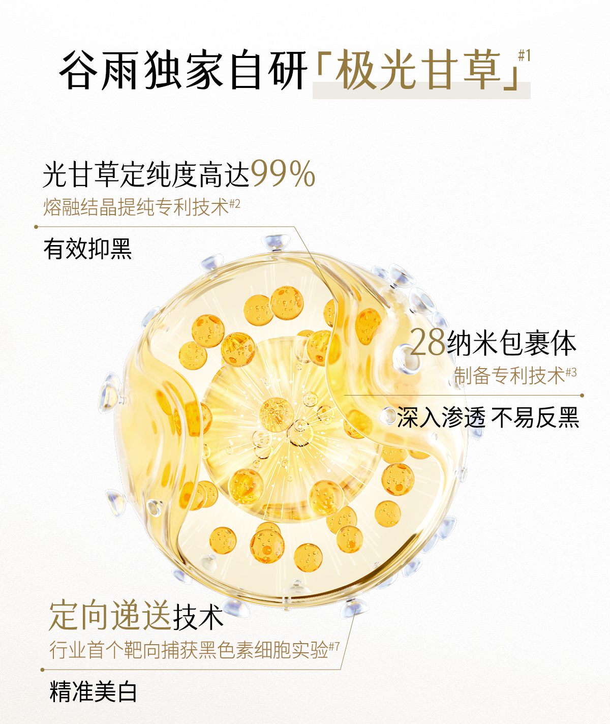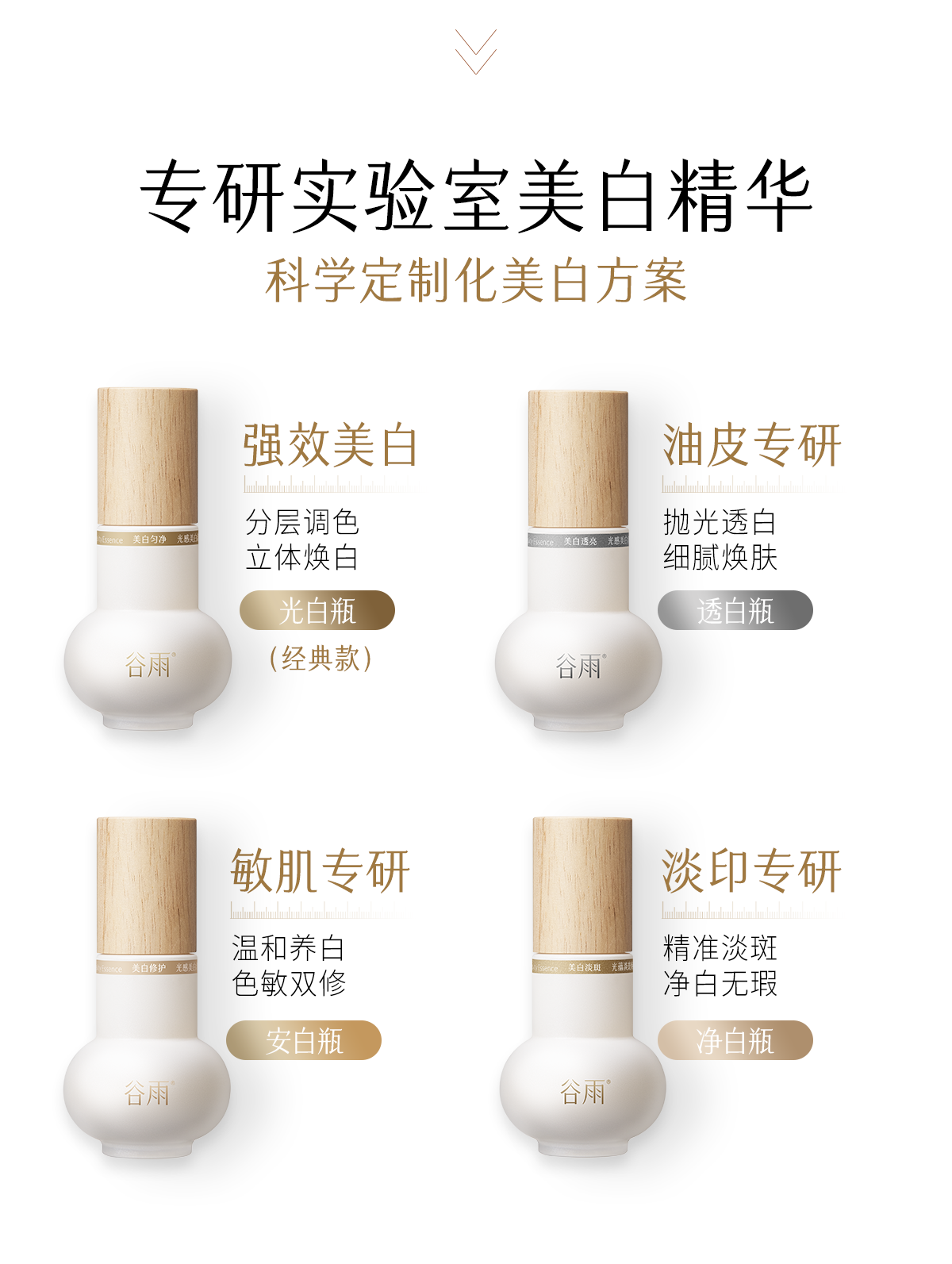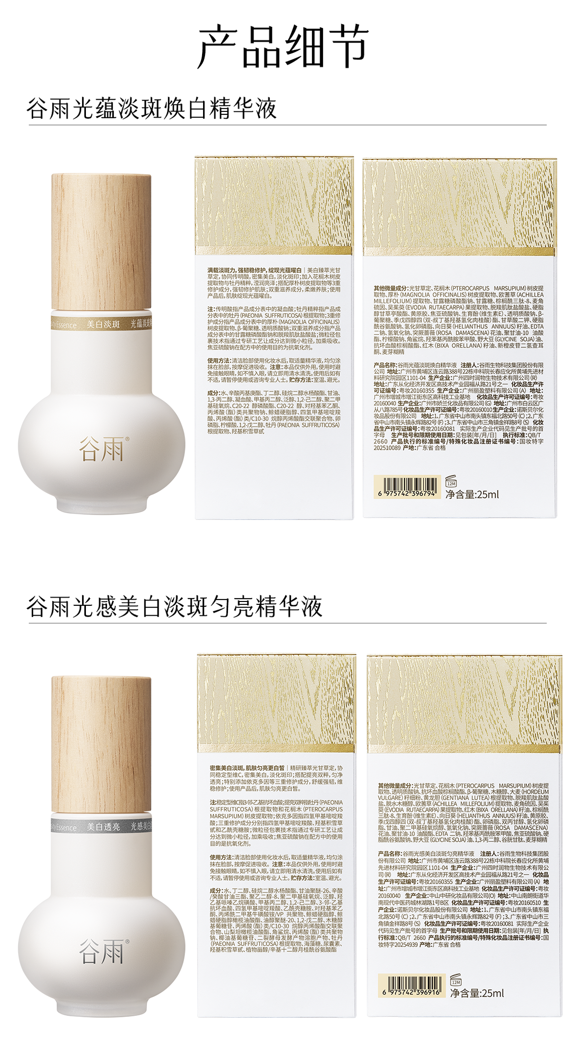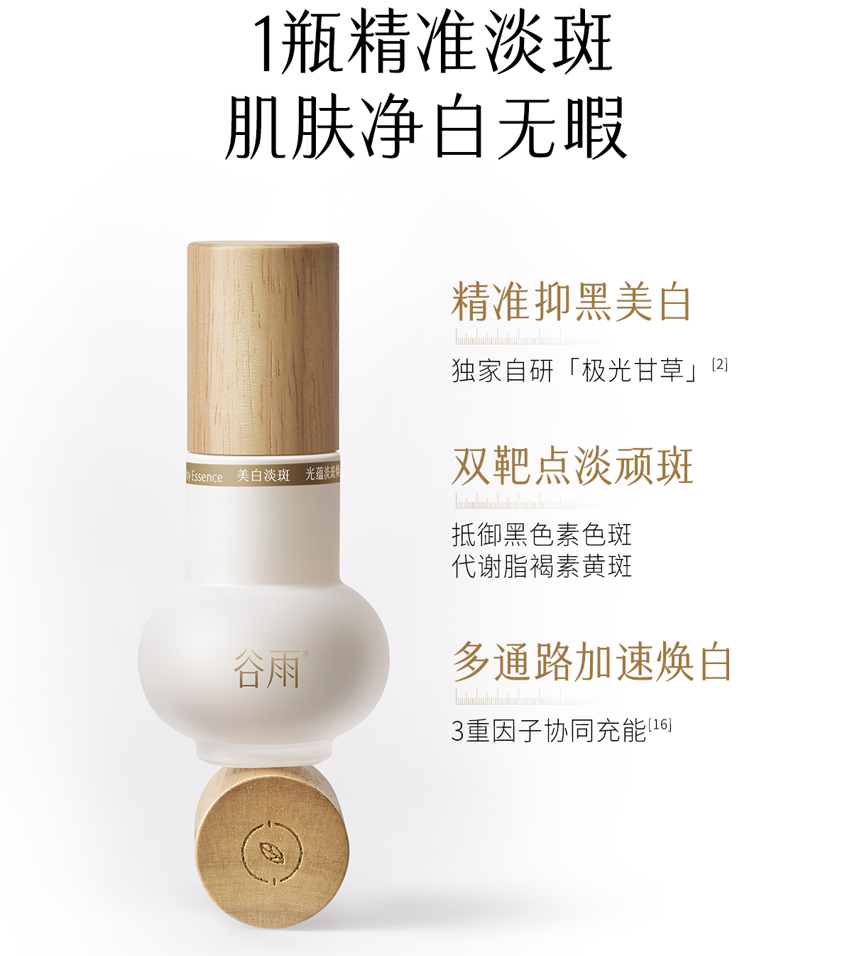 - 谷雨,更适合中国人肤质的植萃美白。专研中华珍稀美白植萃光甘草定,深入研究中国人肤质特点,打造中国女性独有的仙气白。
