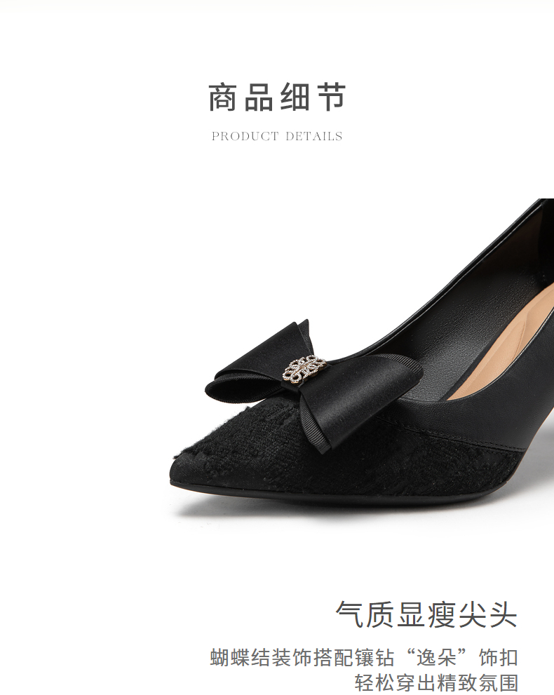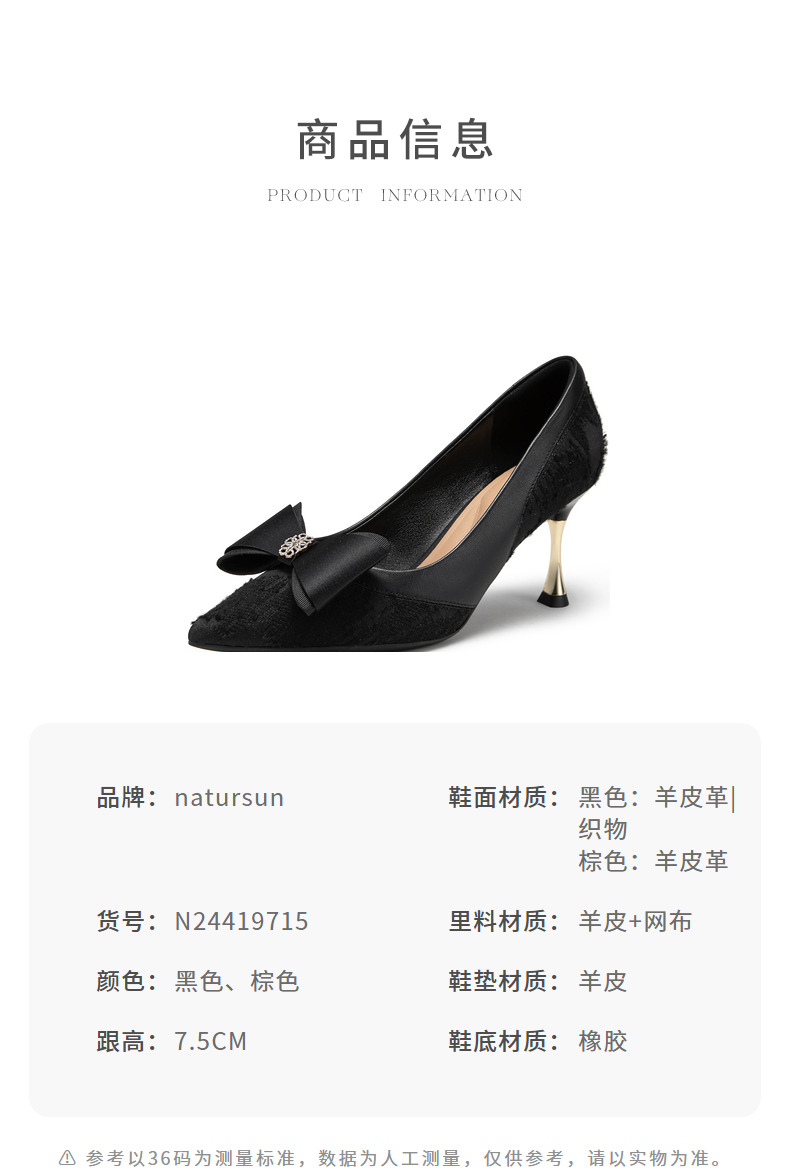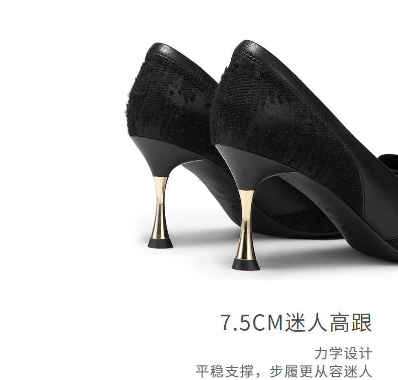 natursun法式单鞋浅口尖头气质绝美高跟鞋女细跟时装单鞋N24419715