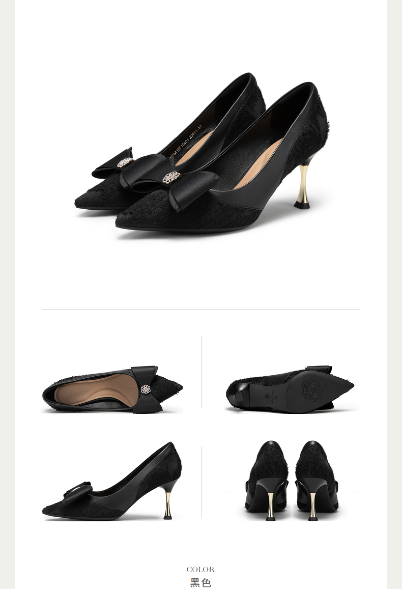 【静音系列】千百度羊皮细高跟鞋春季尖头浅口单鞋女鞋A24157703