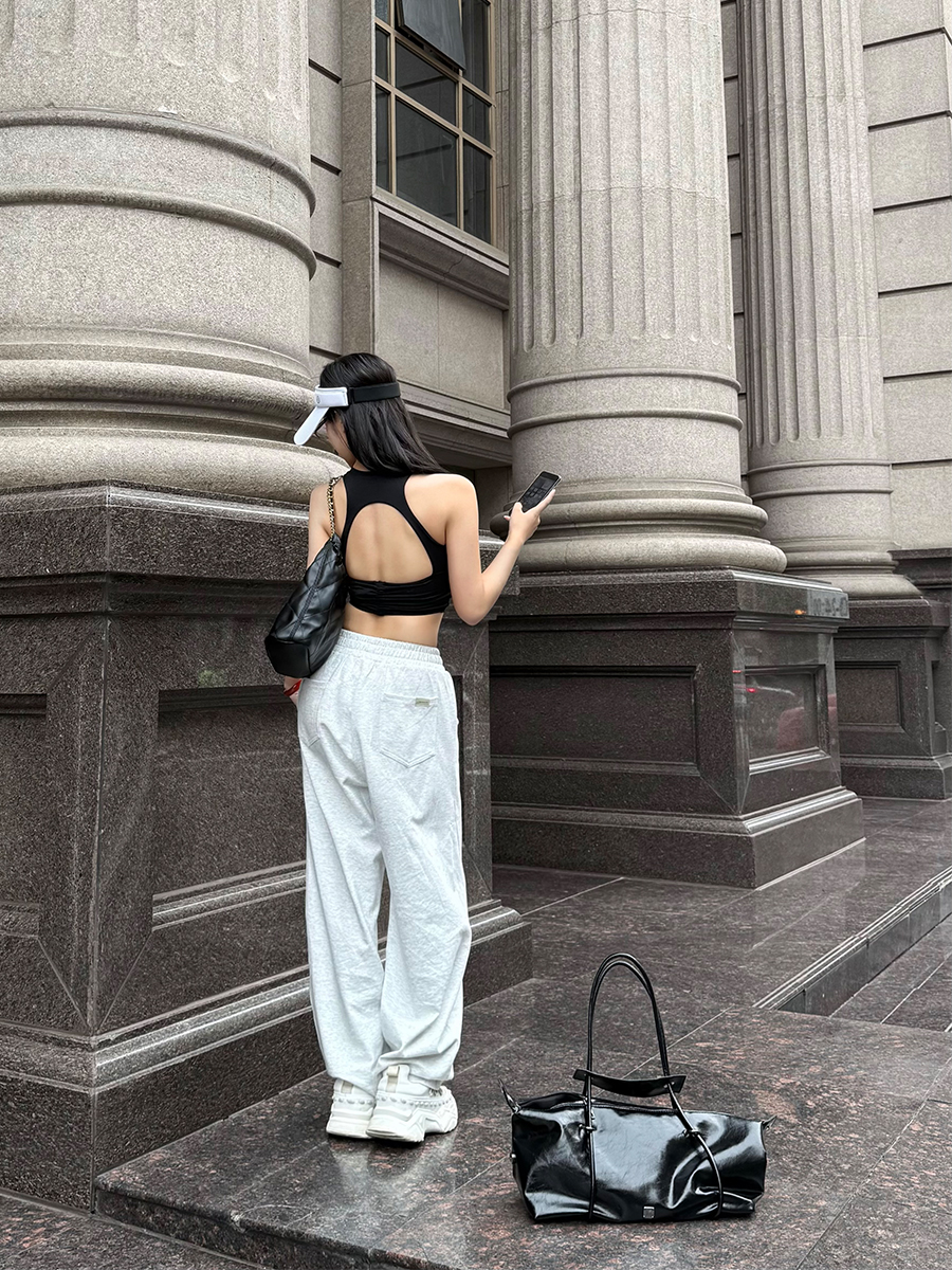 【双磨肌理】方领肩袢装饰带胸垫运动背心