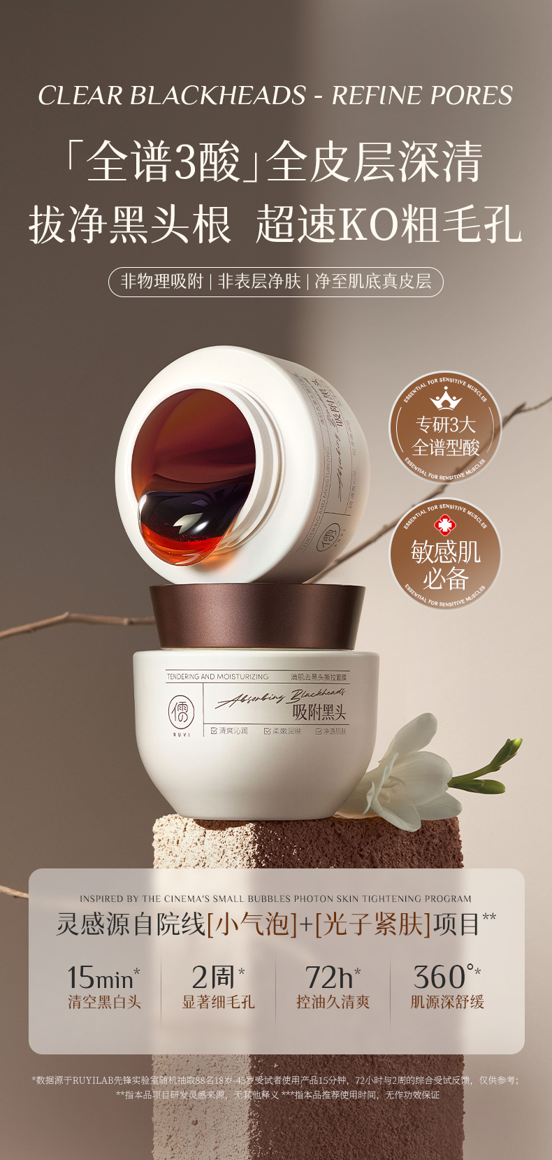 儒意清肌去黑头撕拉面膜150g 去黑头粉刺收缩毛孔深层清洁闭口草莓鼻控油|儒意官方商城
