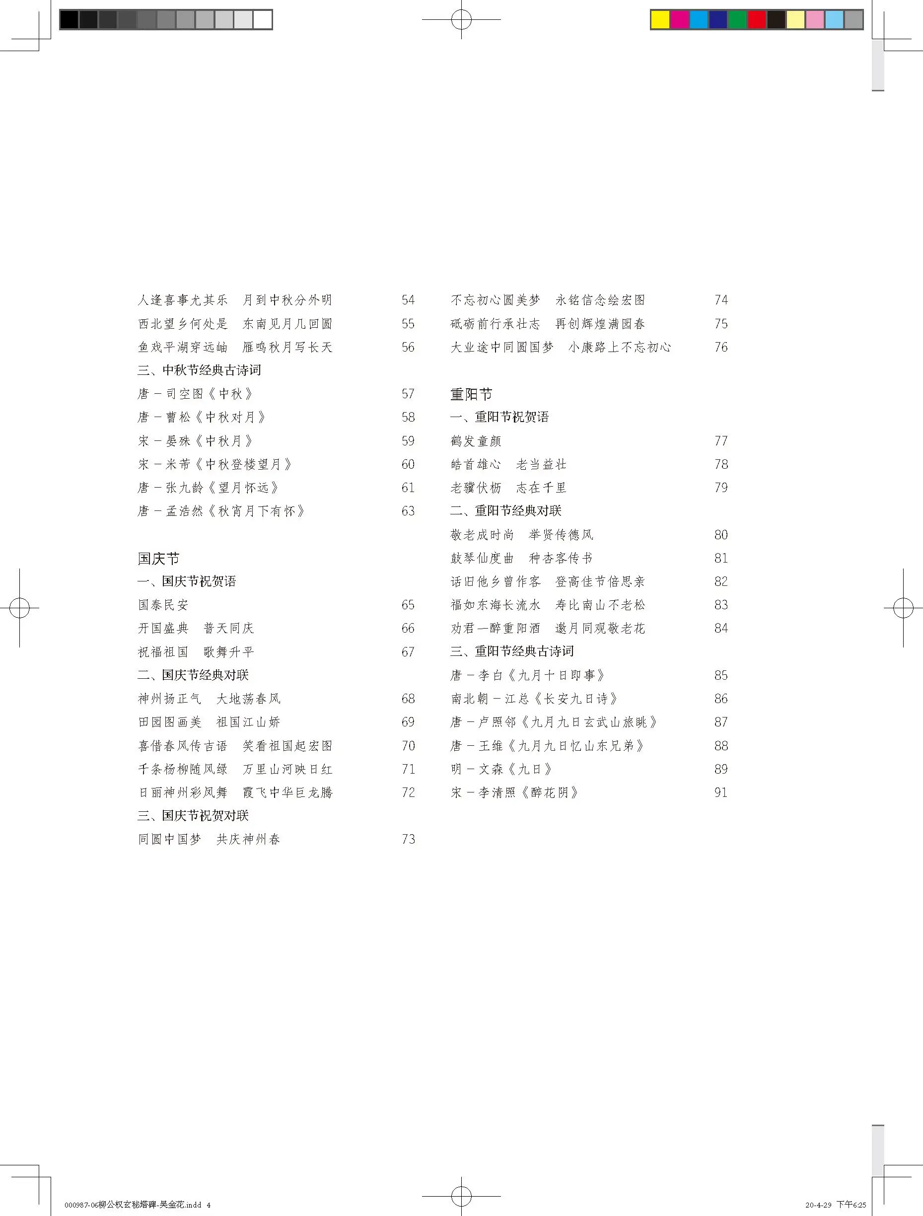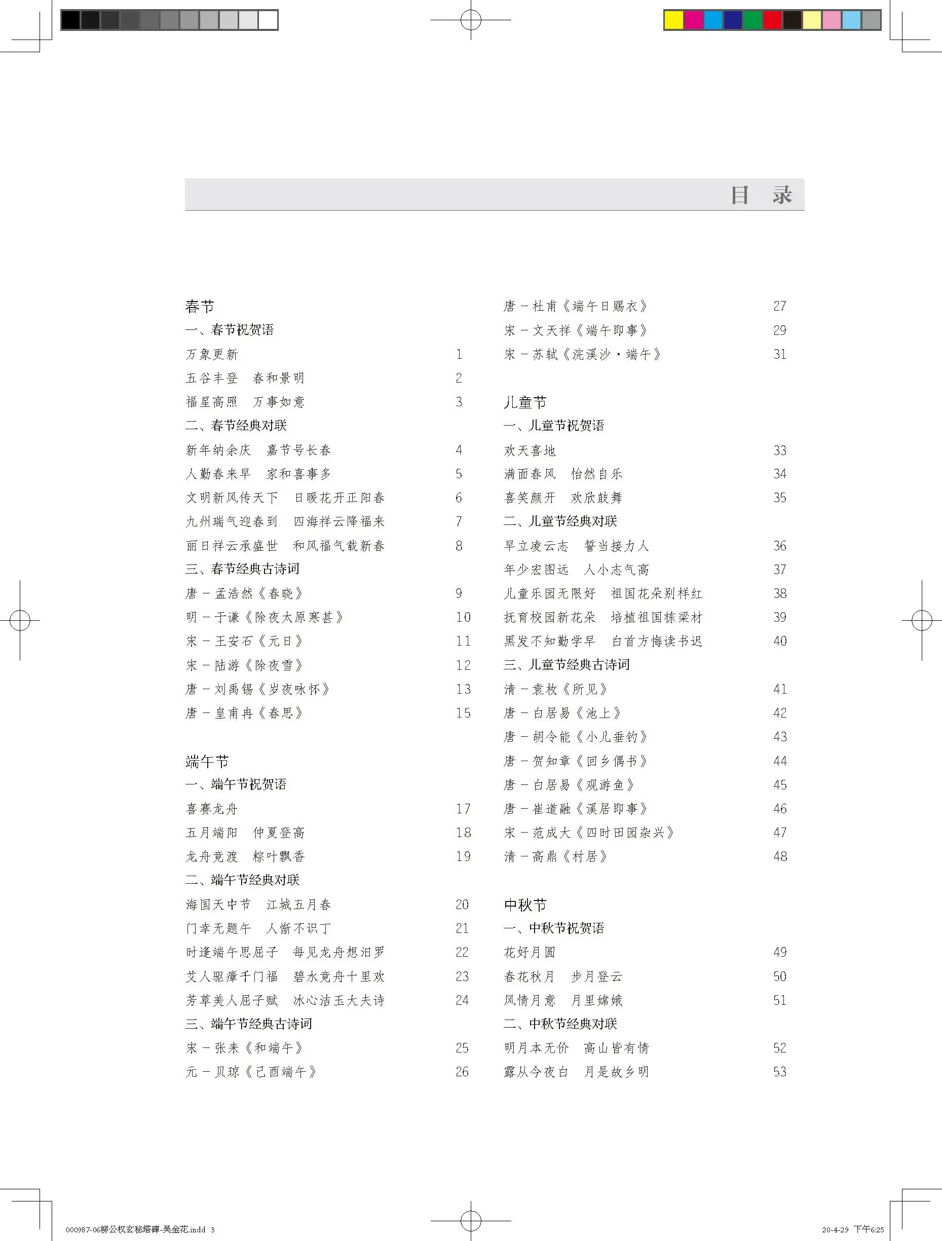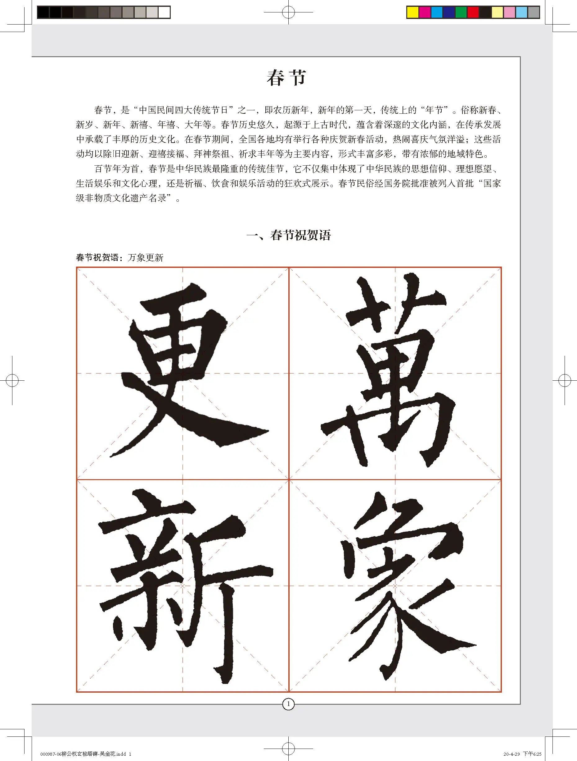 出版时间:2020-5内容简介:“节庆挥毫宝典”系列以春节、端午节、儿童节、重阳节、国庆节、中秋节为主题,集名家名帖之字,一家一帖集成一书,幅式参考涵盖了团扇、对联、斗方、中堂、条幅等,其内容又以类相从编排,不仅从形式到内容上有力地保证了全书的一致性与连贯性,更便于读者有针对性地、分门别类地欣赏、临摹、创作之用。《柳公权玄秘塔碑集字吉语诗词》是此系列中的一本。