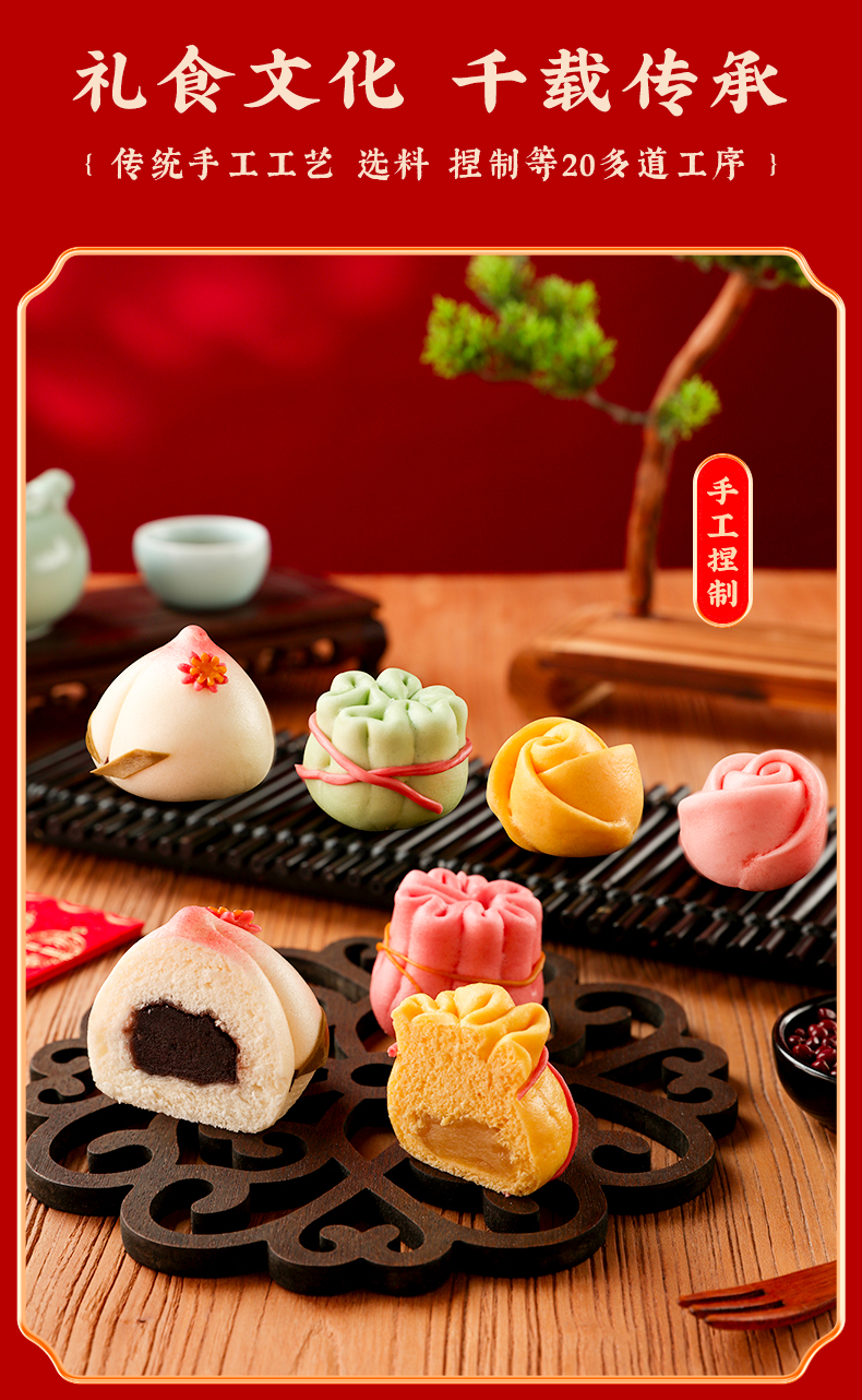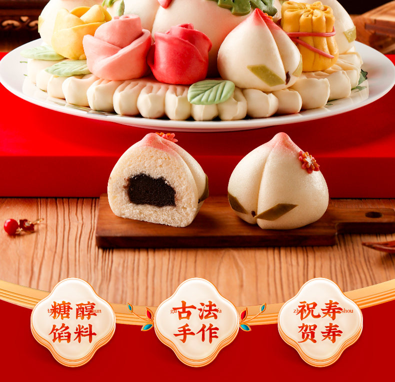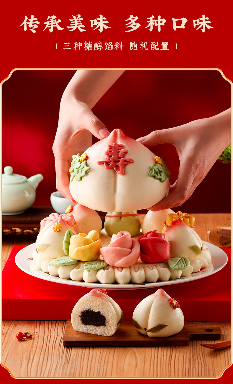 御茶膳房花饽饽福寿绵绵寿桃馒头礼盒装老人生日祝寿贺寿蛋糕特产送礼长辈