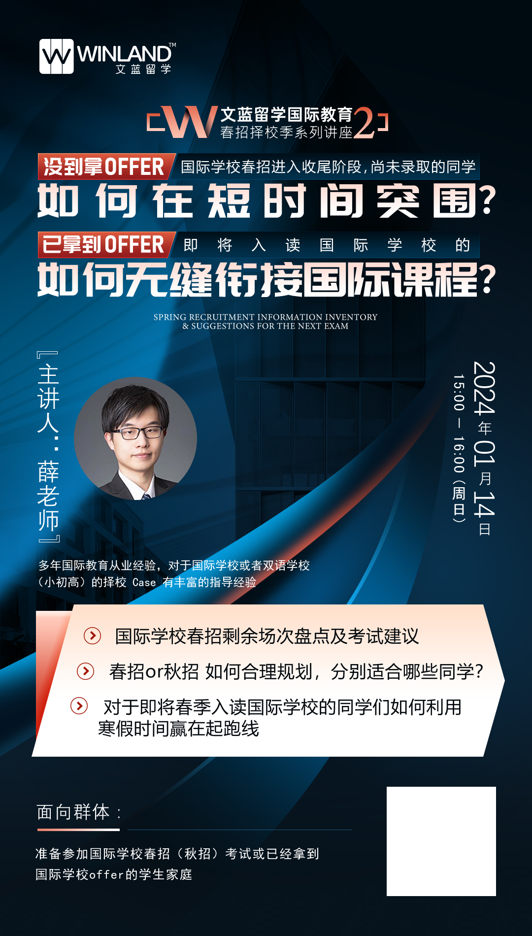 【1月14号】 国际学校春招进入收尾阶段 ,尚未录取的同学如何在短时间突围?已拿到offer的同学如何无缝衔接国际课程?