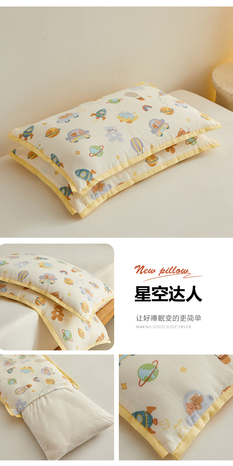 【品牌直发】小象咘叮 A类母婴双层纱儿童棉花枕30x50cm yb1112001