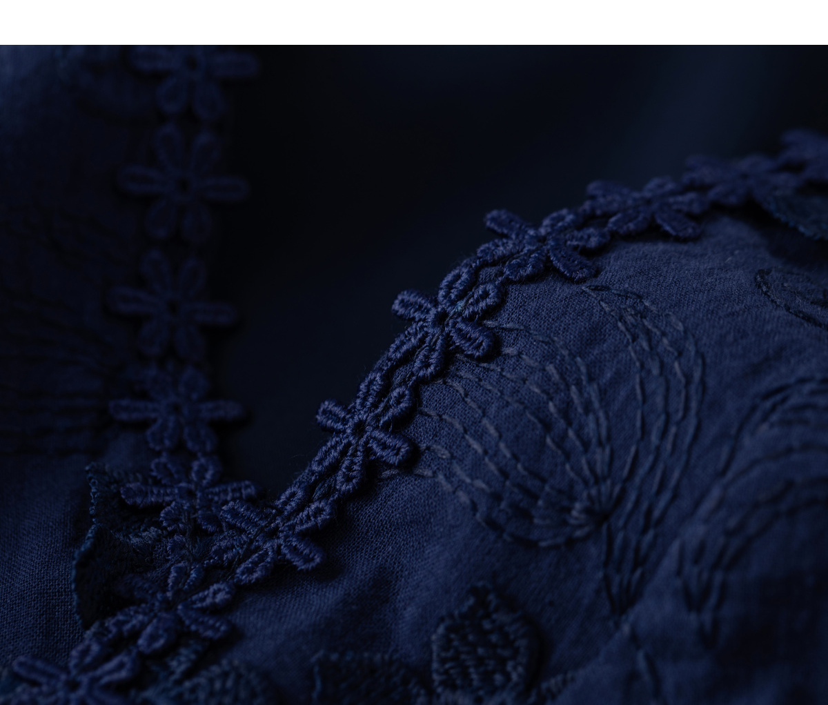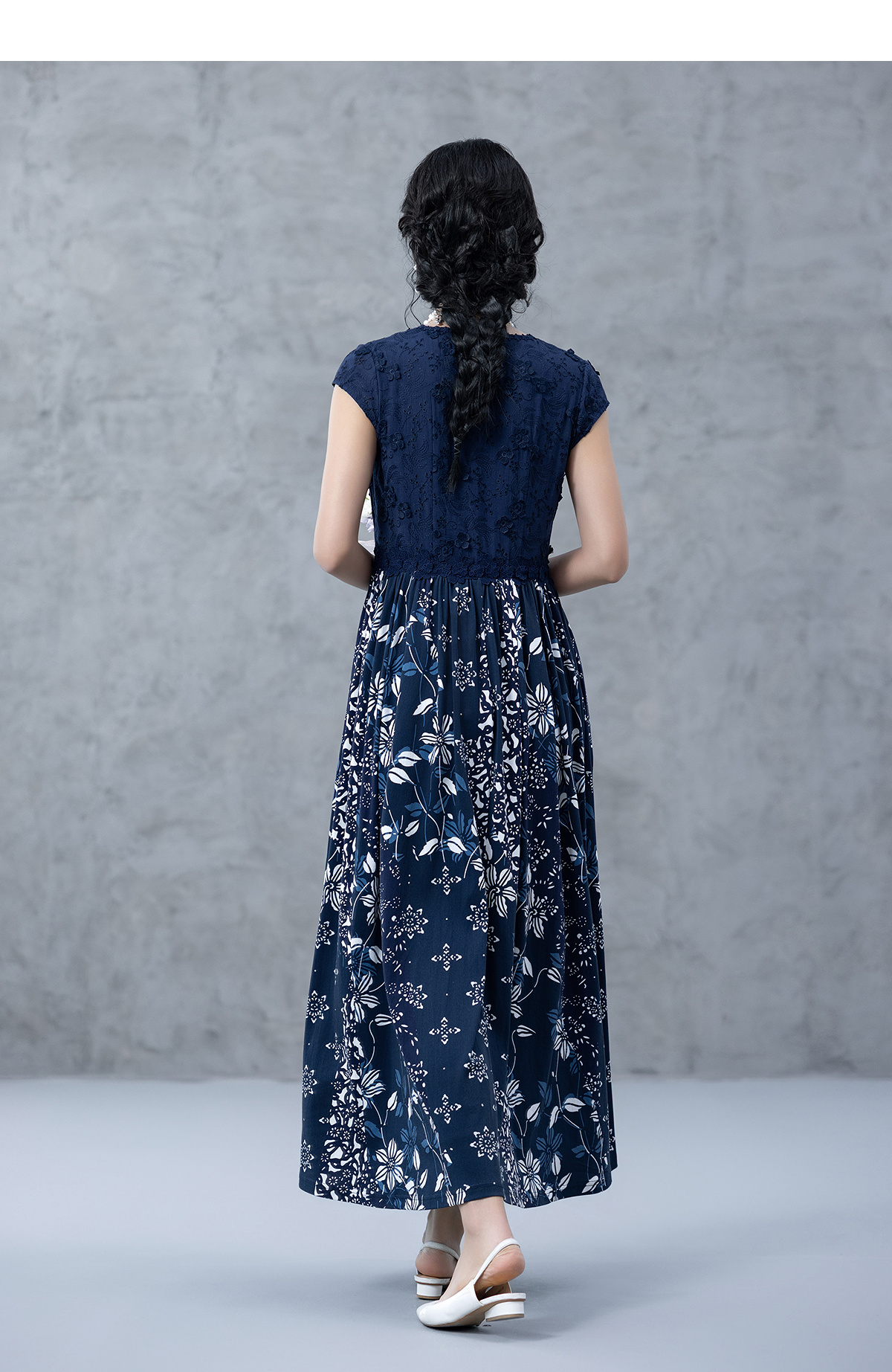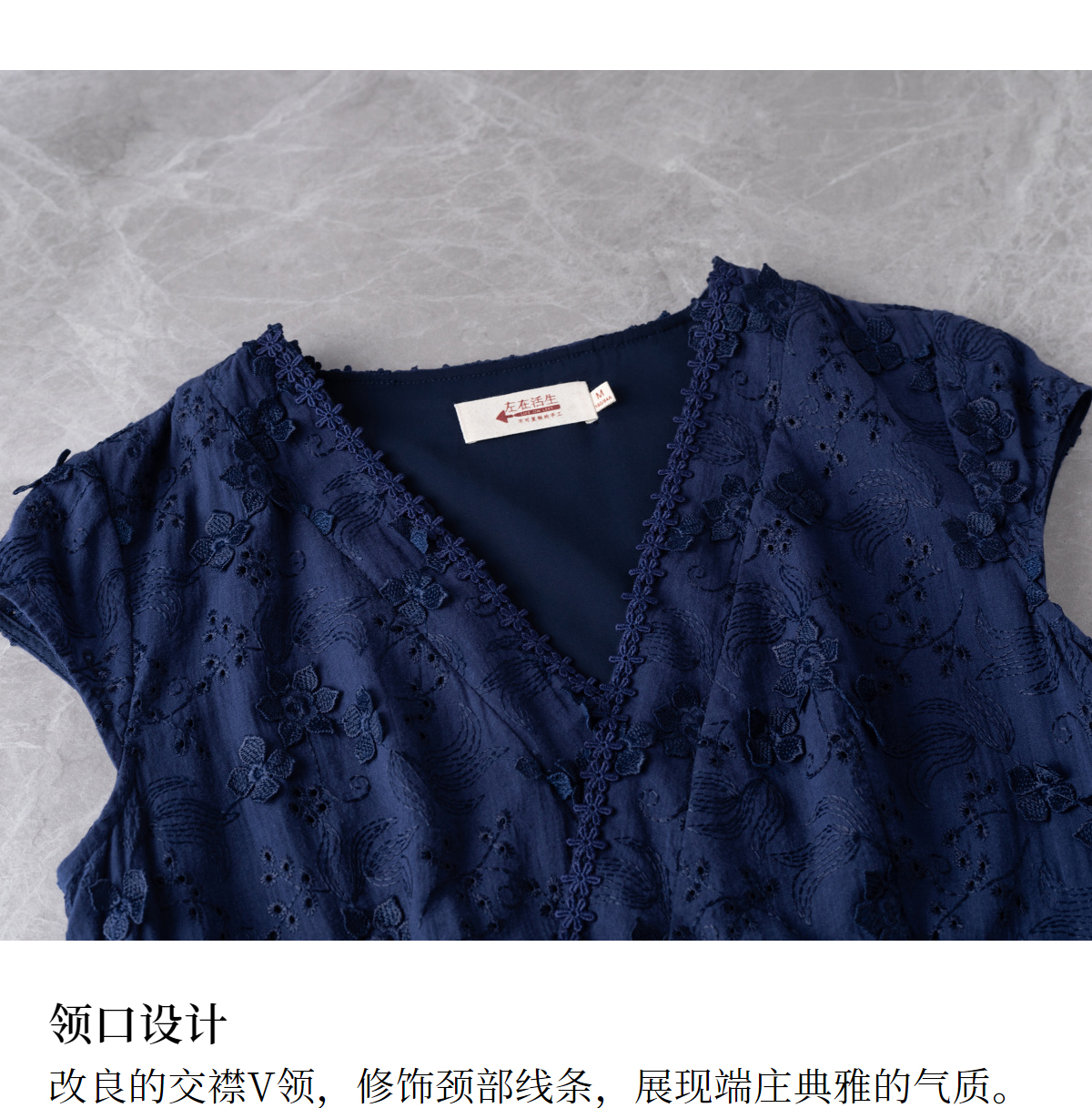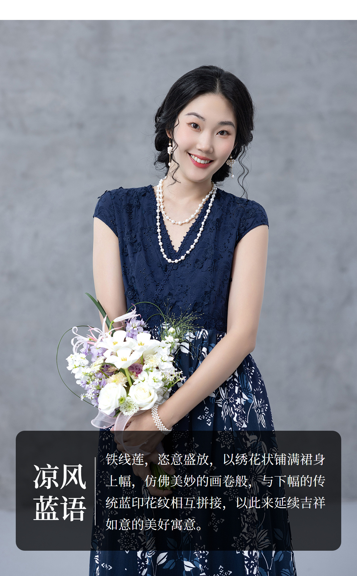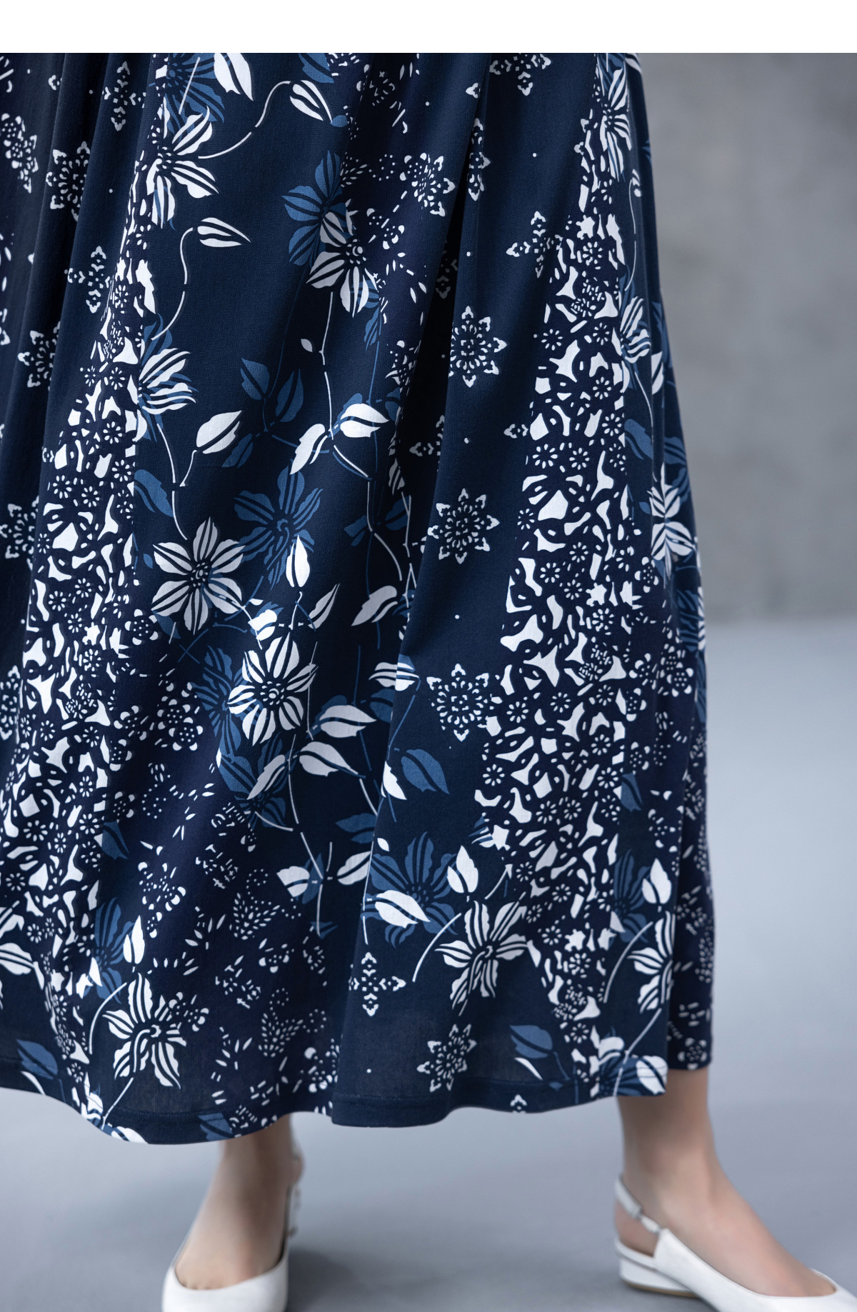 【林栖设计小店】(现货)纯棉水田连衣裙复古蓝印花铁线莲花纹优雅绣花2025春夏新品长裙女1952053