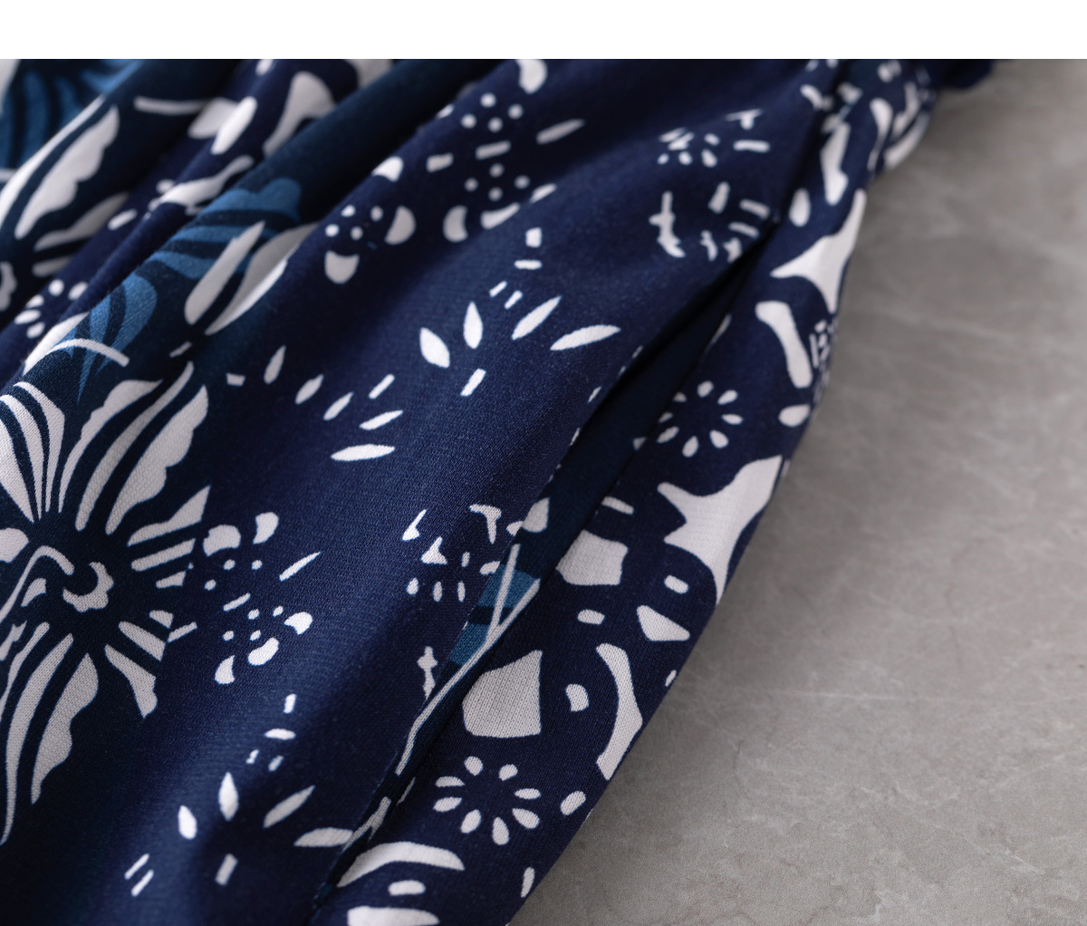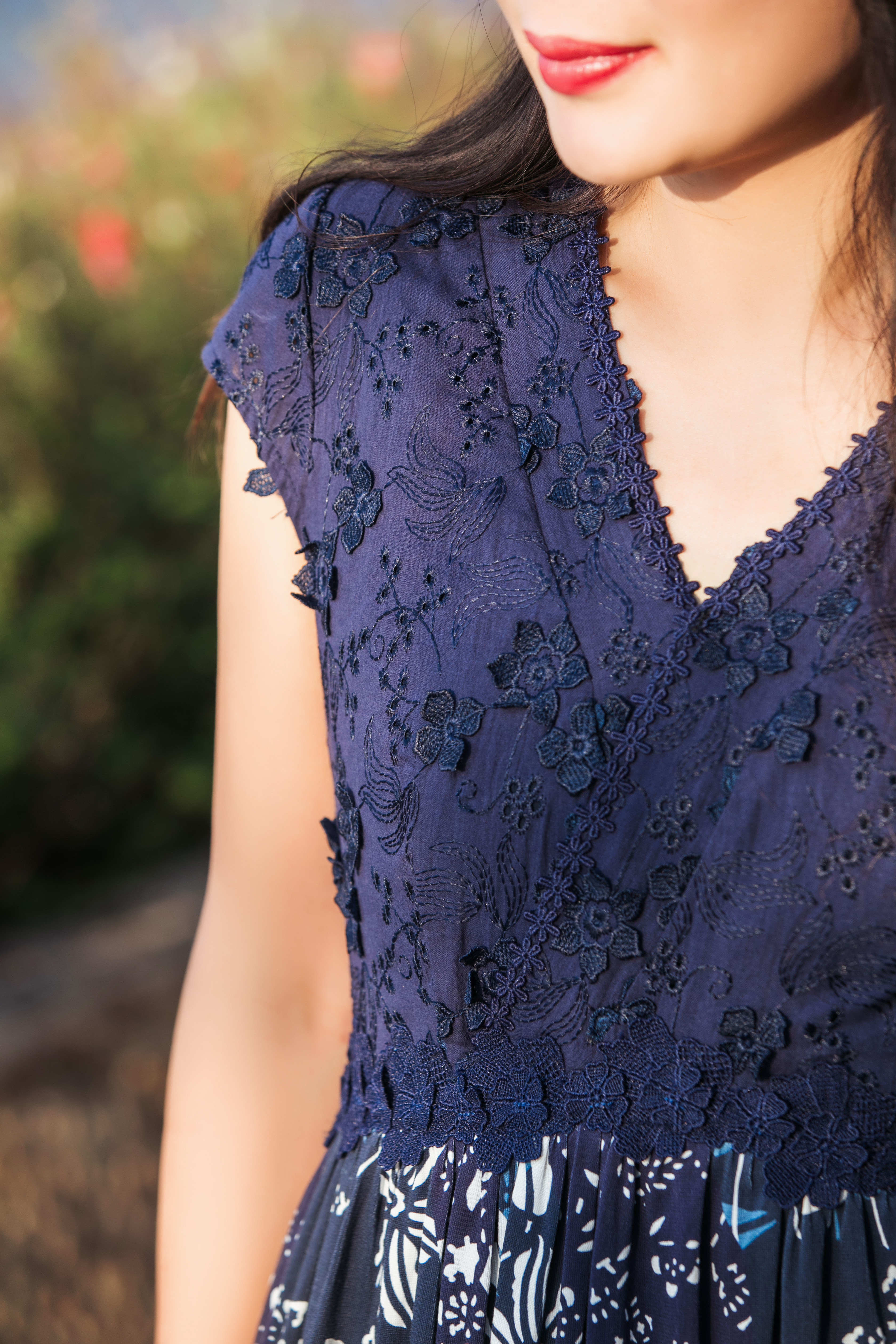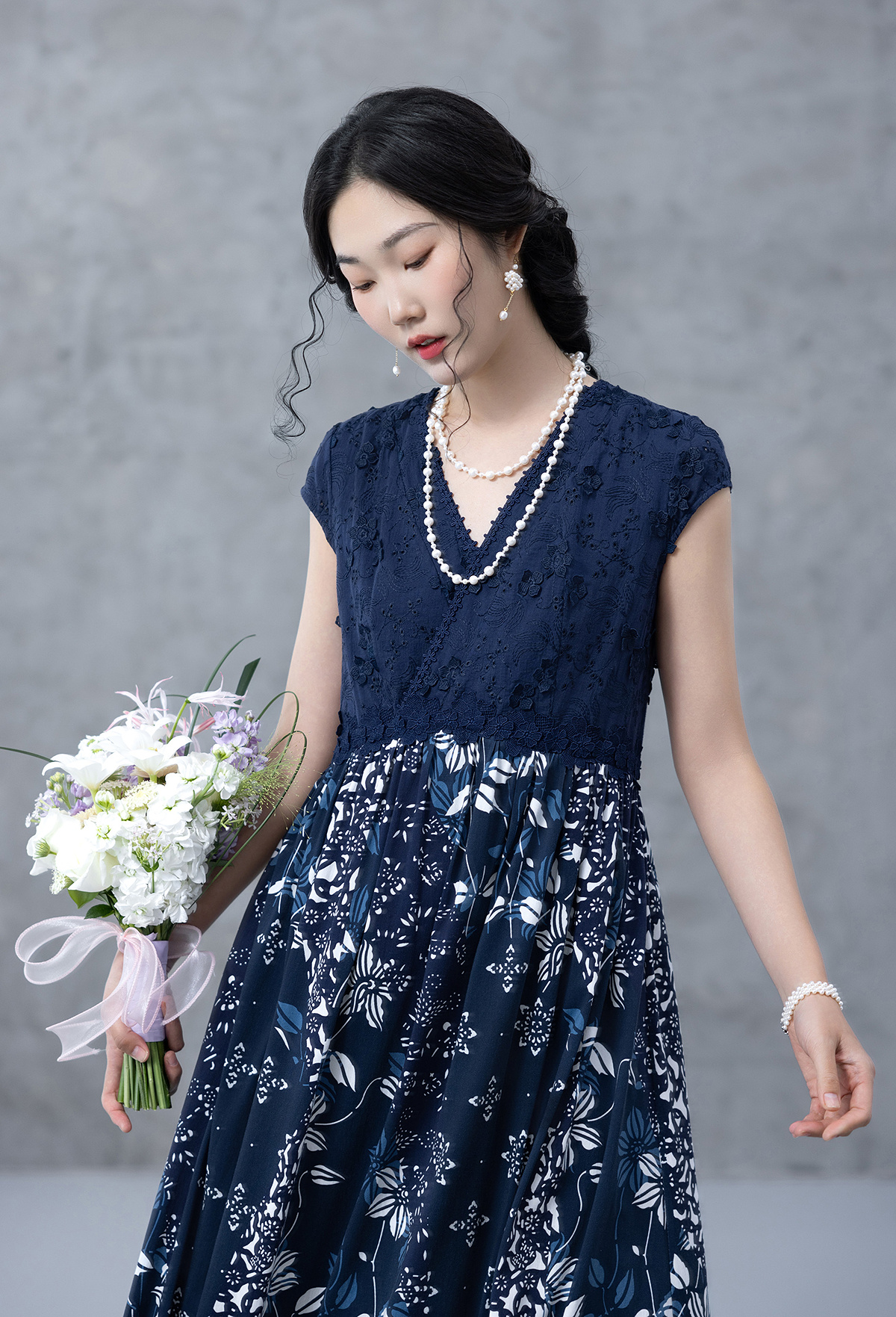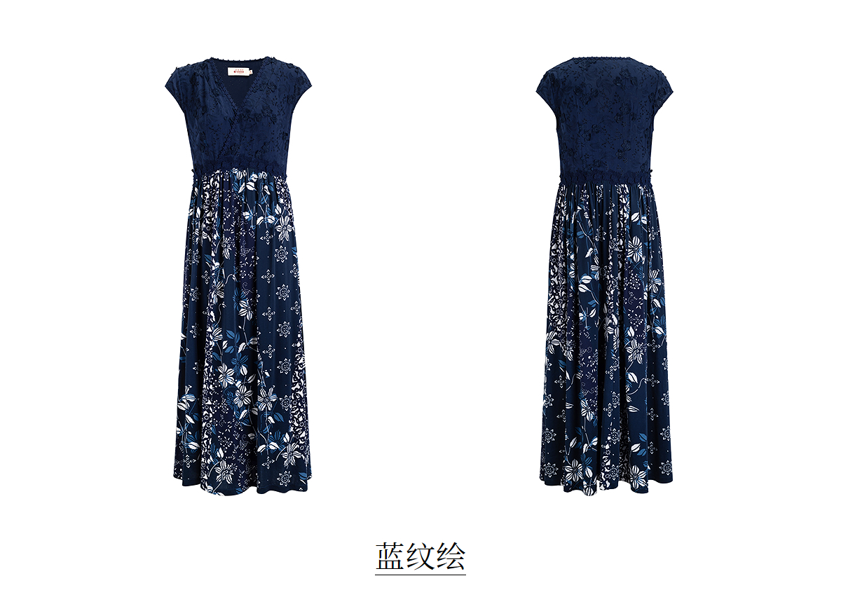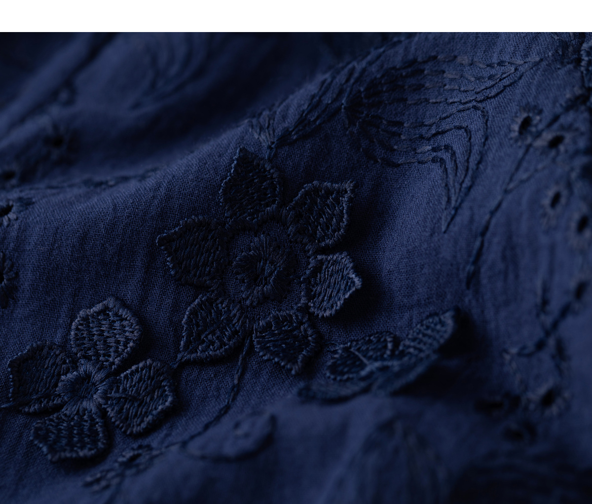 【林栖设计小店】(现货)纯棉水田连衣裙复古蓝印花铁线莲花纹优雅绣花2025春夏新品长裙女1952053