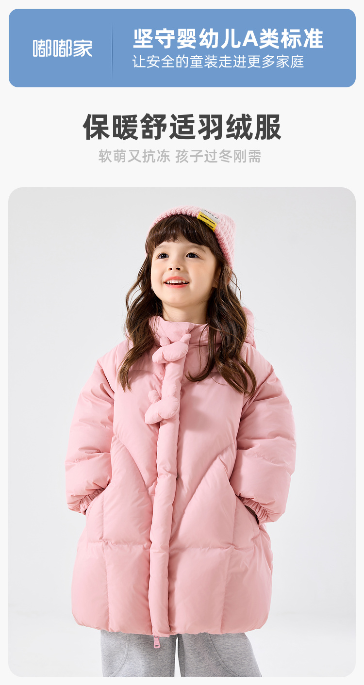 【厚吐司羽绒】嘟嘟家女童长款羽绒服冬季杜邦三防女宝防寒外套潮C5DYR042