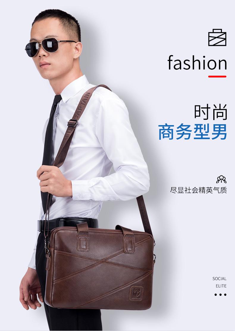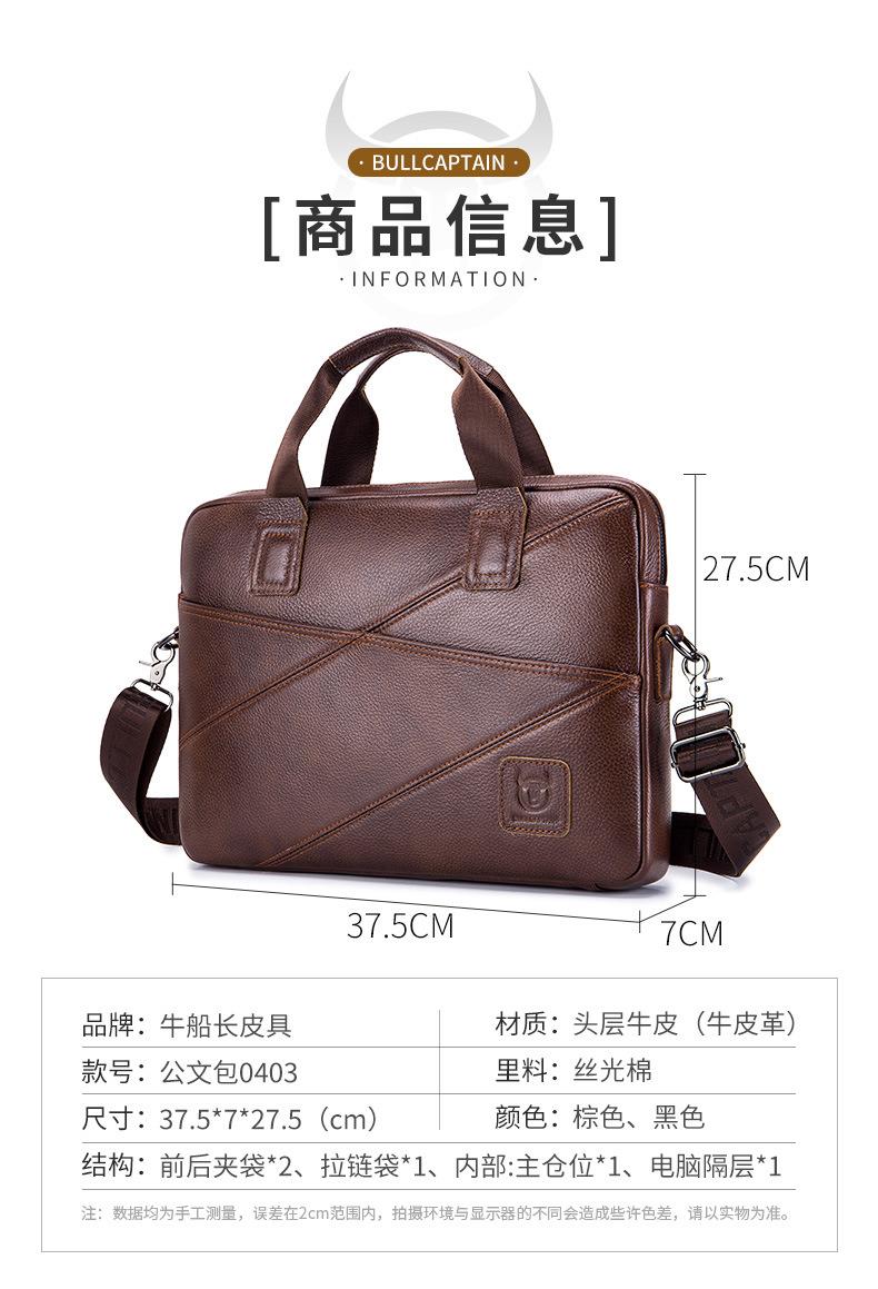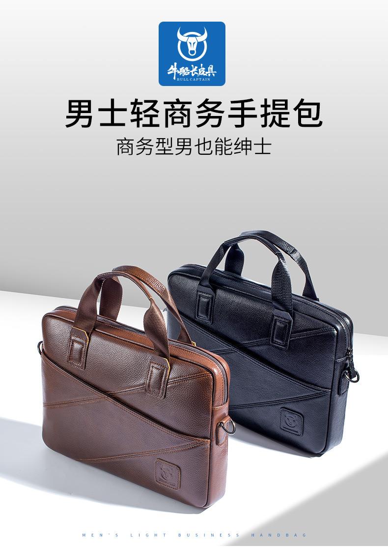 牛船长公文包男士真皮商务手提包单肩斜挎包休闲电脑包
