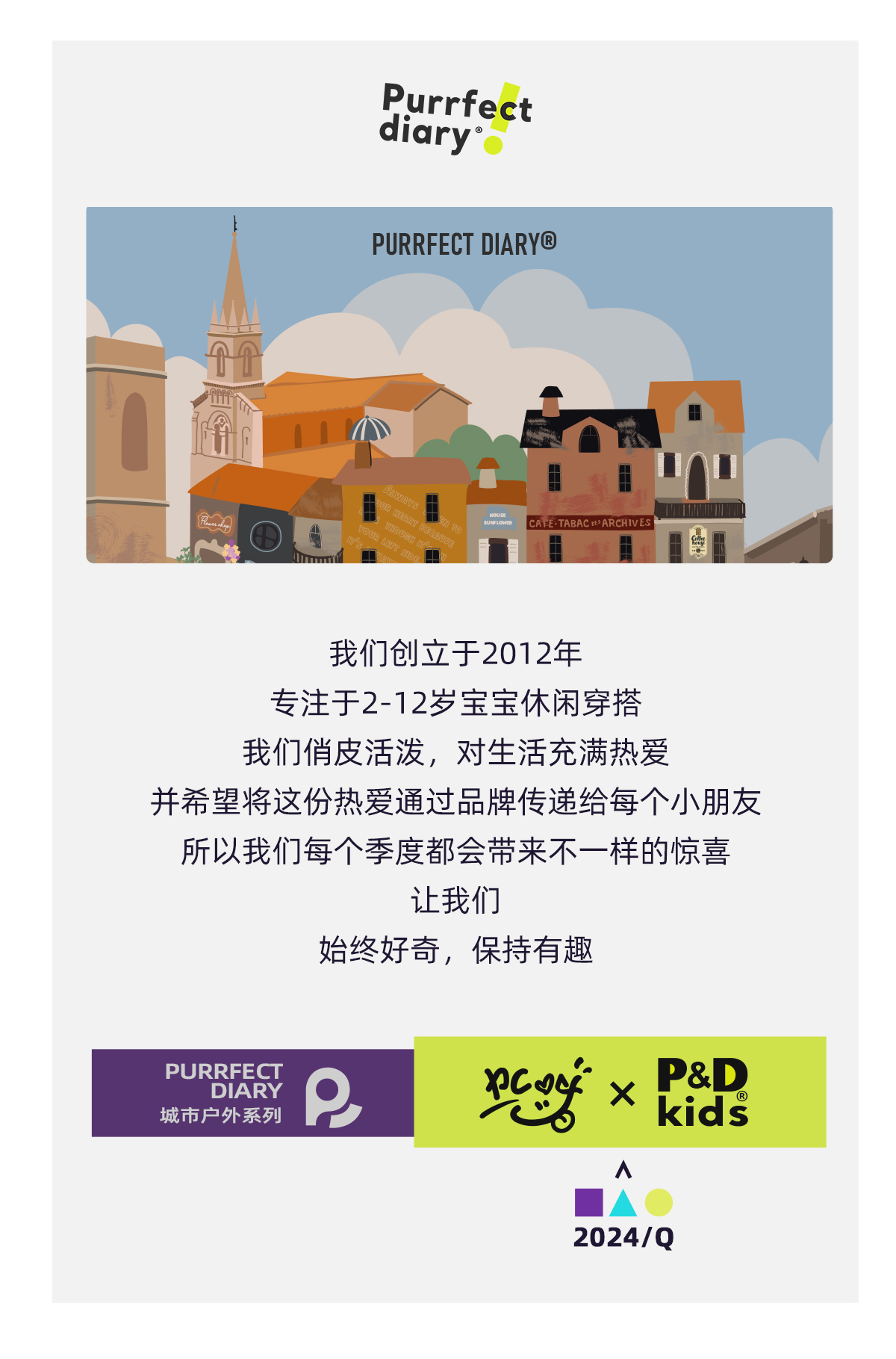 Purrfect-Diary专注于贴近自然随性的穿着概念,轻奢平价的童装文化传播,在产品设计上更加注重婴童穿着的舒适性、安全性、更出众的国际化品牌,将欧美的育婴文化在中国进行深入的传播与推广。