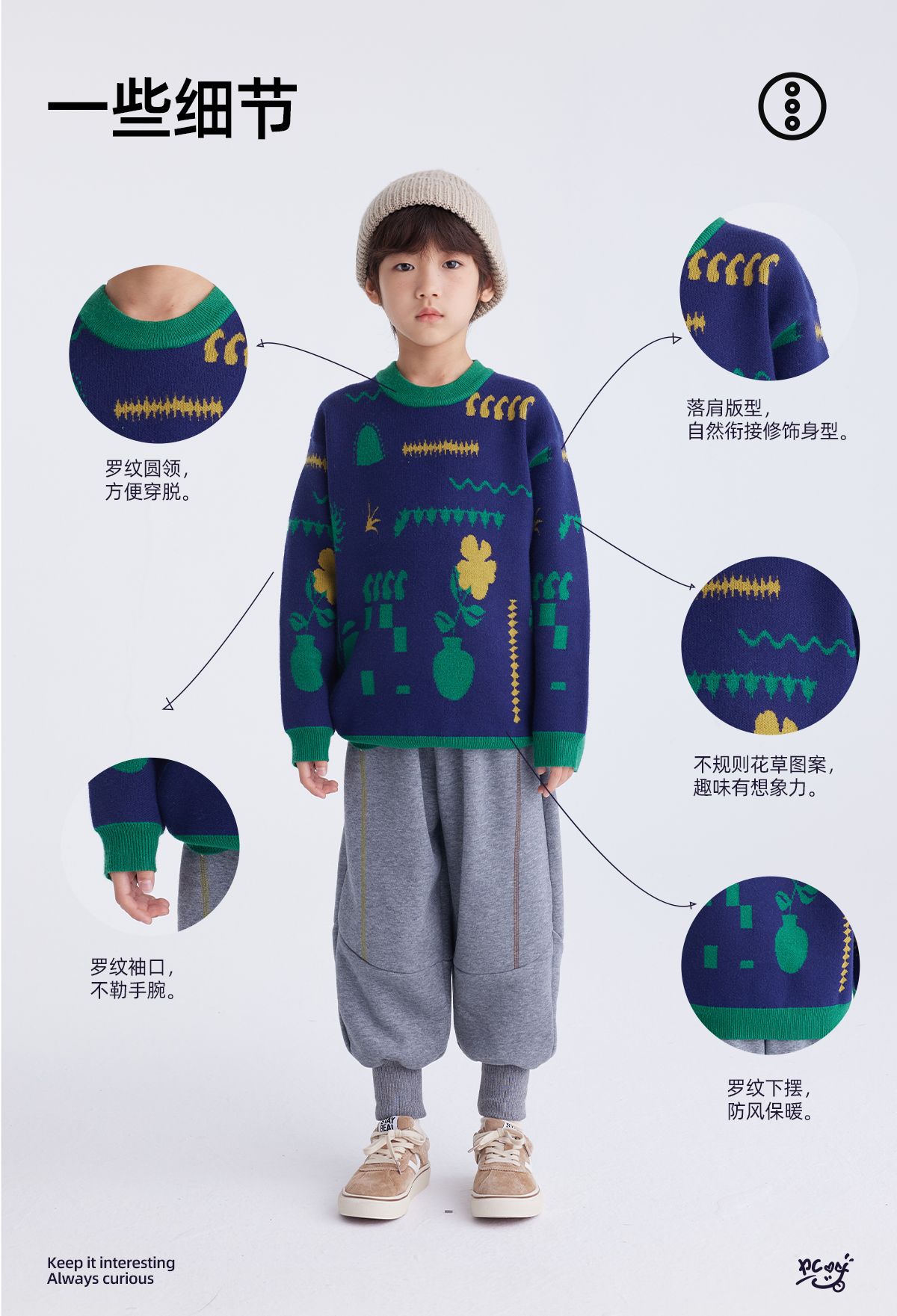 fx-【速干抗菌】咕噜日记儿童弯刀裤2025新款男女童休闲卫裤轻量长裤PQK2516