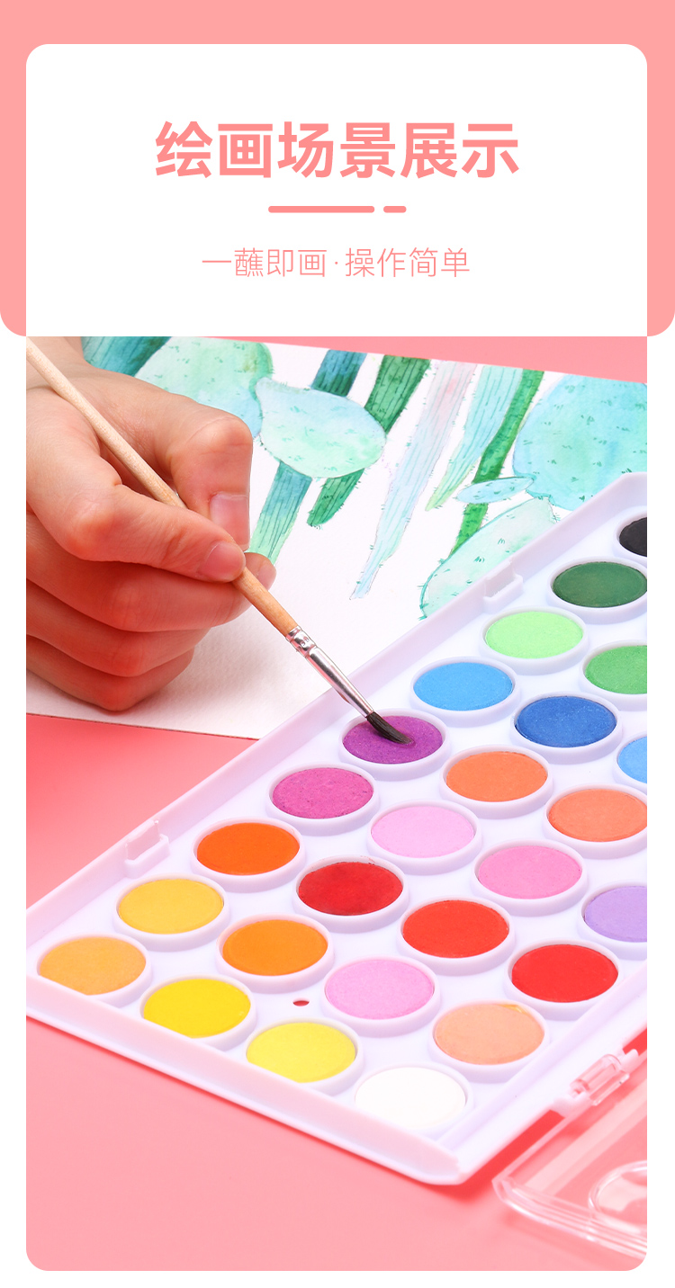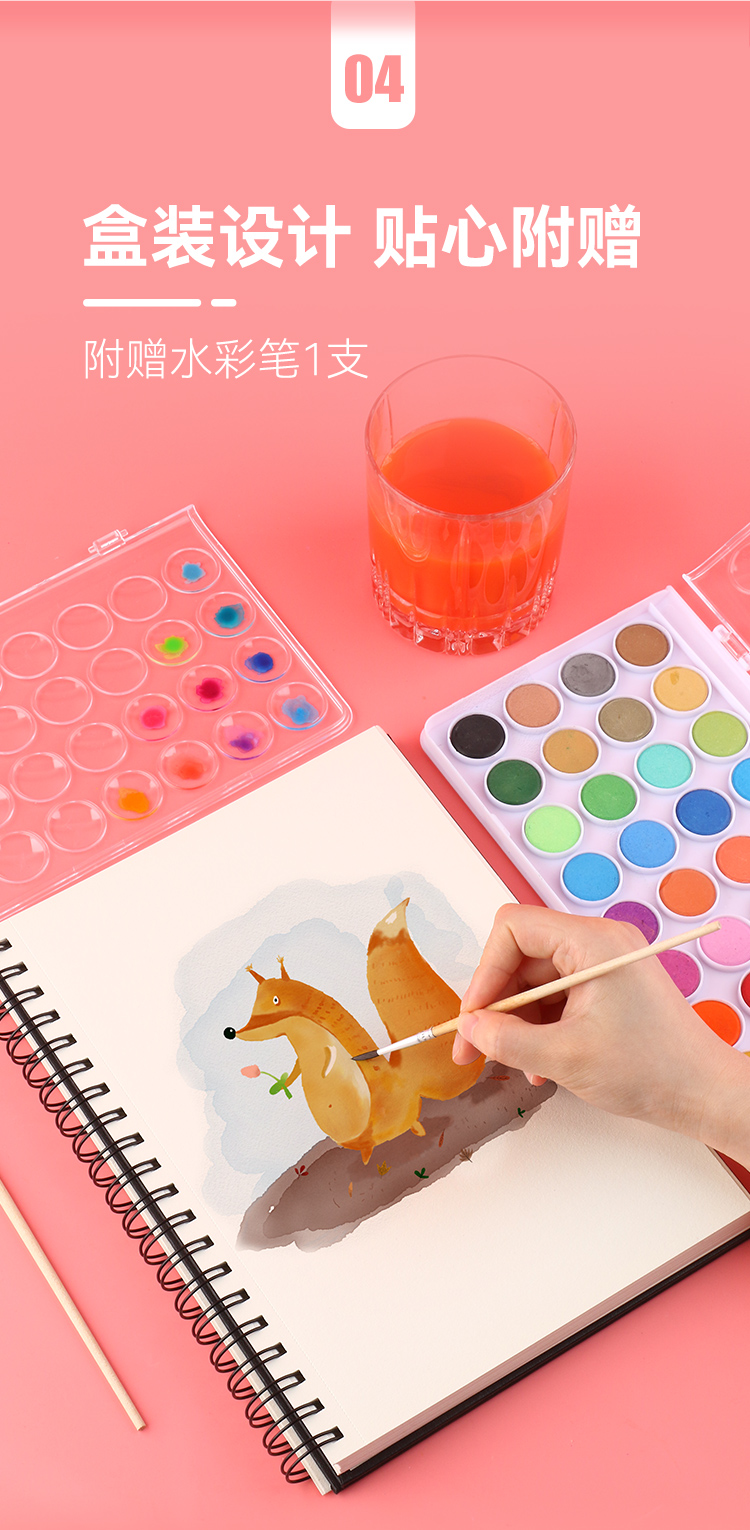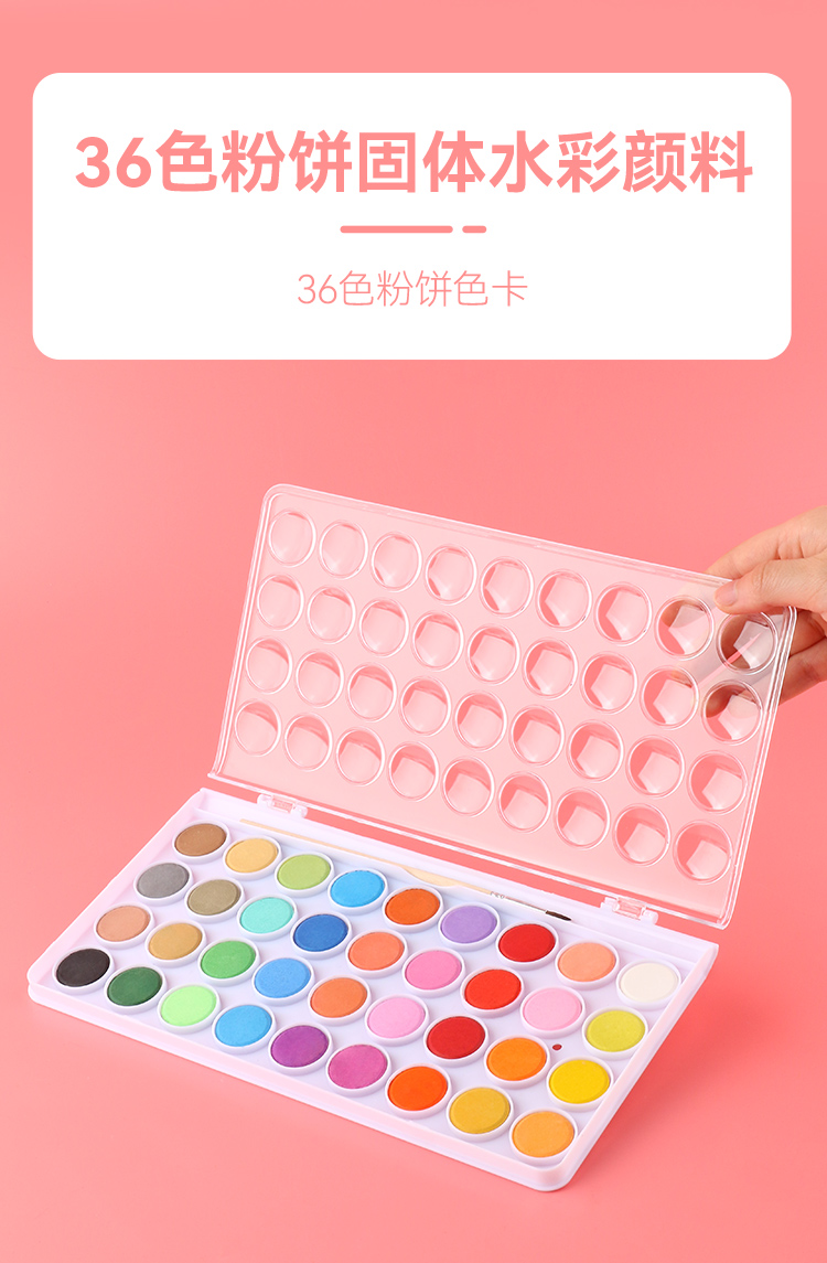 中盛画材 水彩颜料固体盒水粉笔套装便携式可水洗无毒儿童学生用36色画画绘画工具