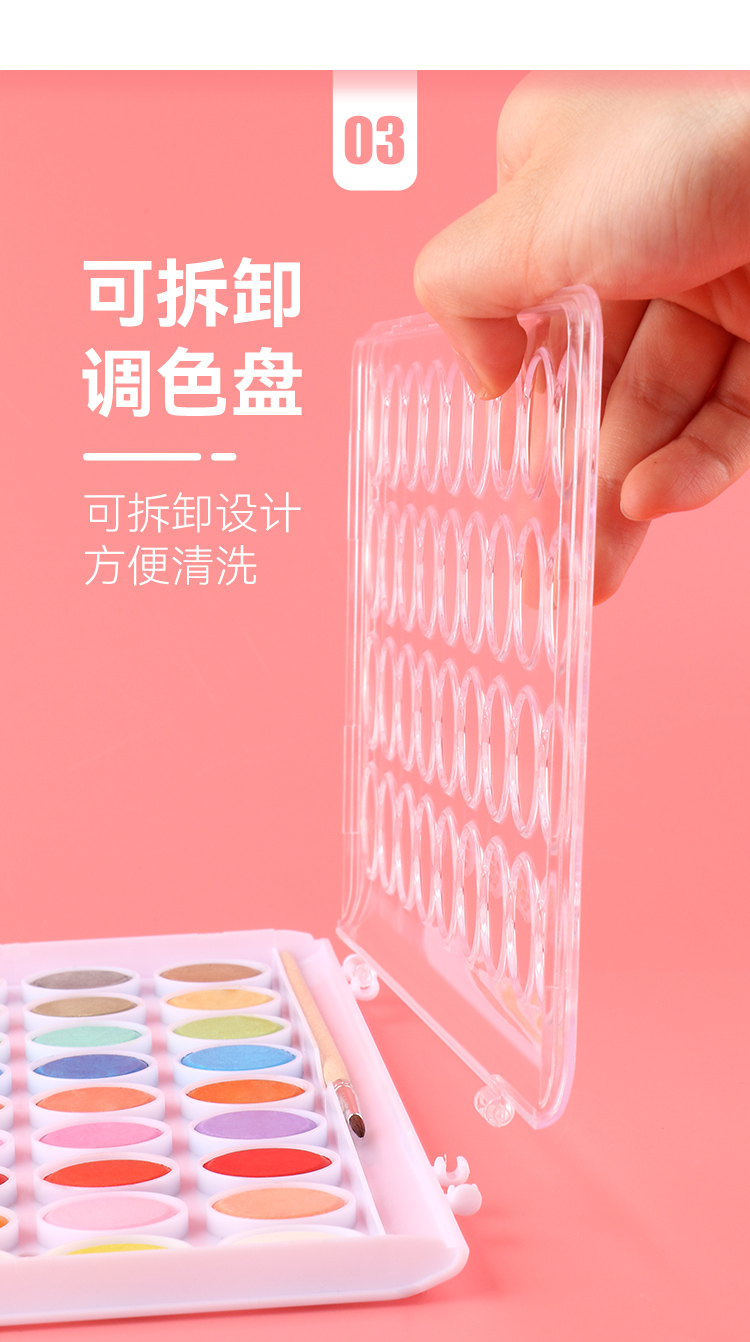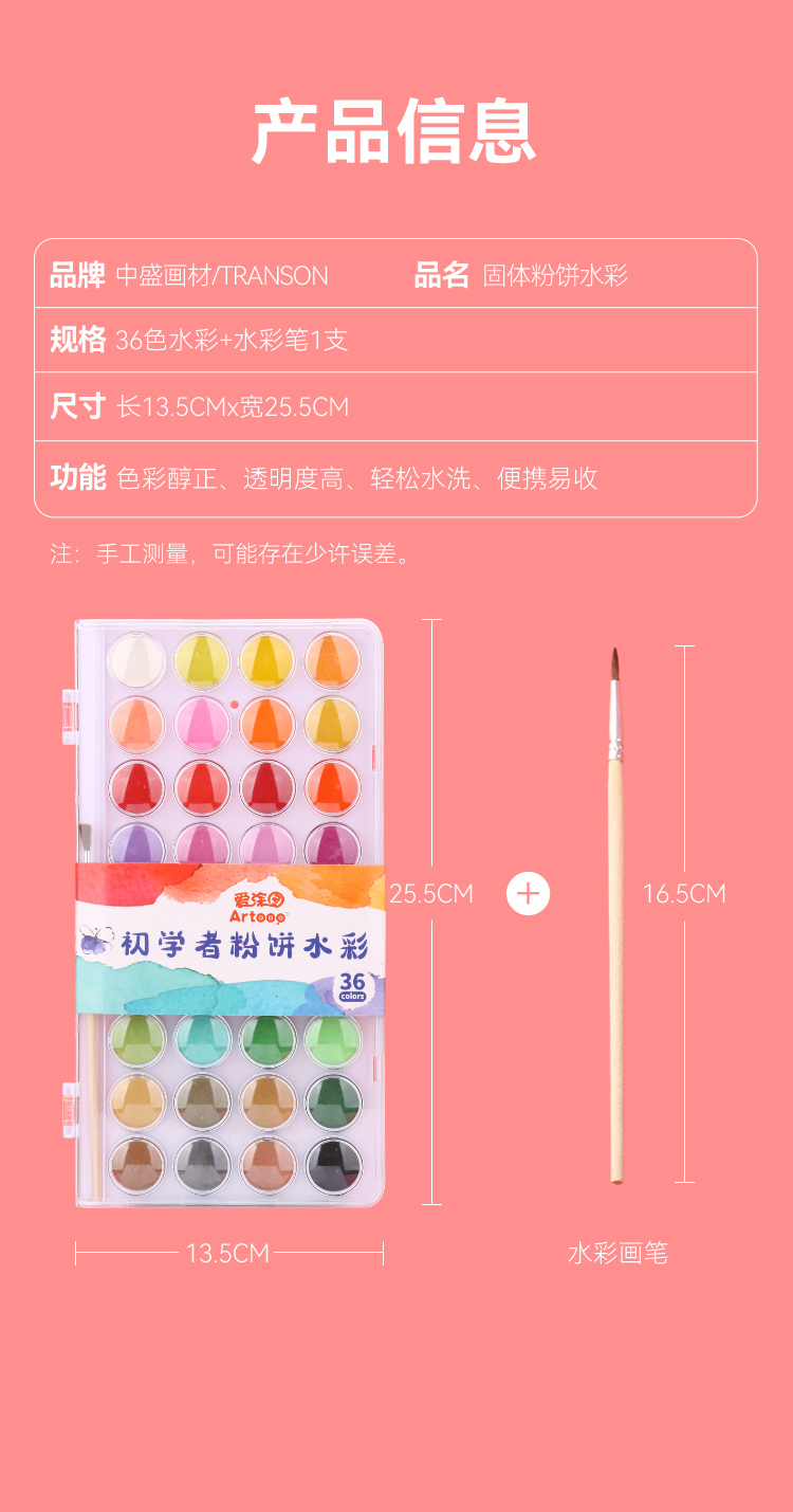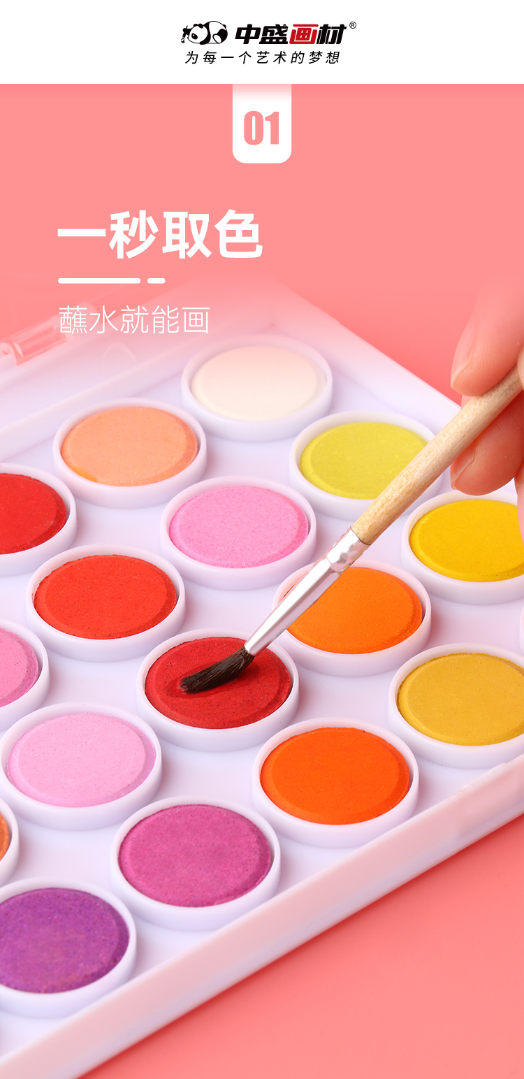 中盛画材 水彩颜料固体盒水粉笔套装便携式可水洗无毒儿童学生用36色画画绘画工具