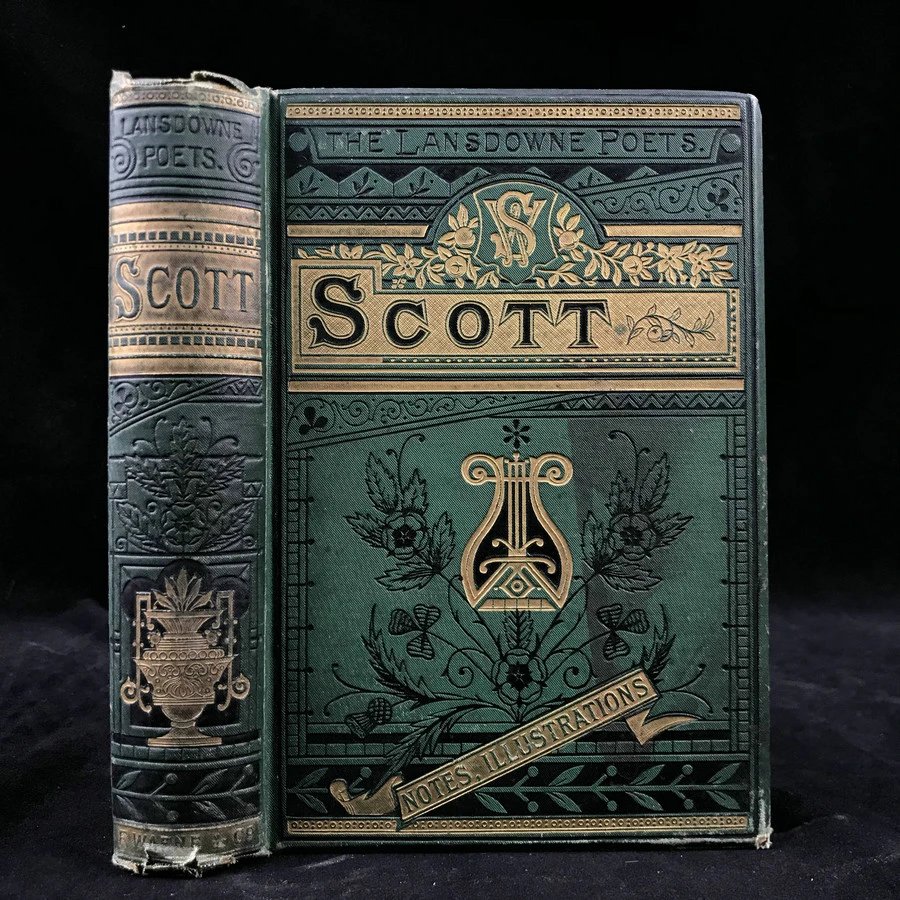 约19世纪后期 司各特诗集 约10幅版画插图 漆布精装32开