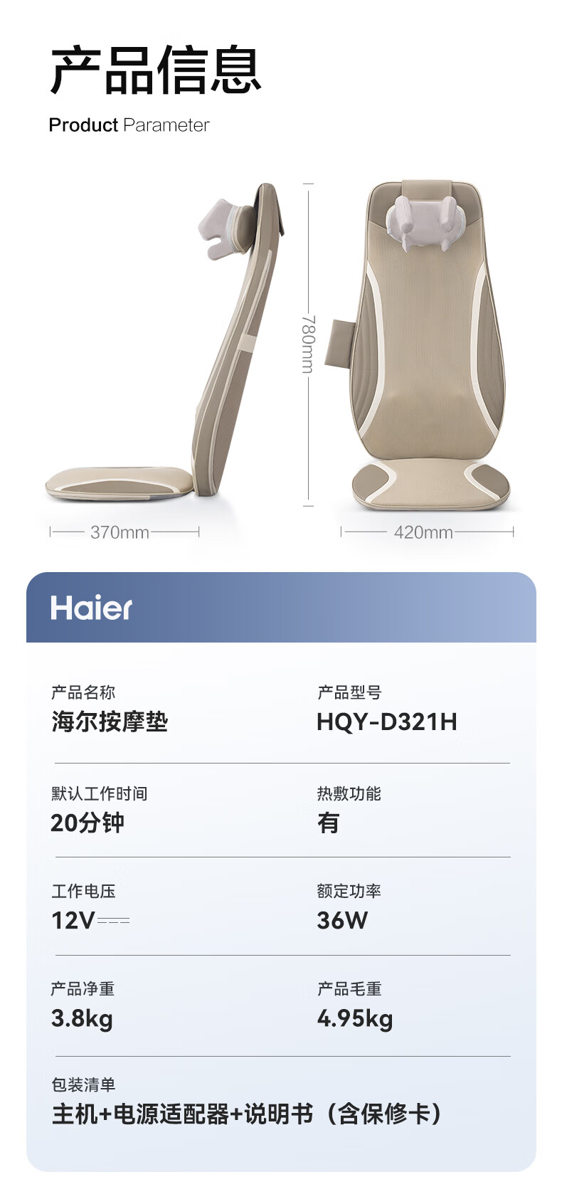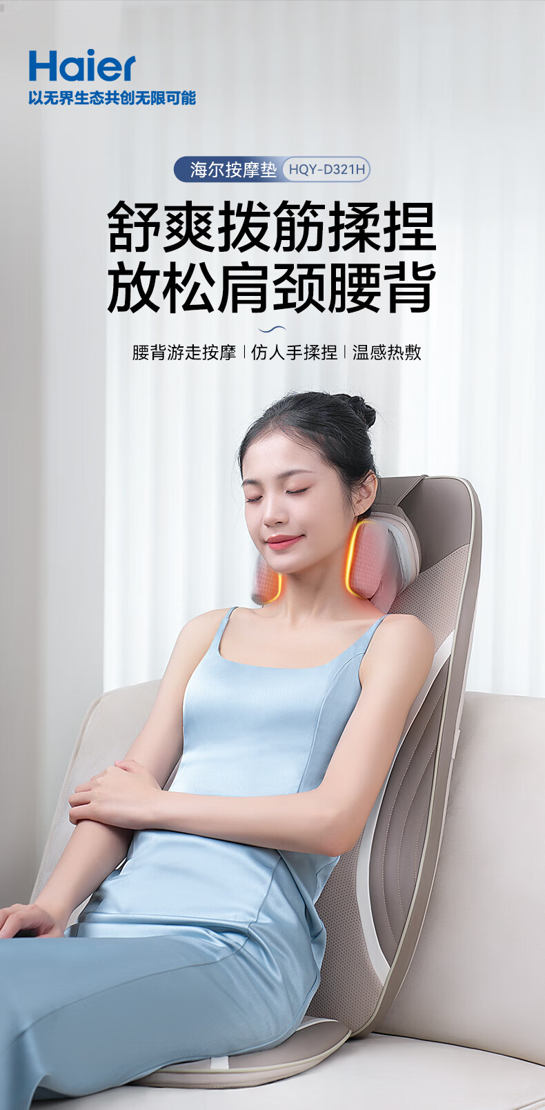 海尔(Haier)颈椎按摩器肩颈斜方肌腰背部按摩仪全身按摩躺垫揉捏家用按摩靠垫生日节日礼物送爸妈HQY-D321H