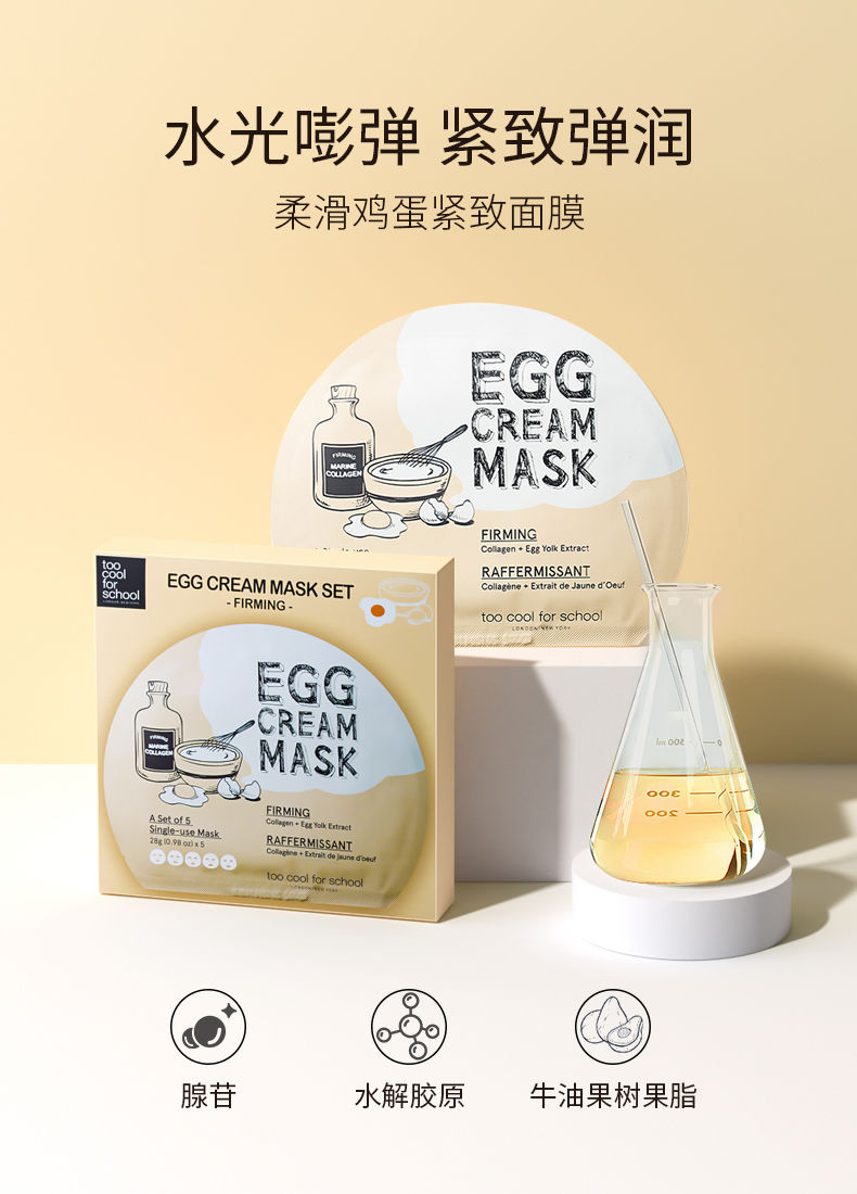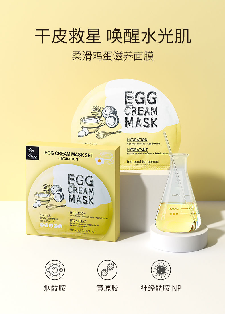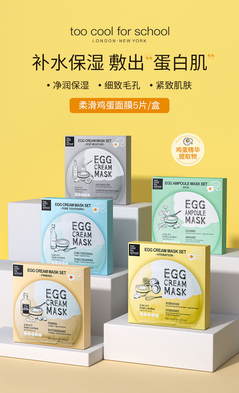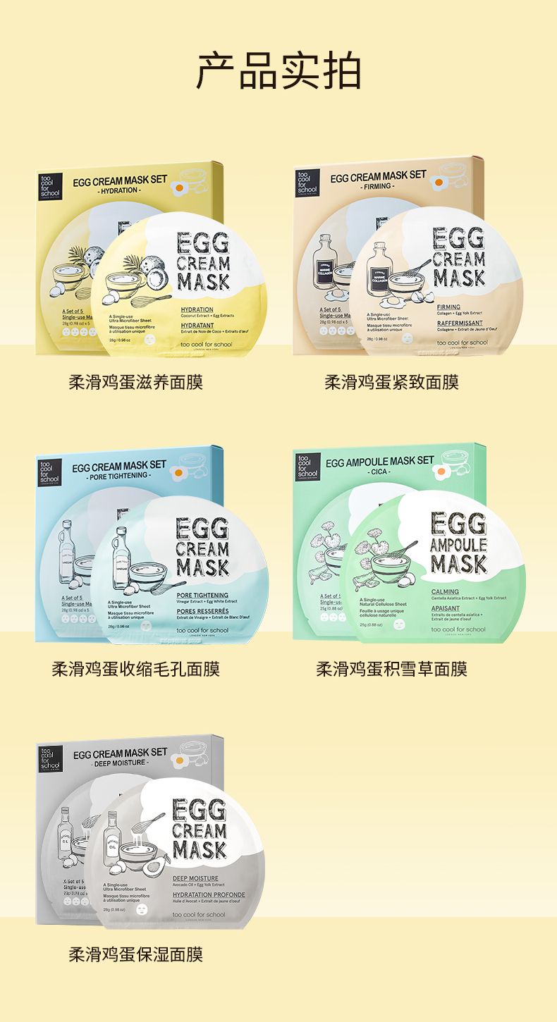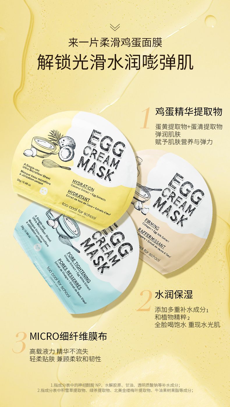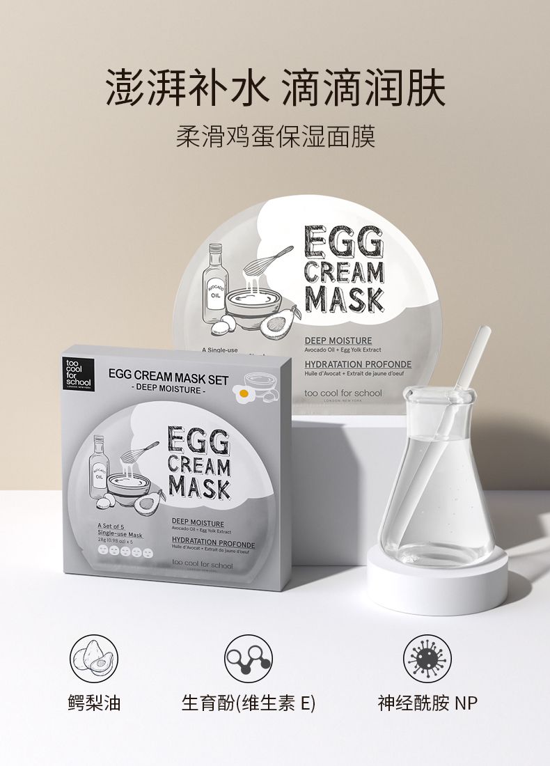 【爆款超低价预售 急单慎拍】too cool for school面膜保湿水润紧致滋润5片装鸡蛋补水