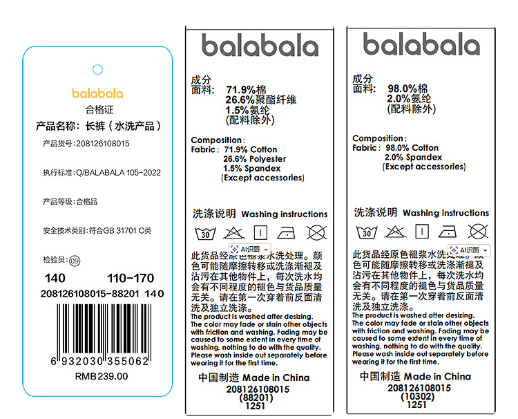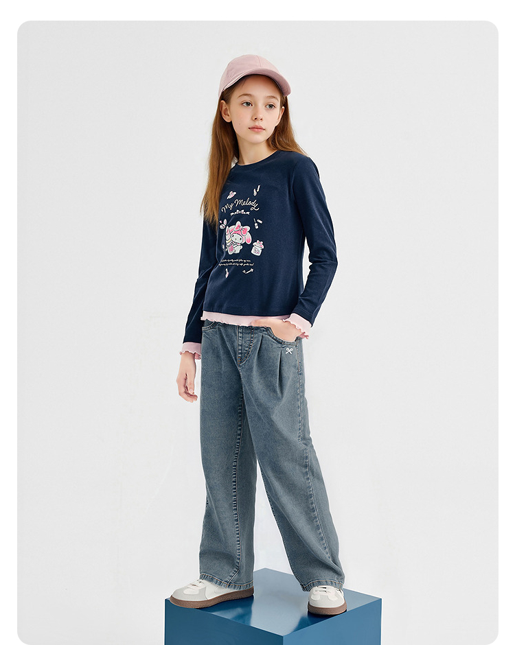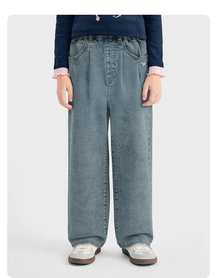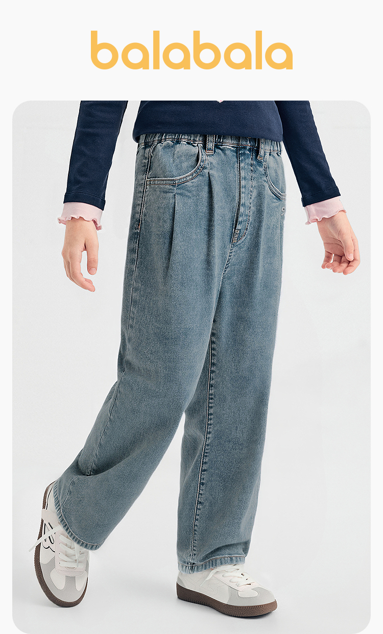【balaOne】巴拉巴拉童装儿童裤子女童2026春装新款牛仔裤捏褶潮