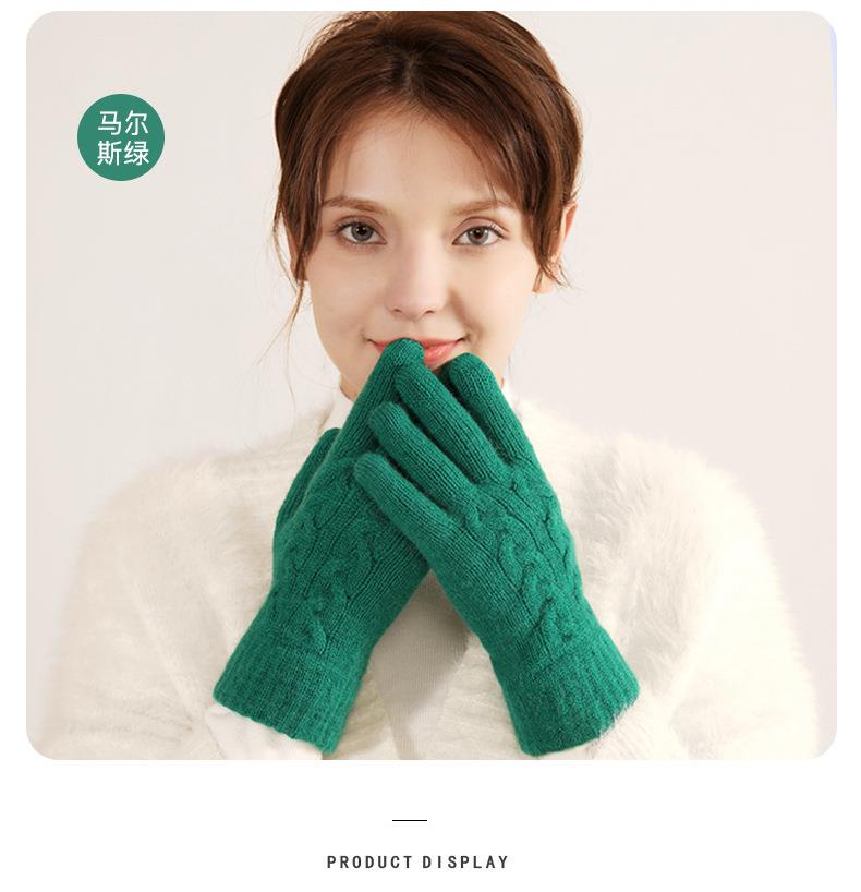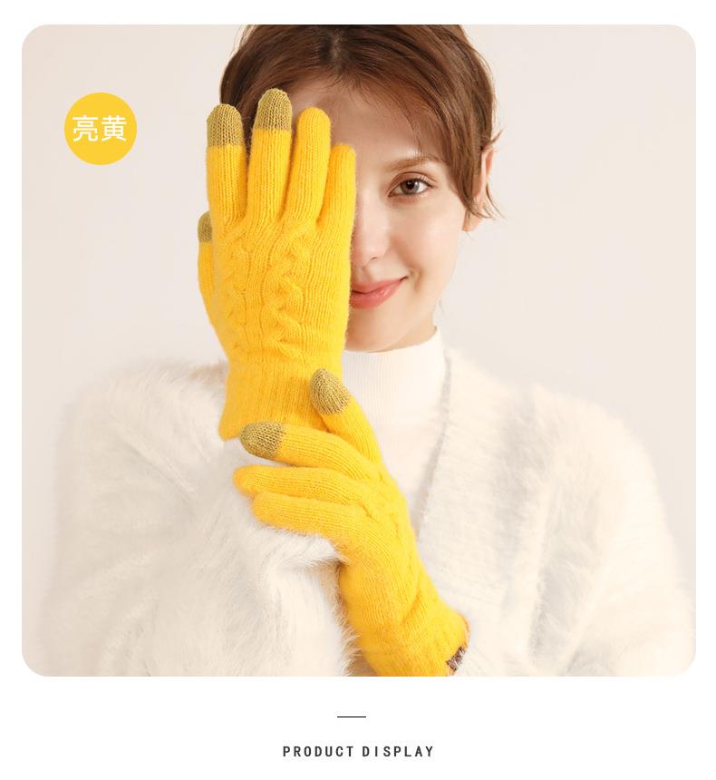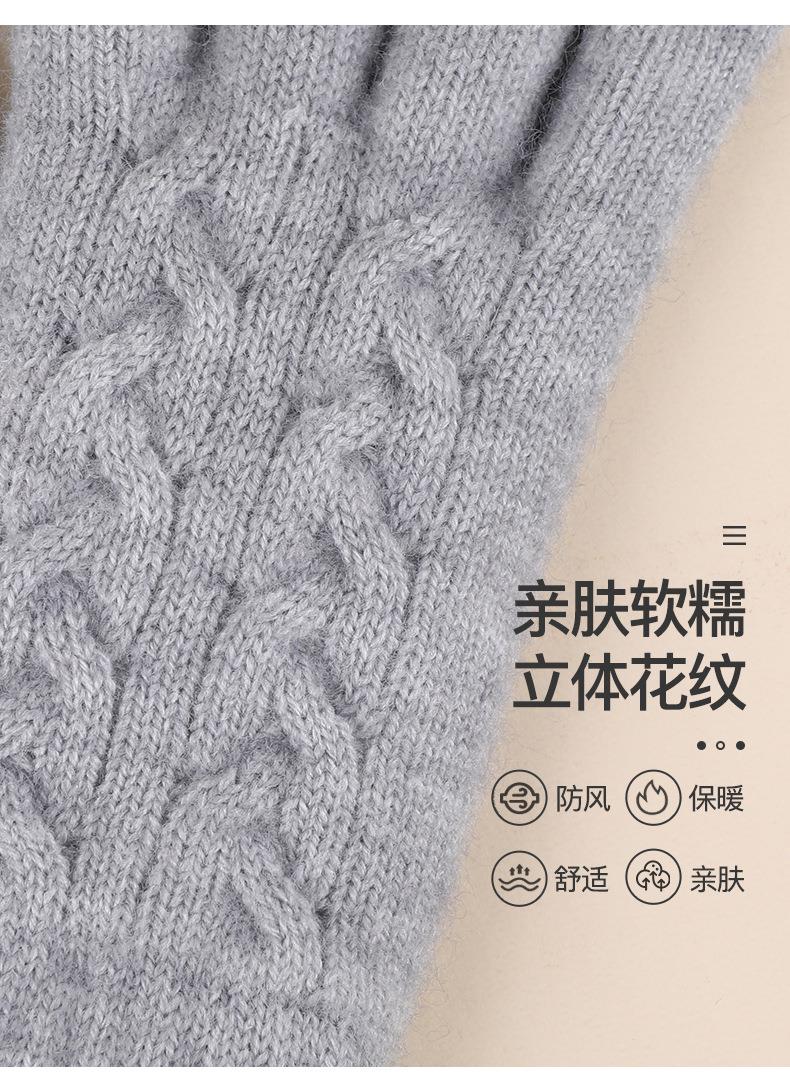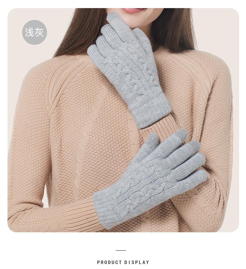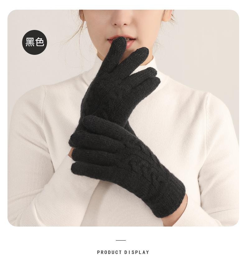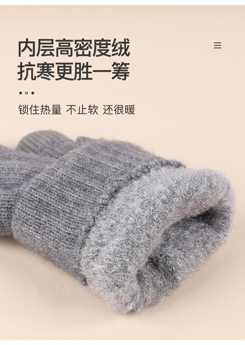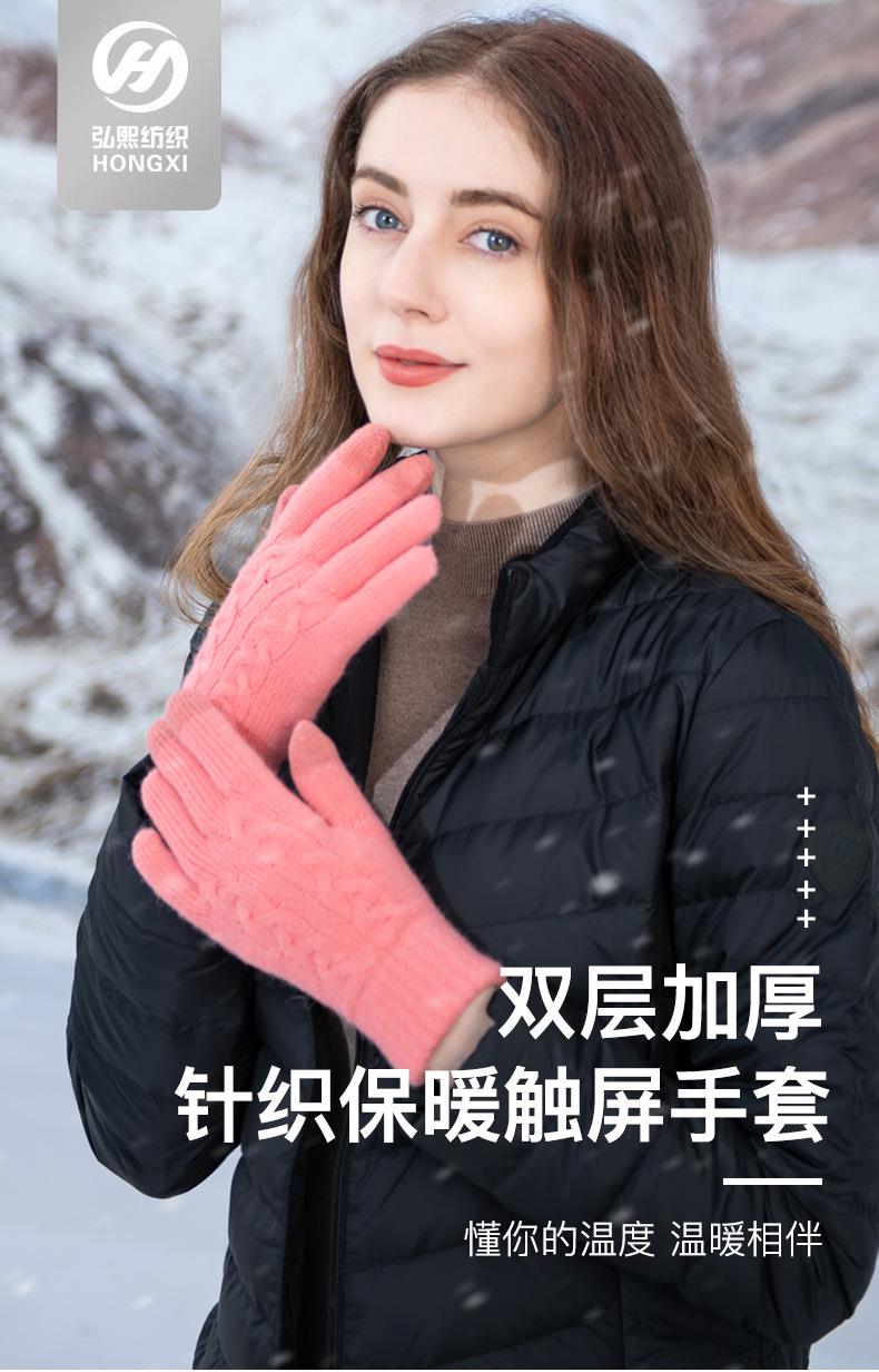 冬季女双层保暖触屏针织手套毛线防寒纯色加绒加厚男户外骑行手套