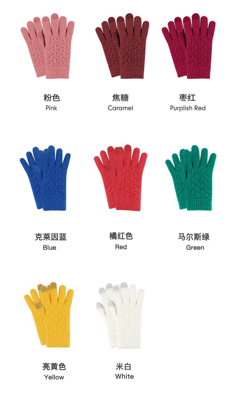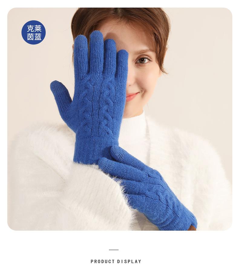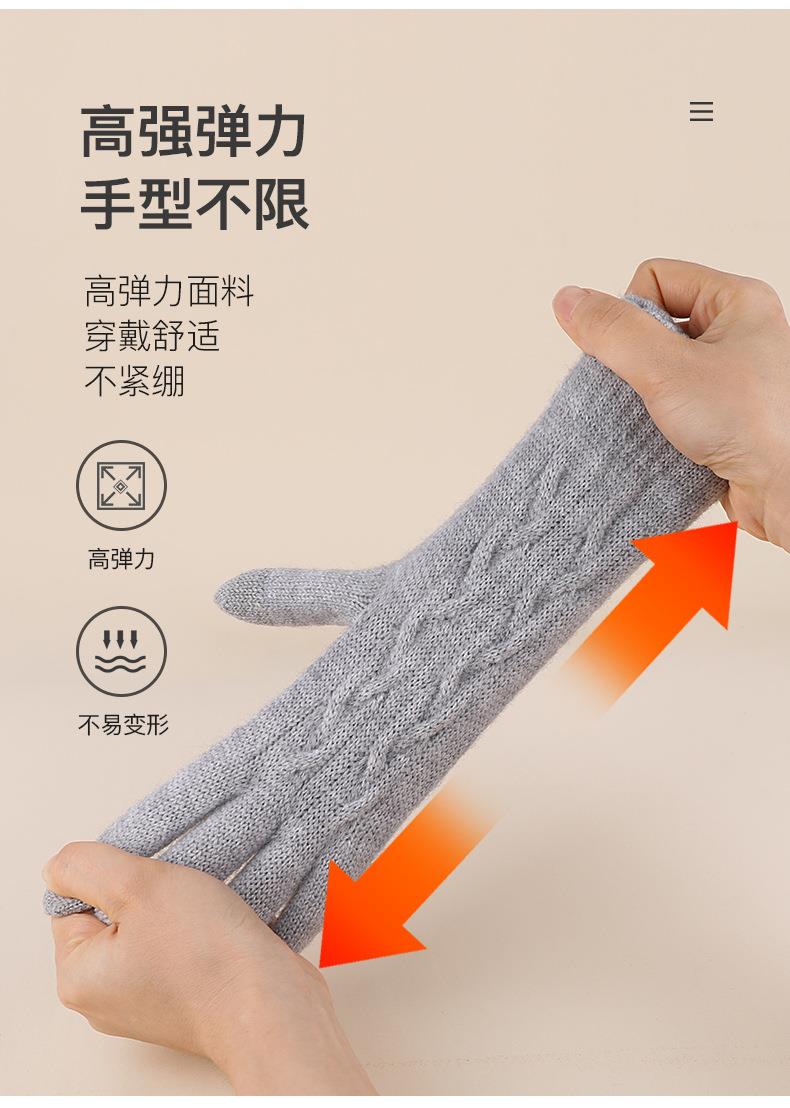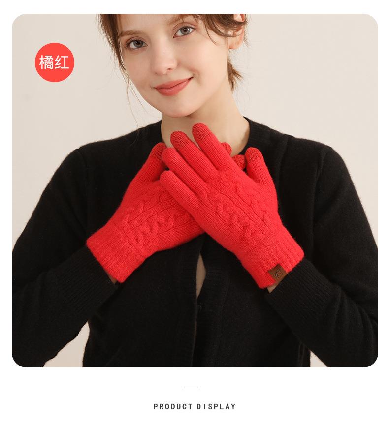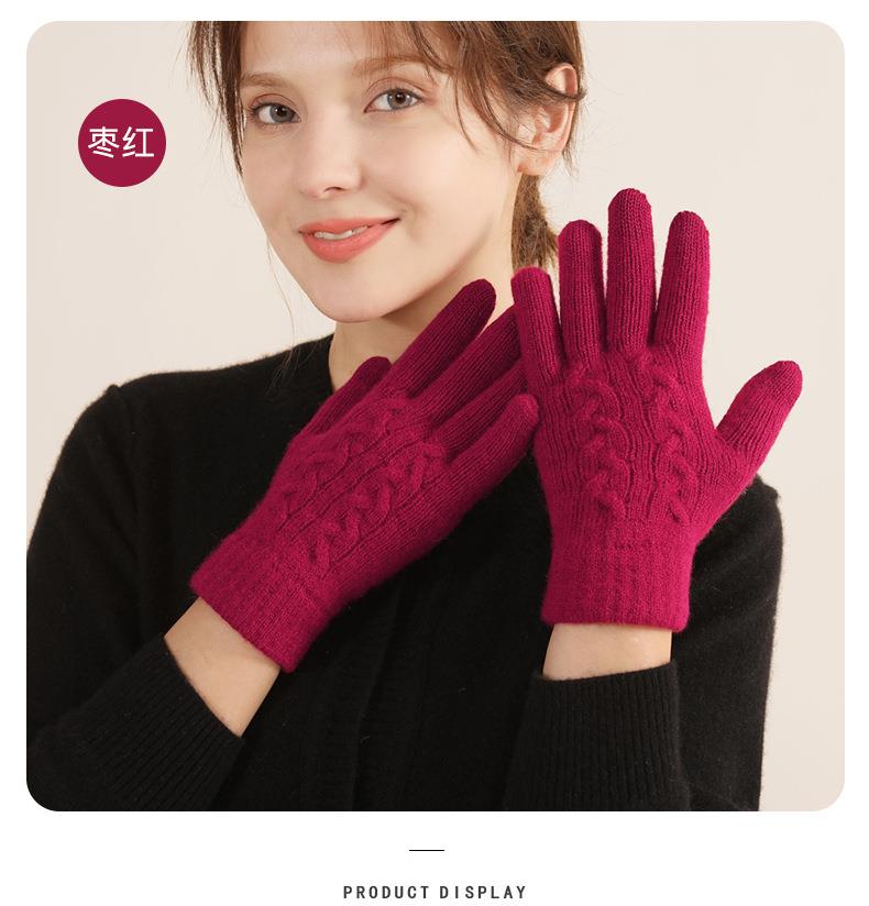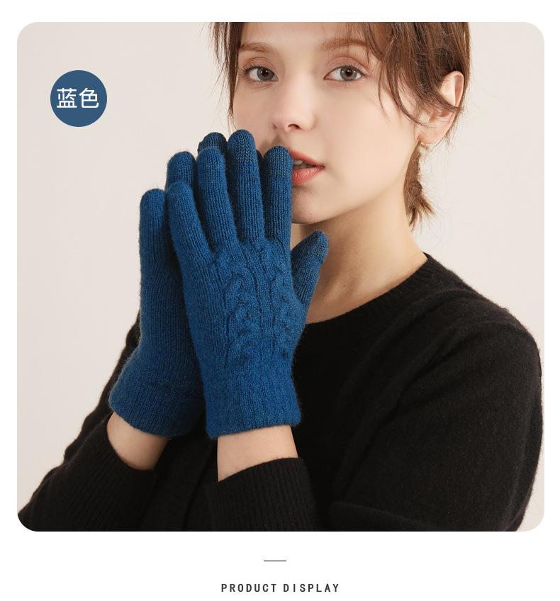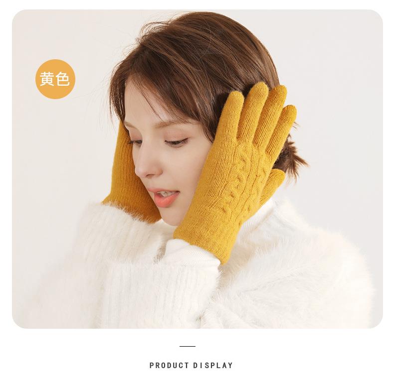 冬季女双层保暖触屏针织手套毛线防寒纯色加绒加厚男户外骑行手套