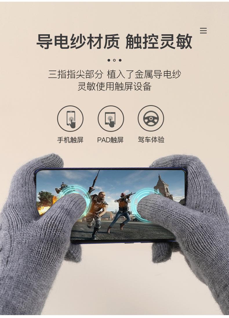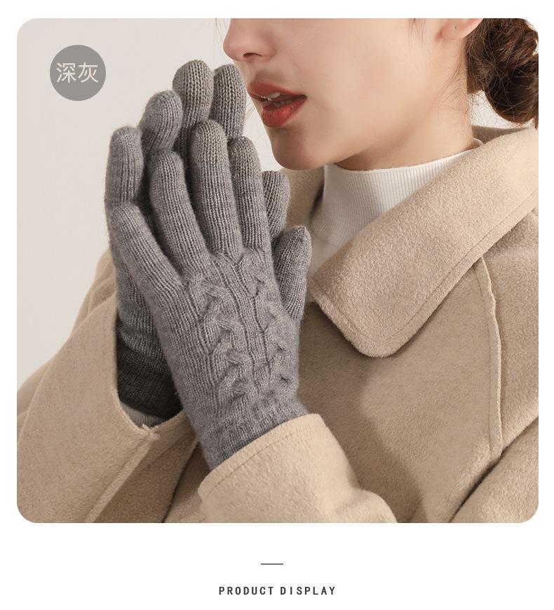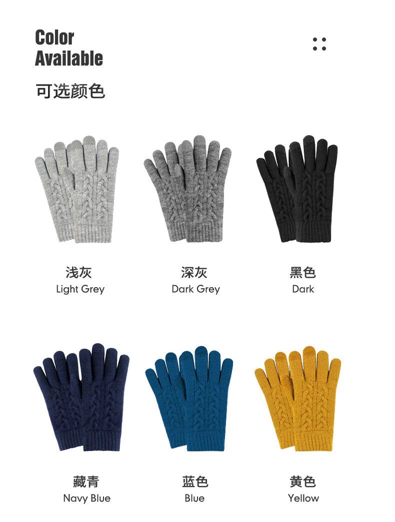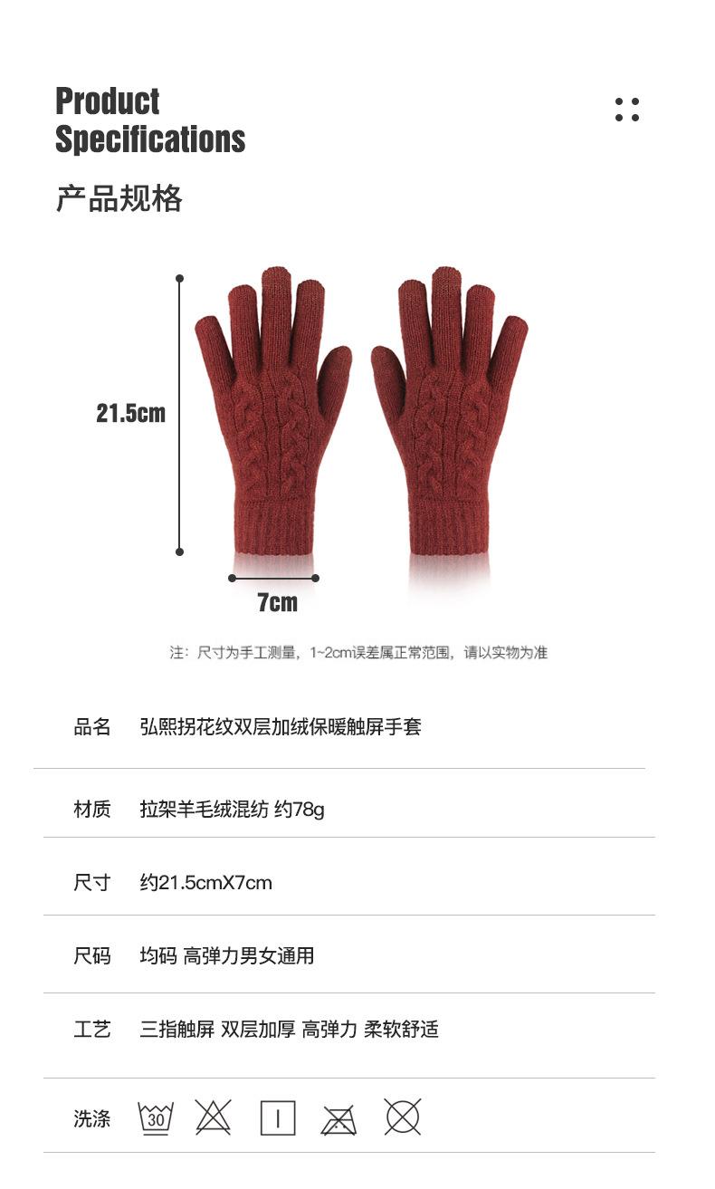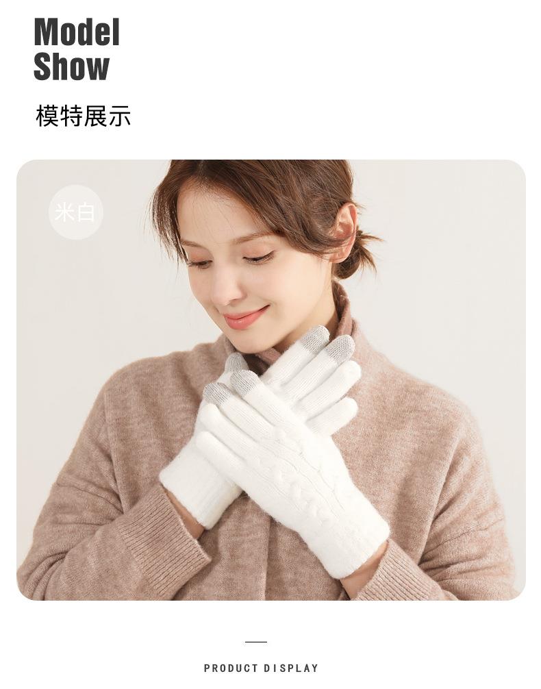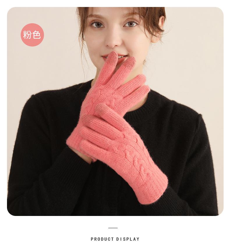冬季女双层保暖触屏针织手套毛线防寒纯色加绒加厚男户外骑行手套