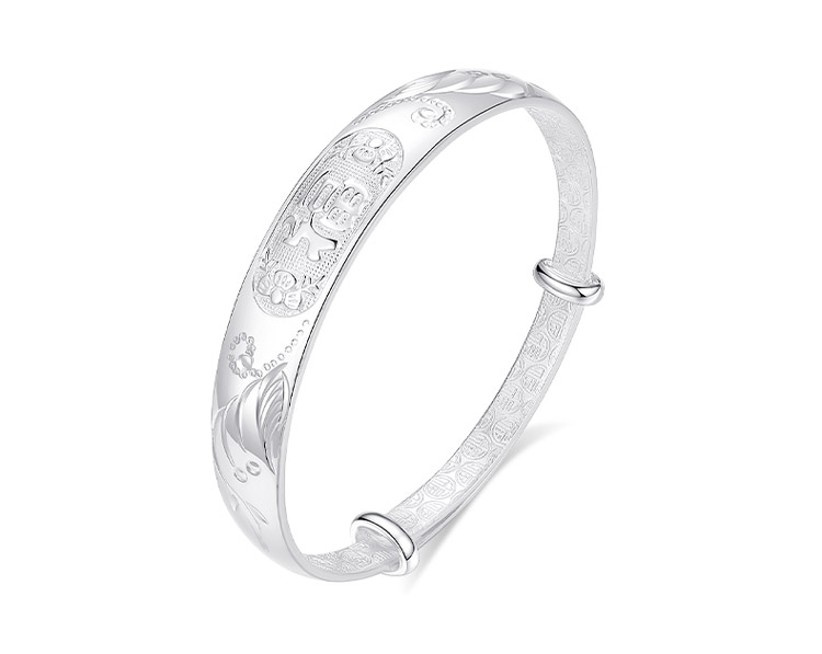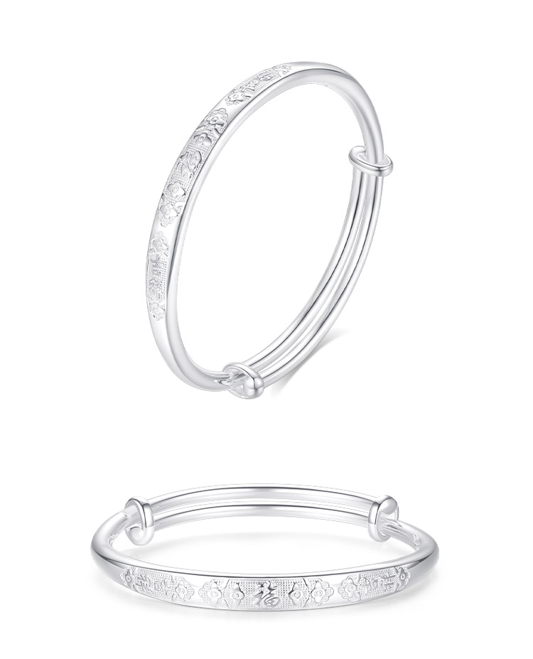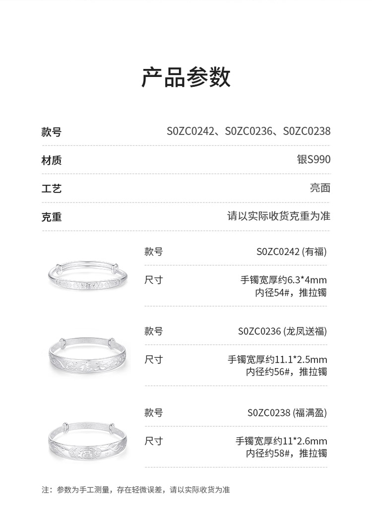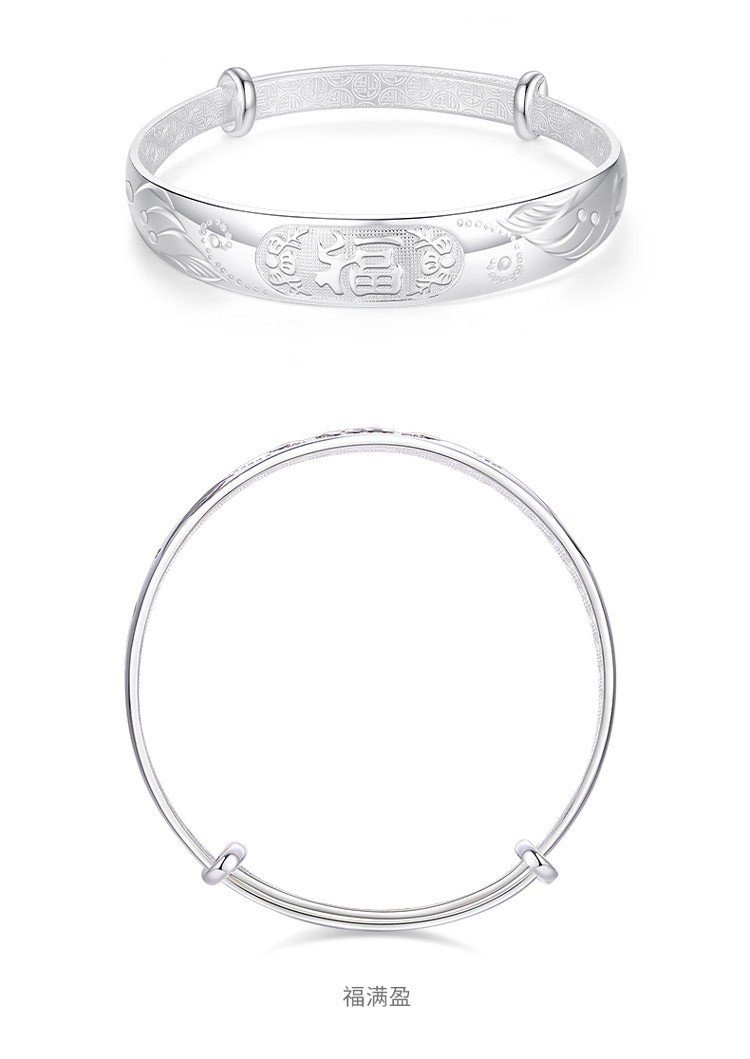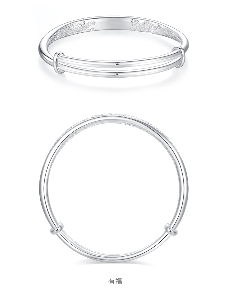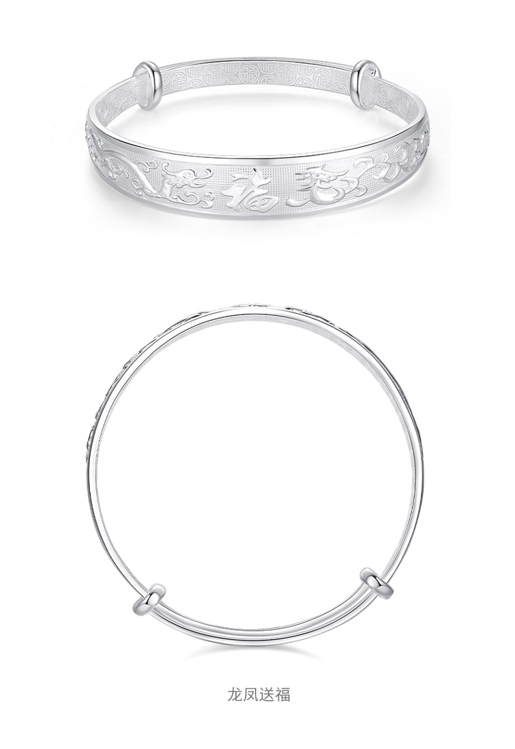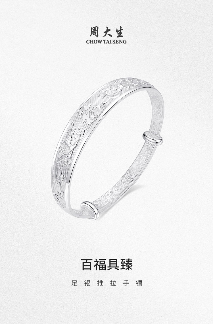 周大生足银推拉宝宝手镯百福具臻有福手镯龙凤送福手镯福满盈手镯周岁礼