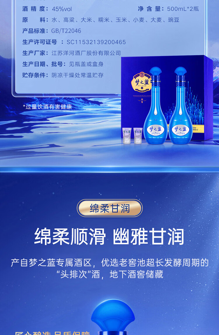 45°梦之蓝M6 500ml/瓶(yh)