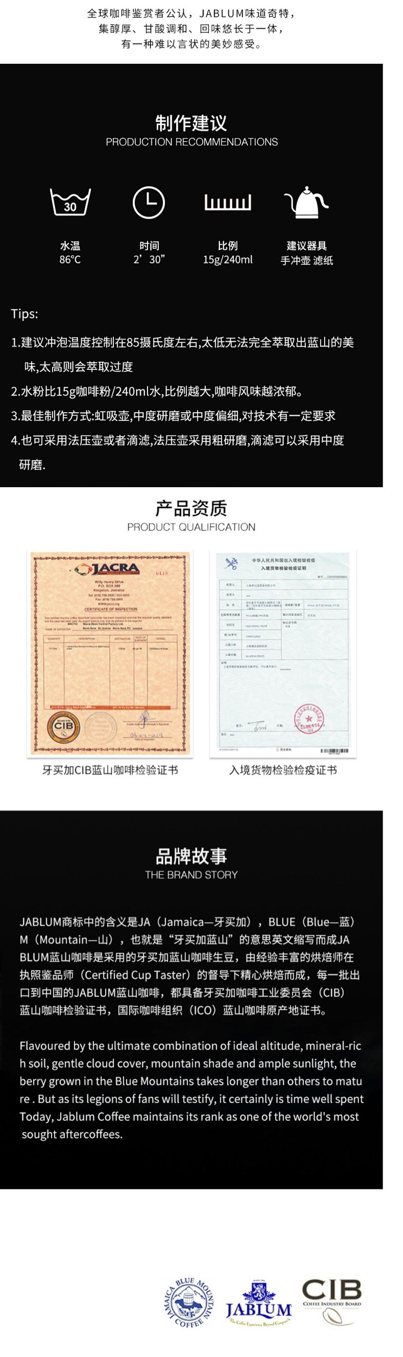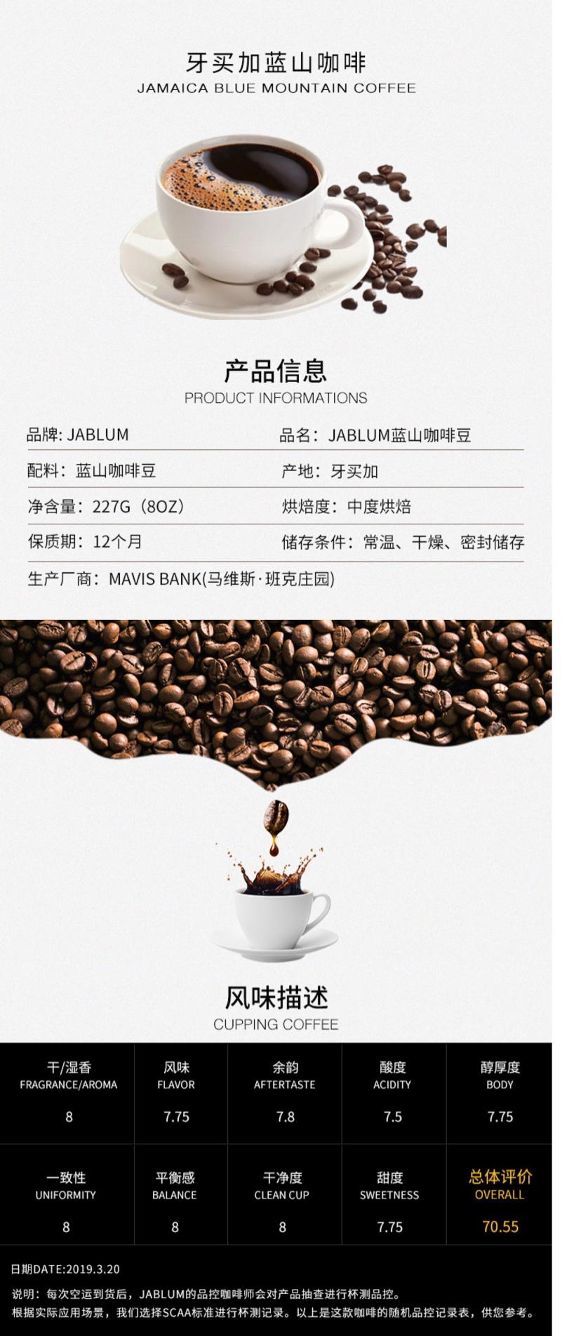 品名:加比蓝蓝山咖啡烘焙豆 227g/袋