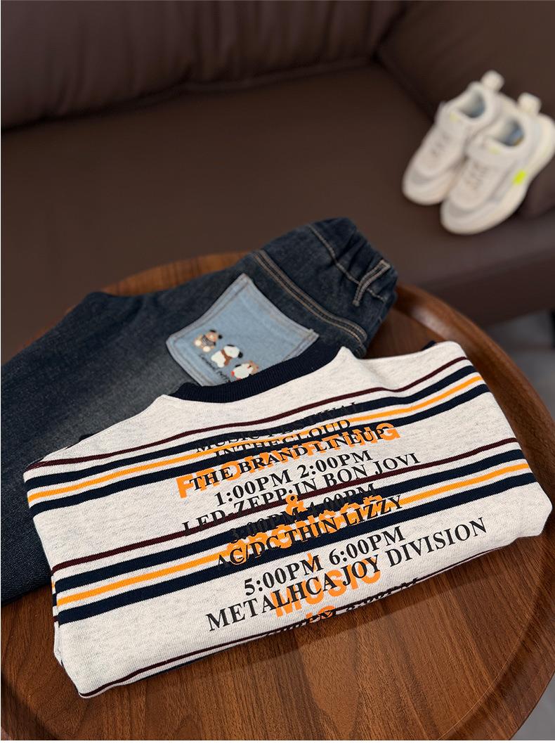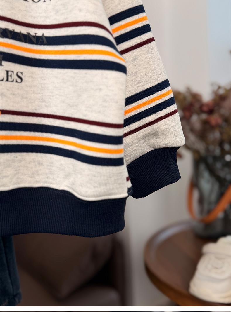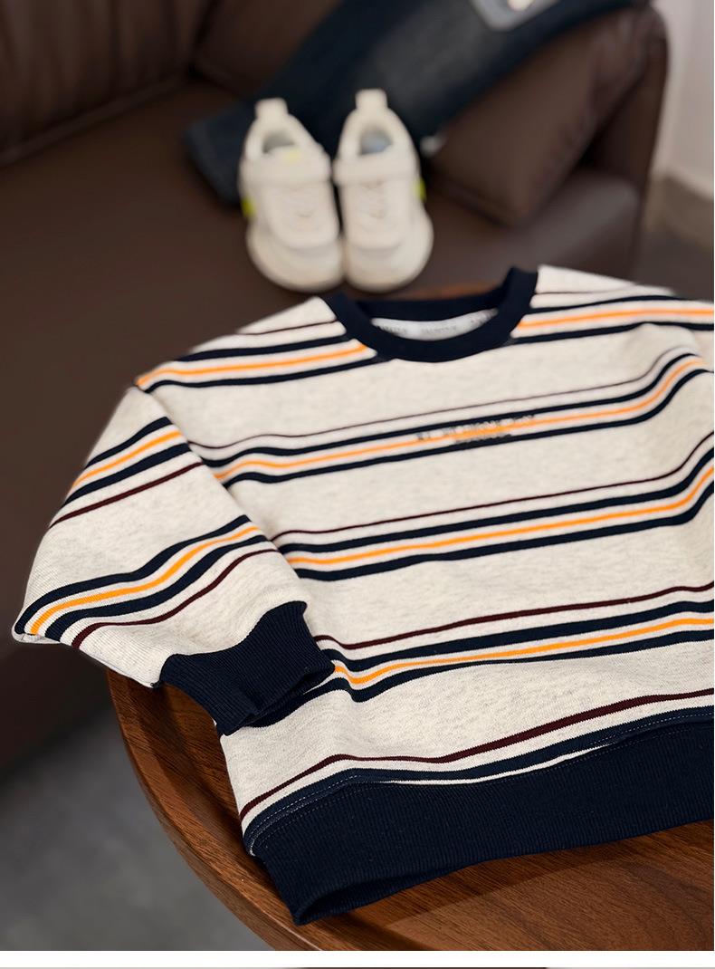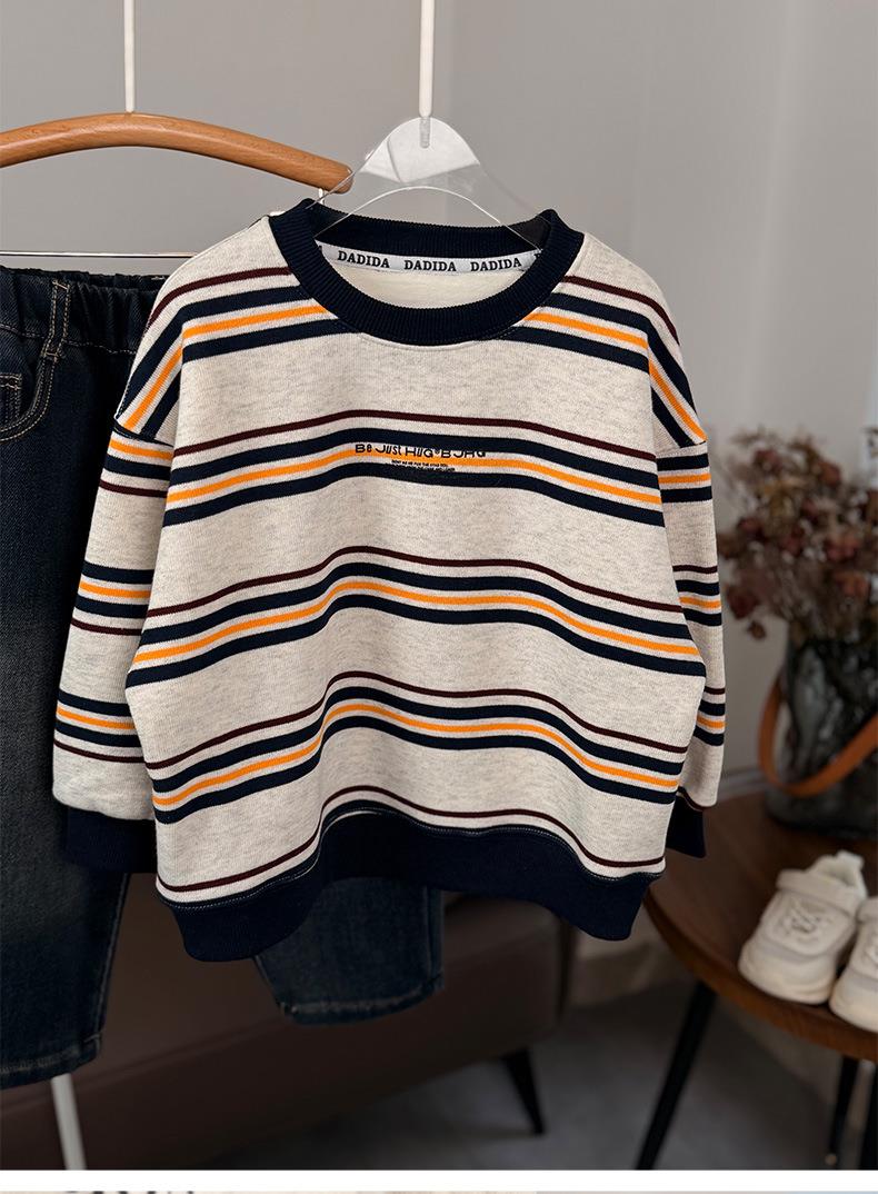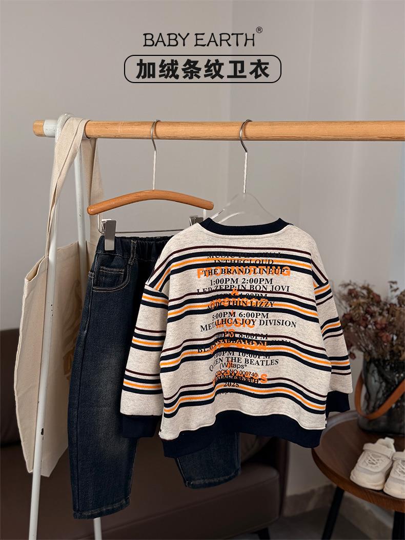 男童卫衣冬季儿童加绒上衣小童条纹加厚打底衫冬装大童保暖衣服冬