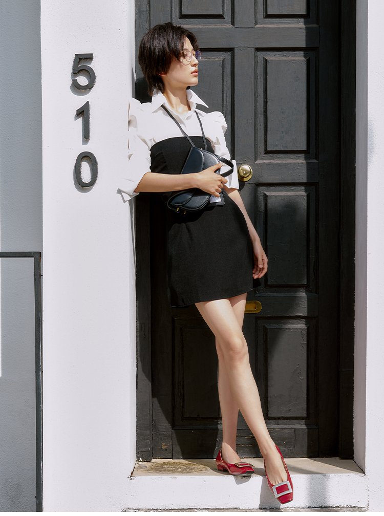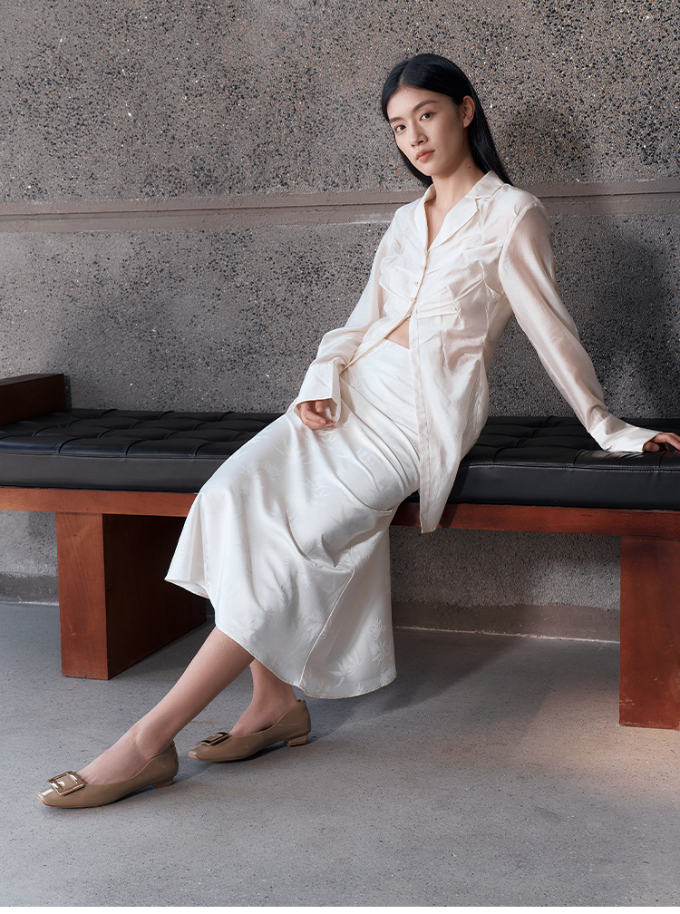 【小方镜系列】星期六26春新款优雅风缎面晶扣中低跟单鞋SSE1111030/SSE1111035