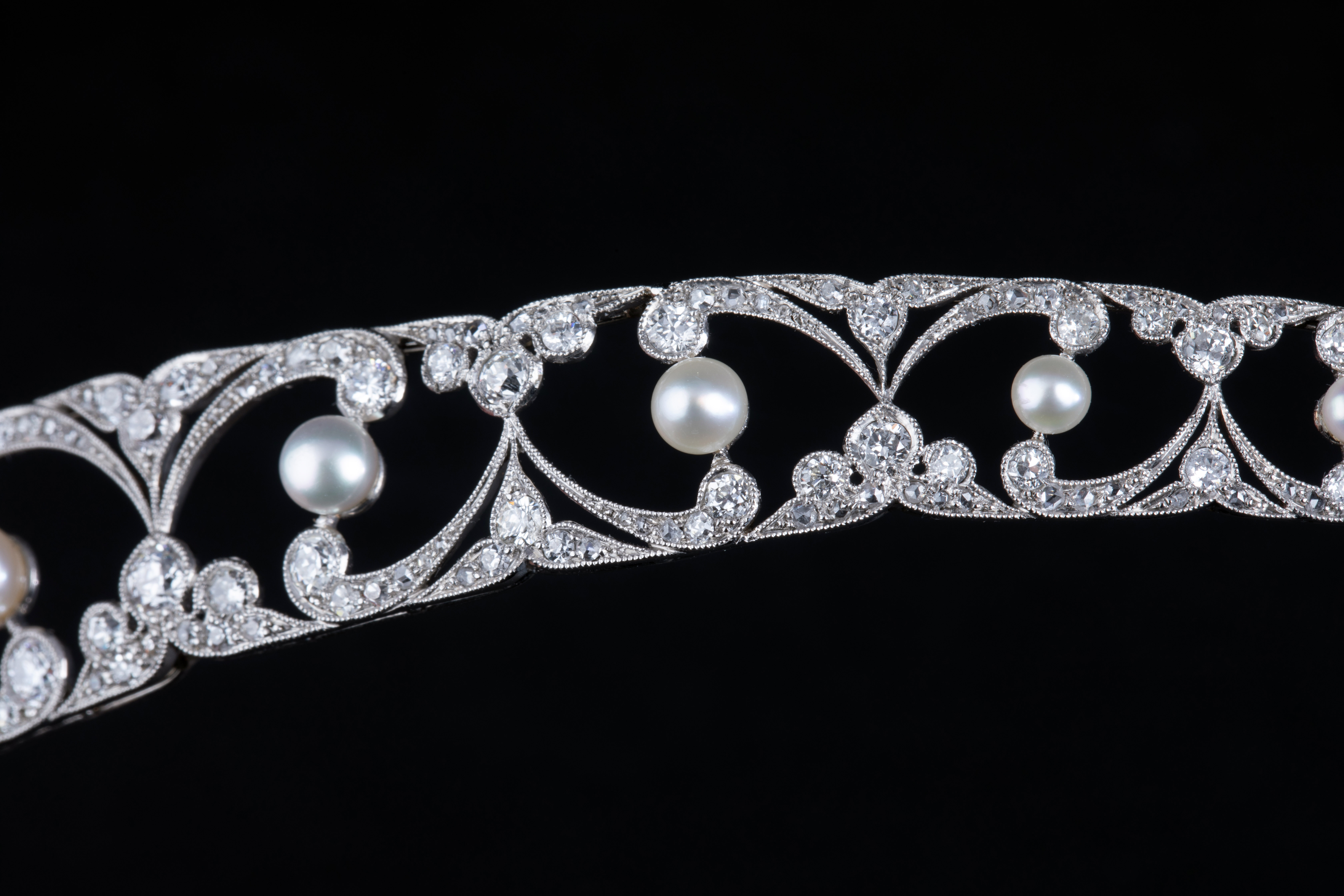 独角鹿西洋古董珠宝首饰英国美好时代铂金镶嵌钻石珍珠冠冕头饰