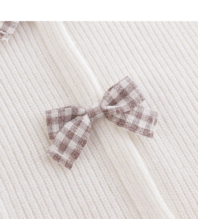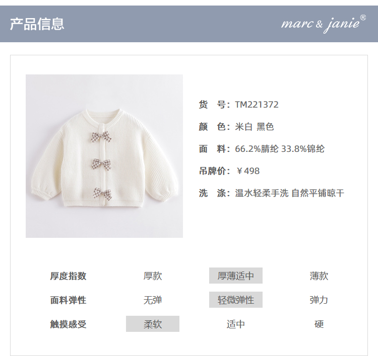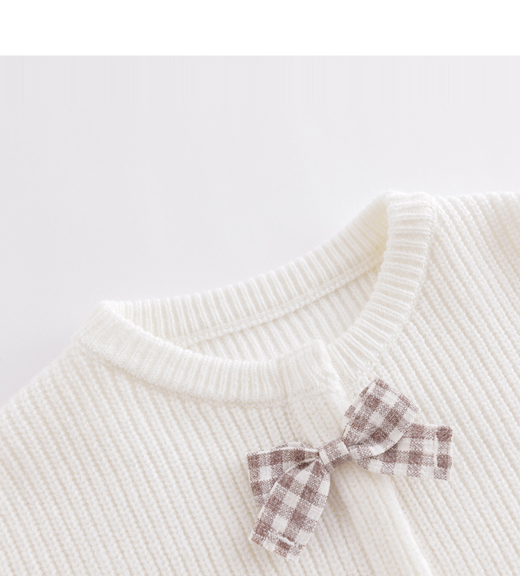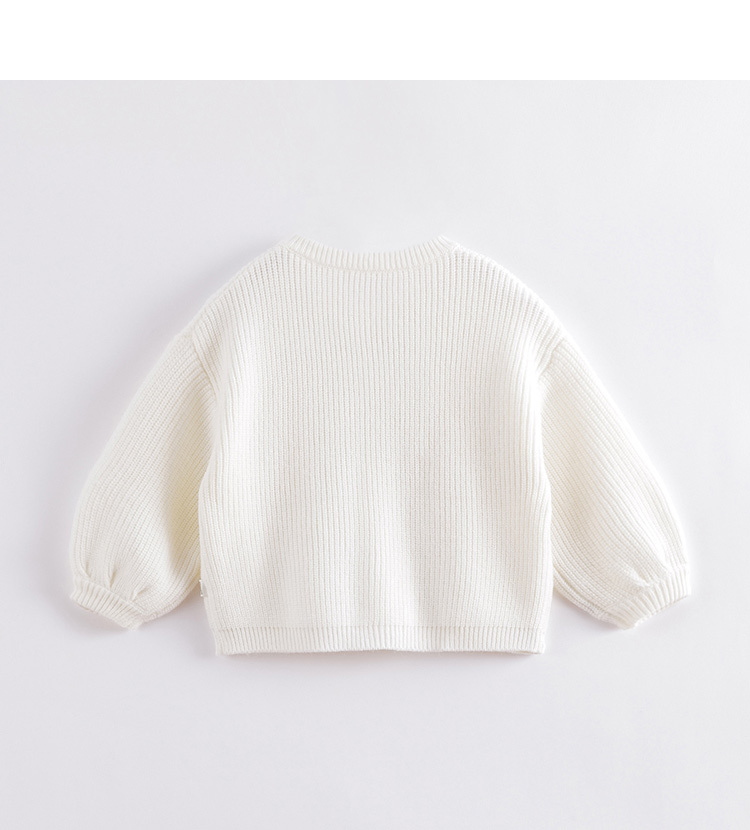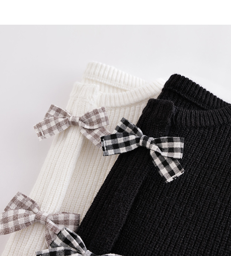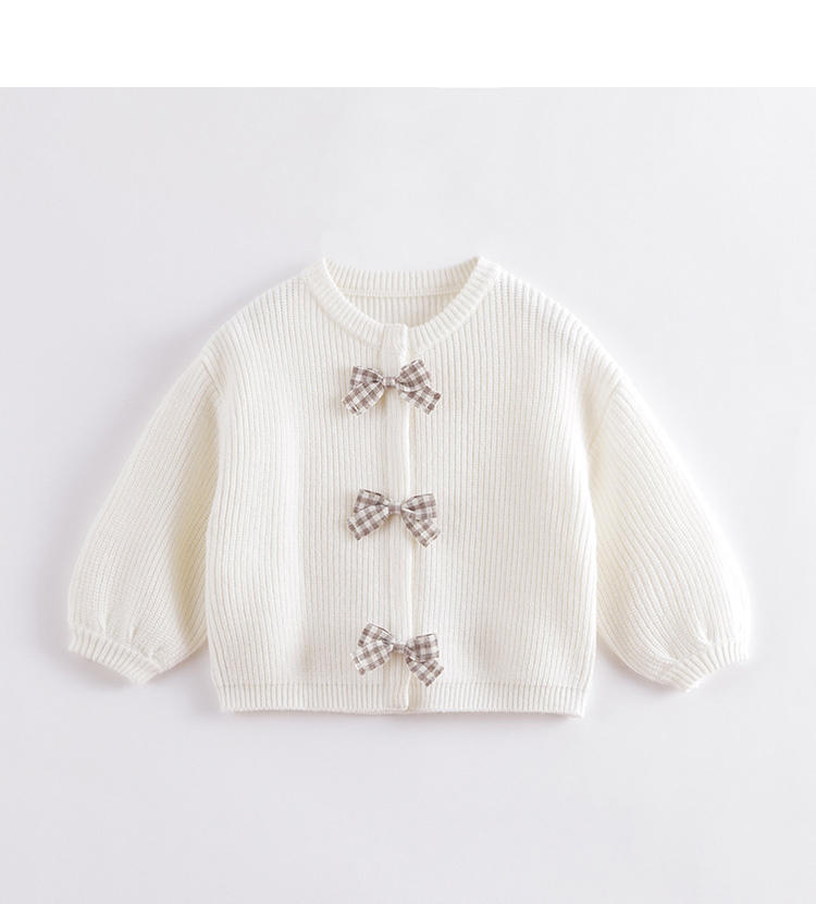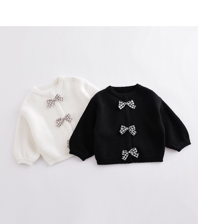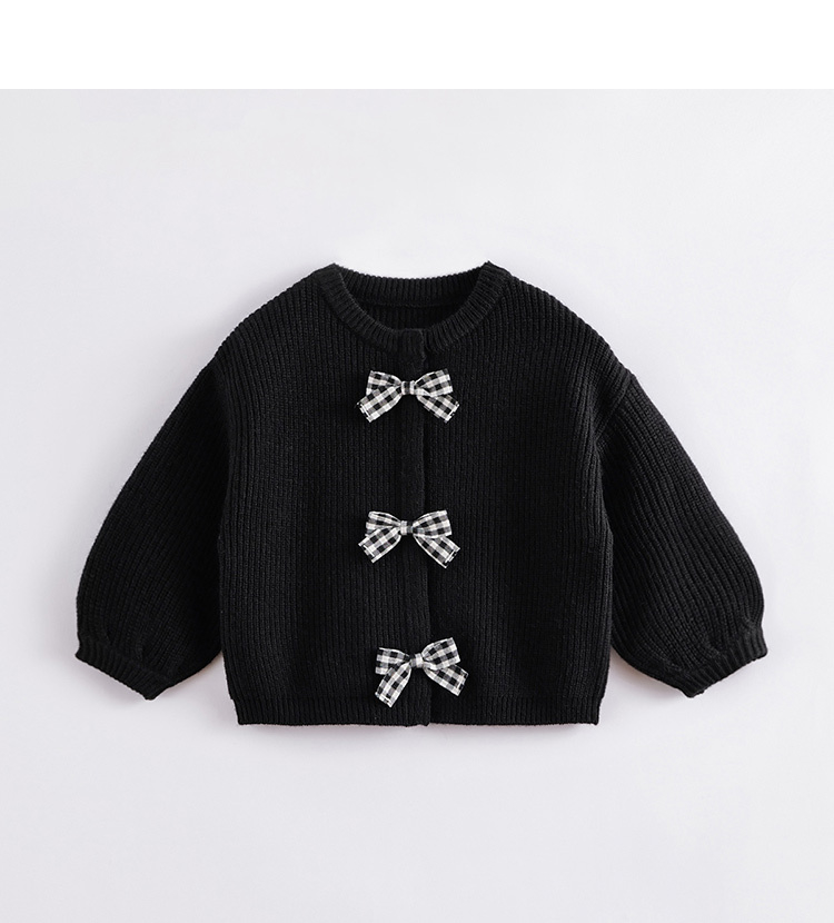 马克珍妮秋装新款 女童圆领蝴蝶结针织开衫落肩毛衣 221372