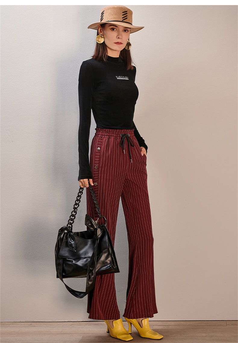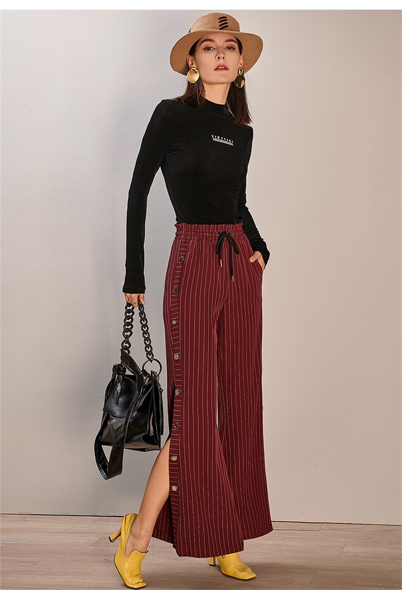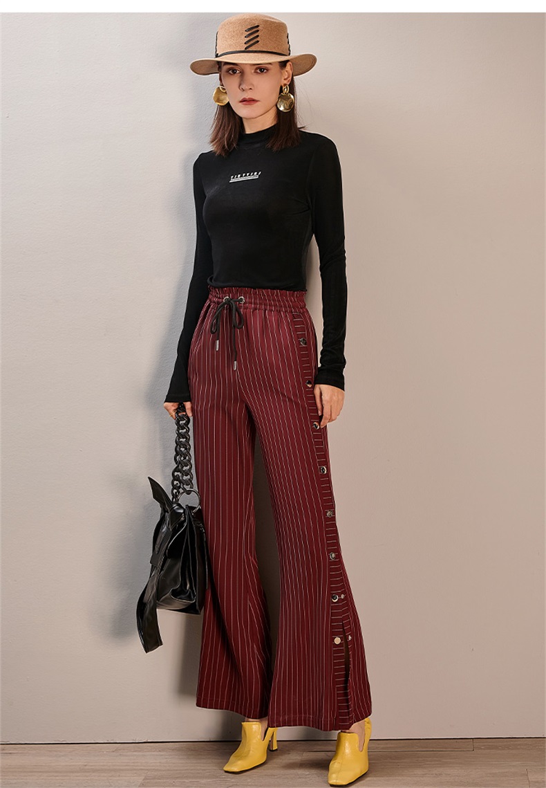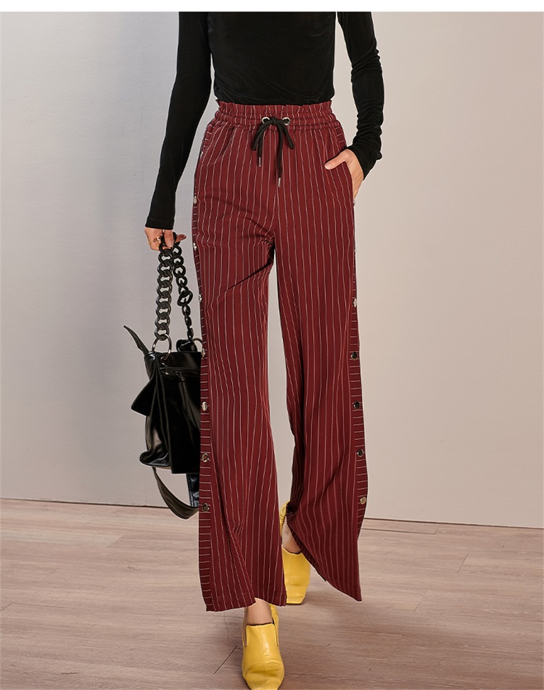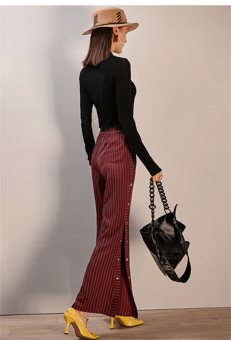 剩 芳外春季新款侧边开衩宽松显腿长阔腿裤潮流条纹休闲裤女0398