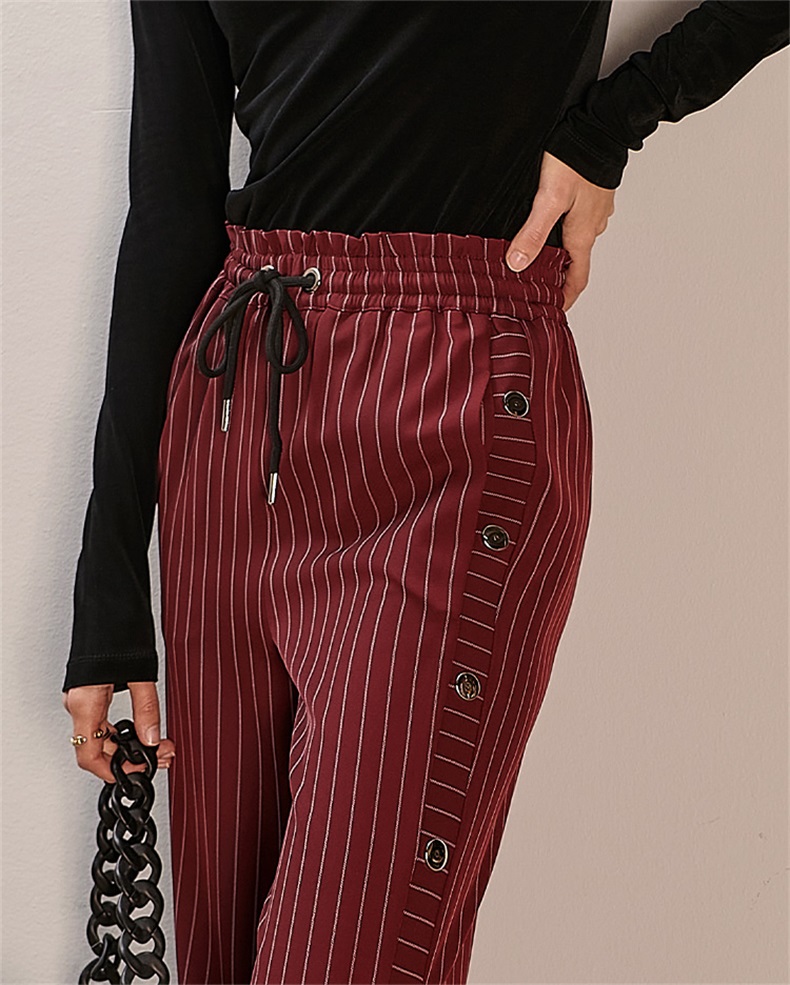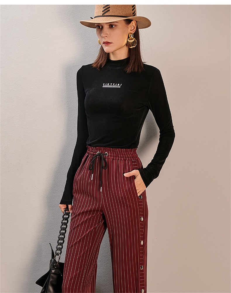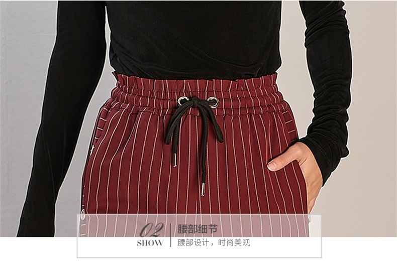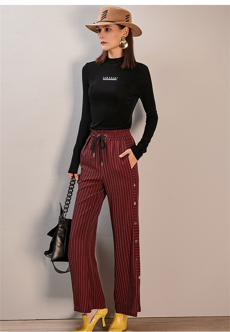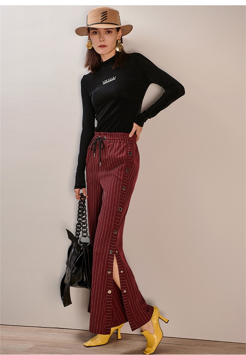 剩 芳外春季新款侧边开衩宽松显腿长阔腿裤潮流条纹休闲裤女0398