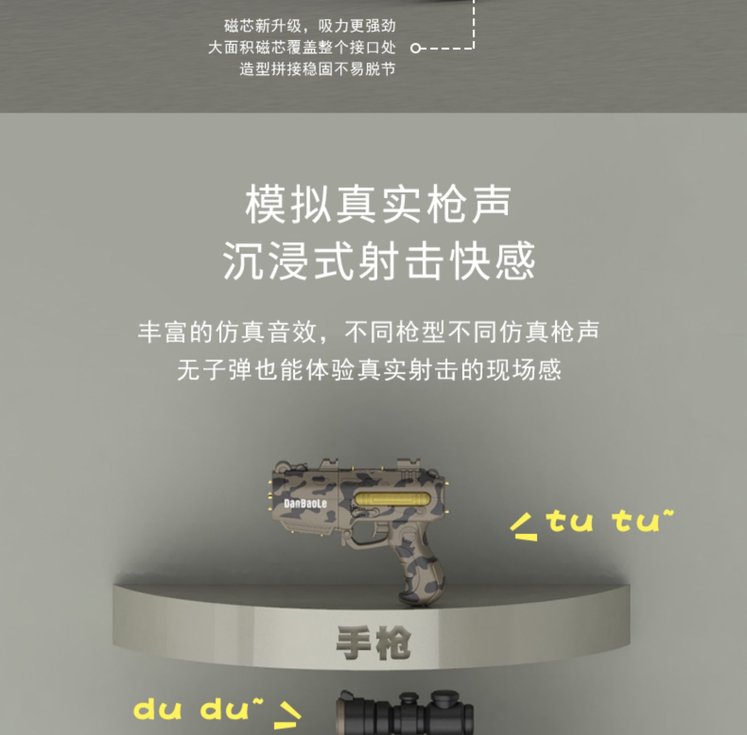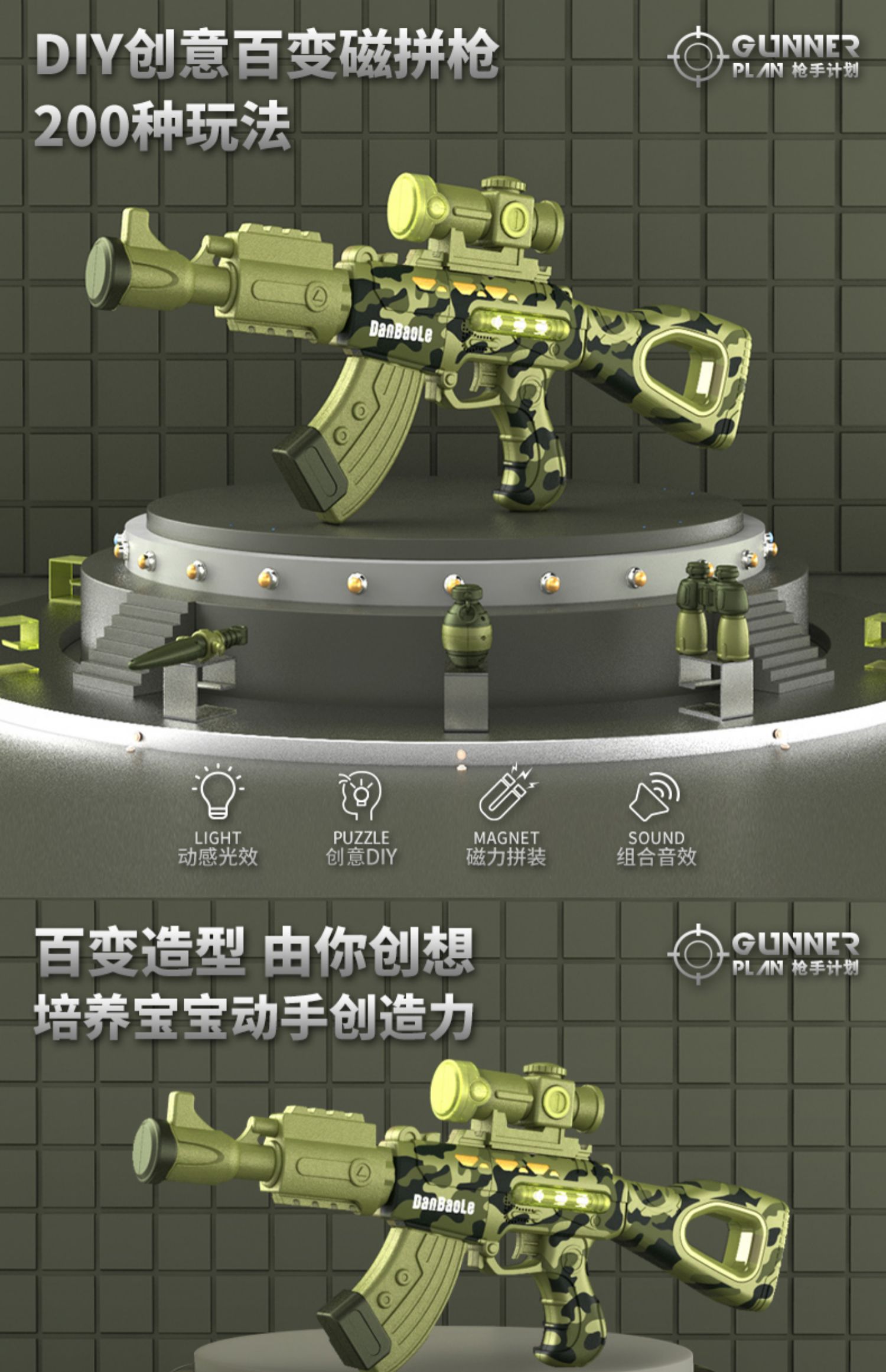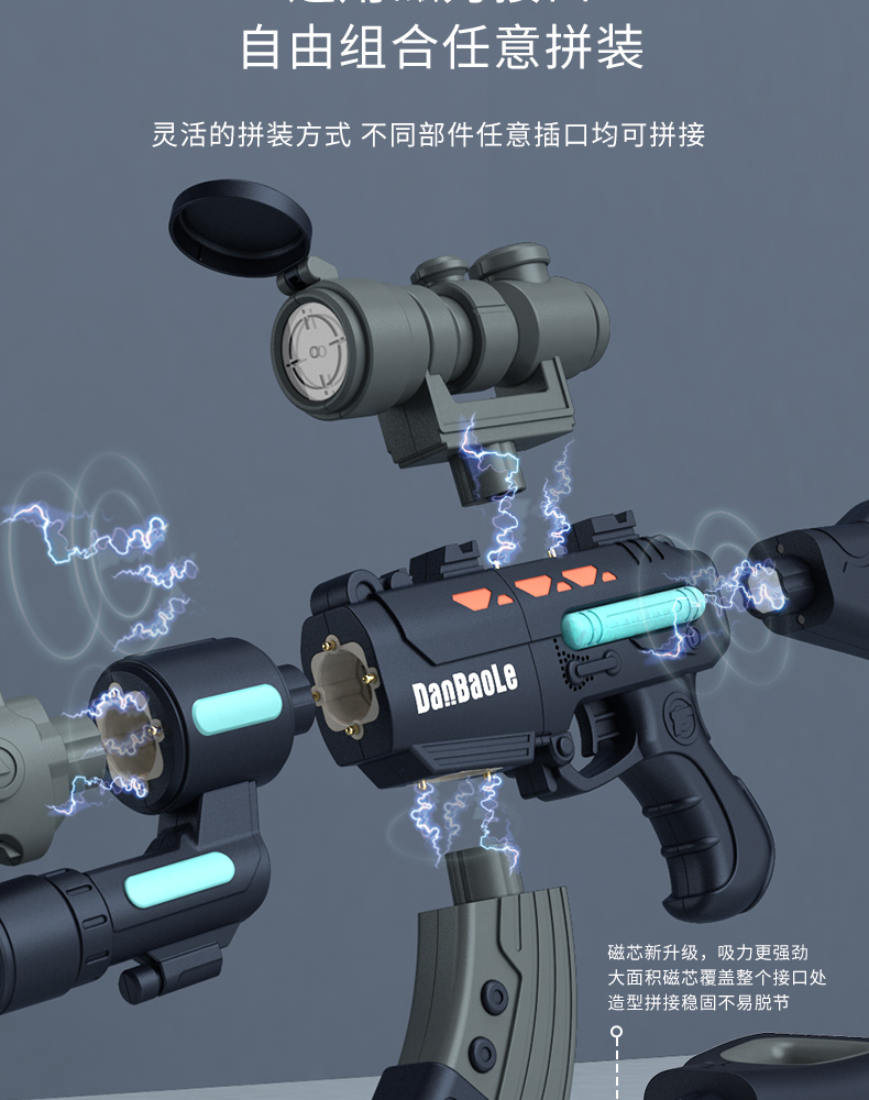 【蛋宝乐】儿童磁力1.5代升级款磁力枪仿真电动声光百变拼装
