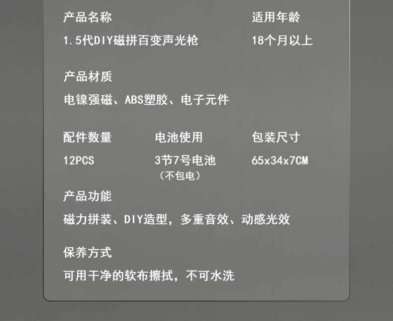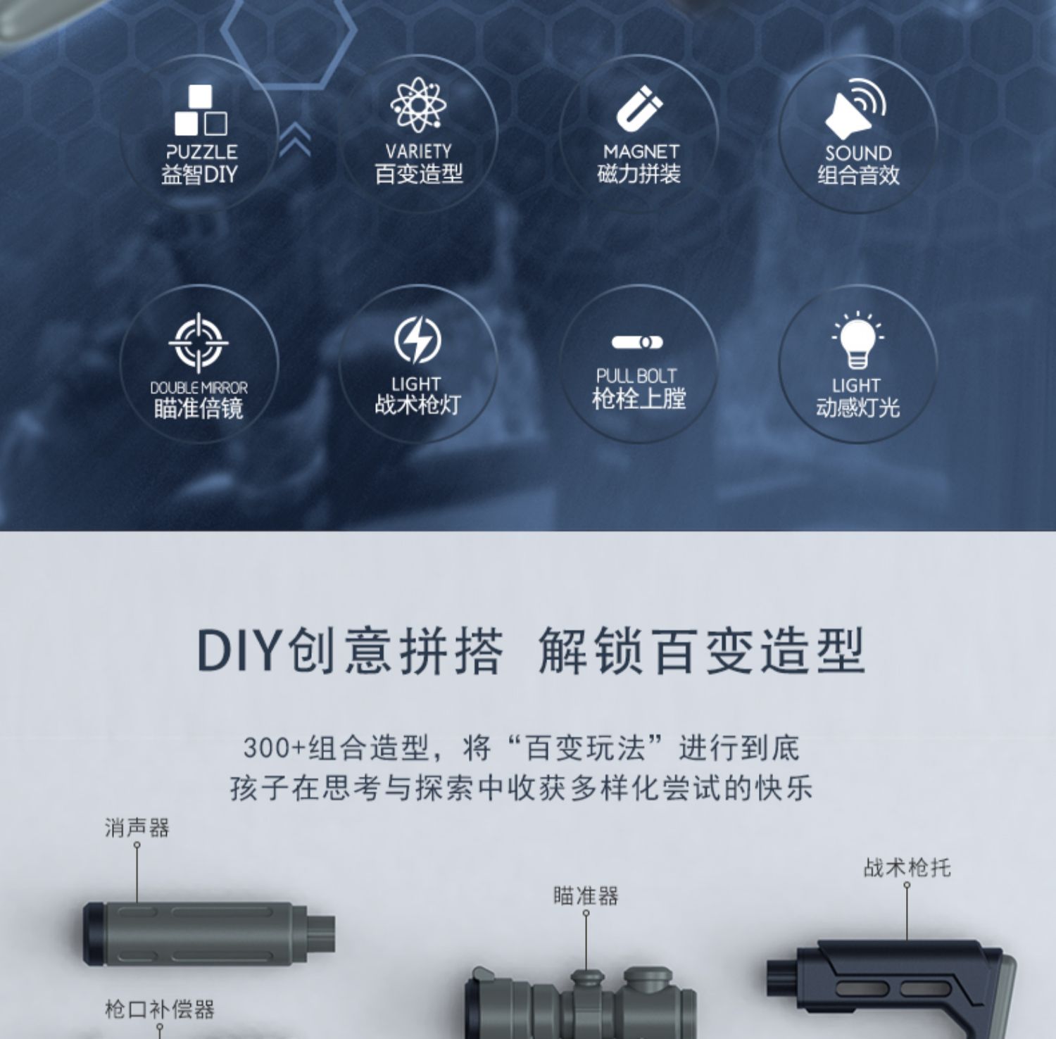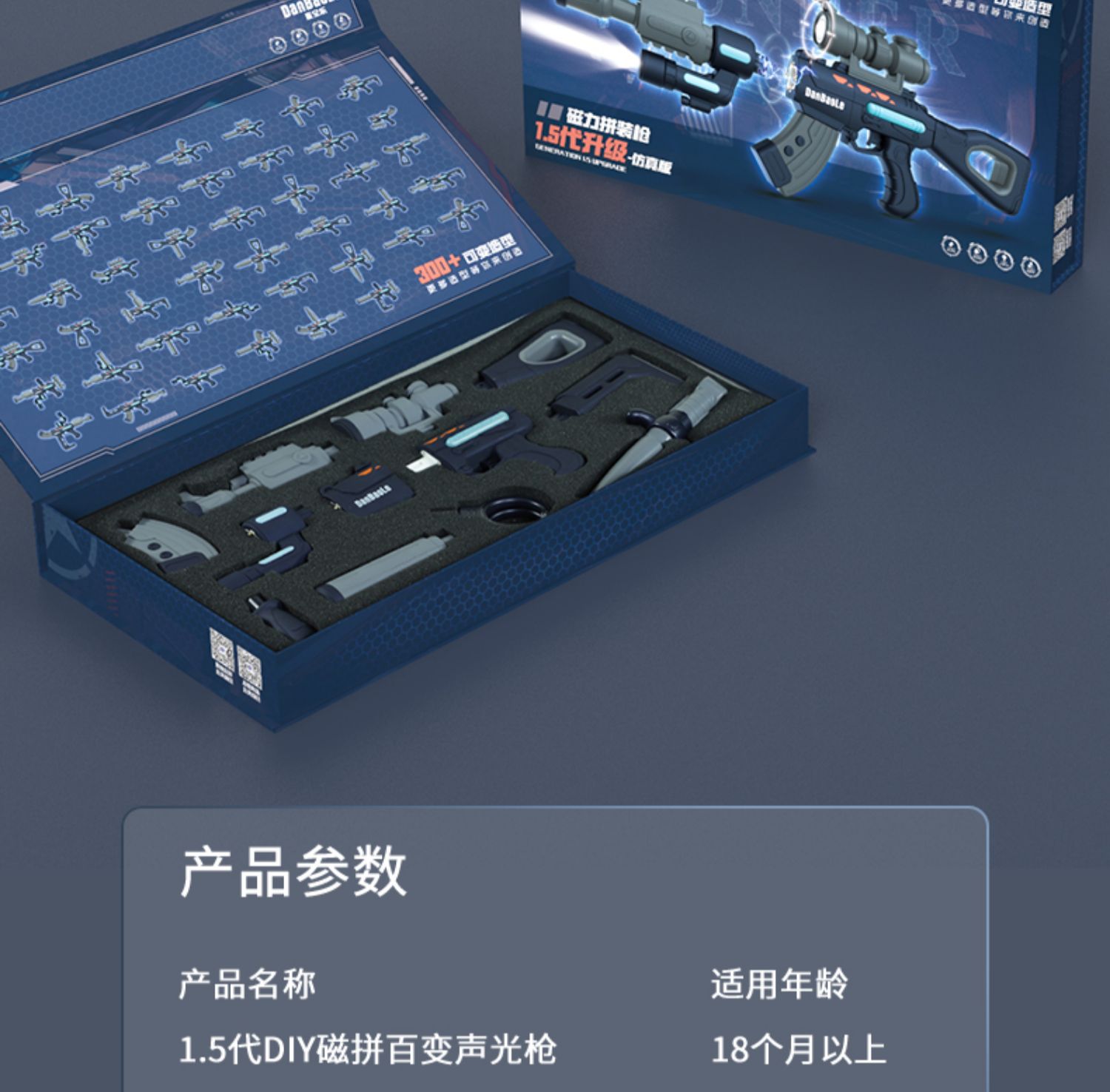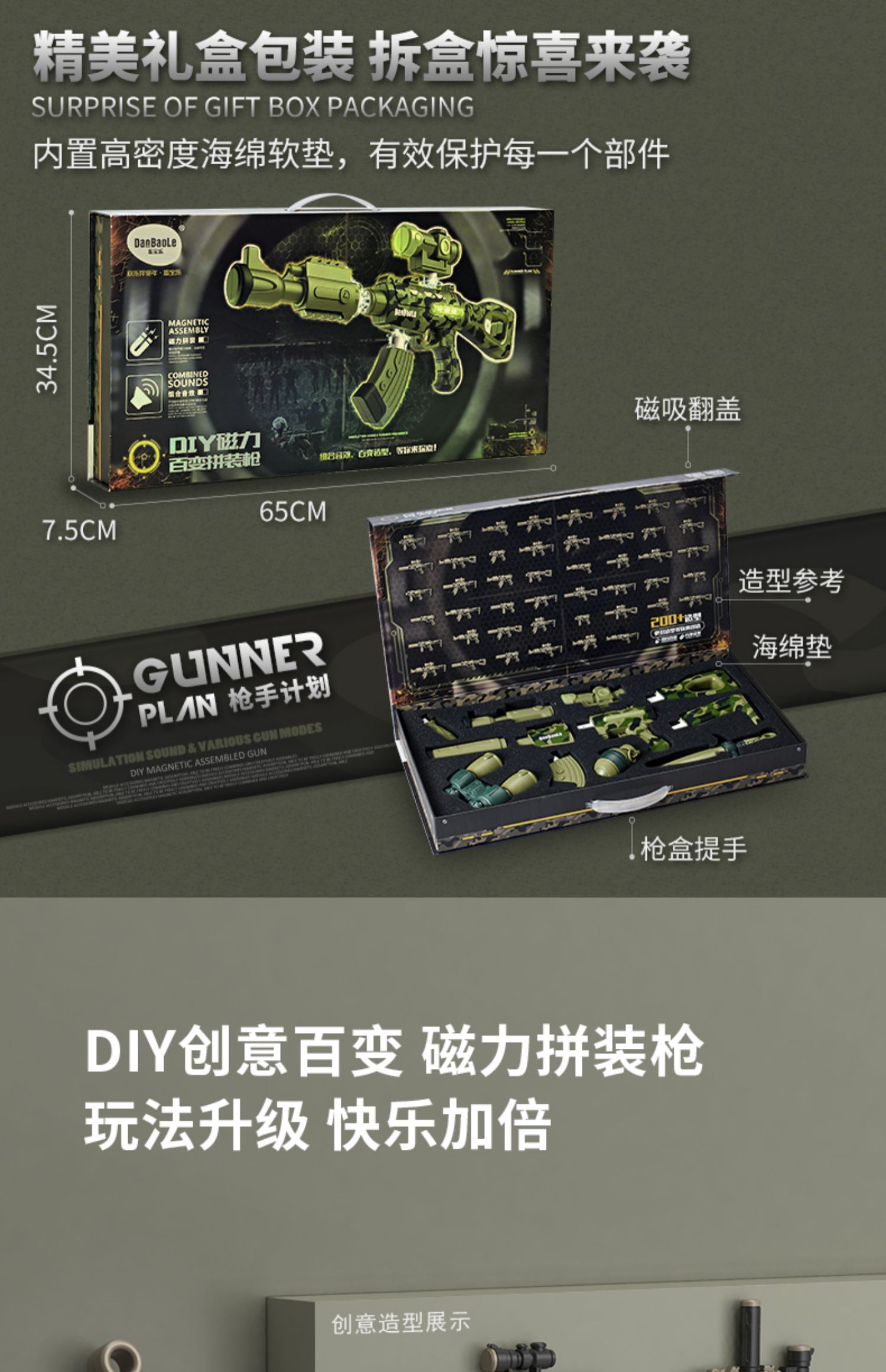 【蛋宝乐】儿童磁力1.5代升级款磁力枪仿真电动声光百变拼装