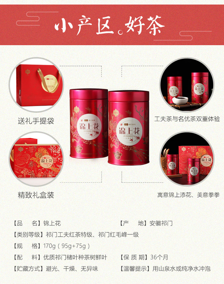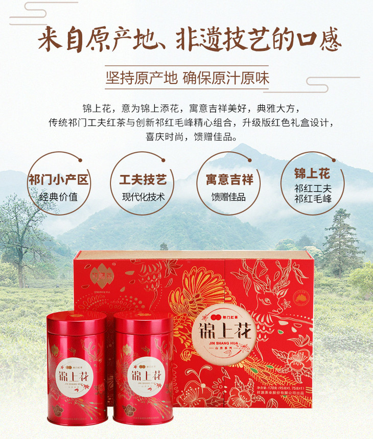 祥源茶 锦上花 祁门红茶 祁红毛峰 礼盒装170g
