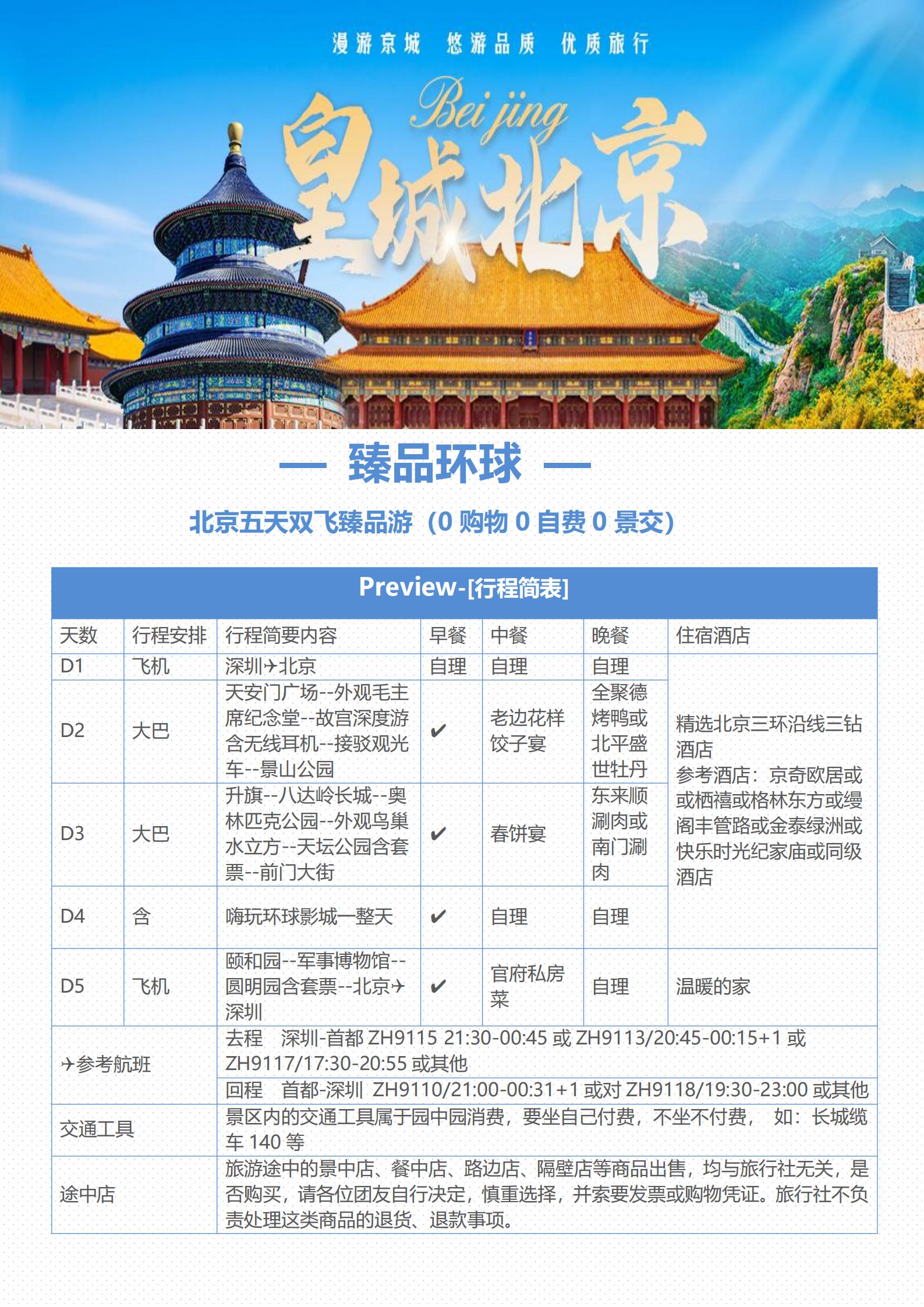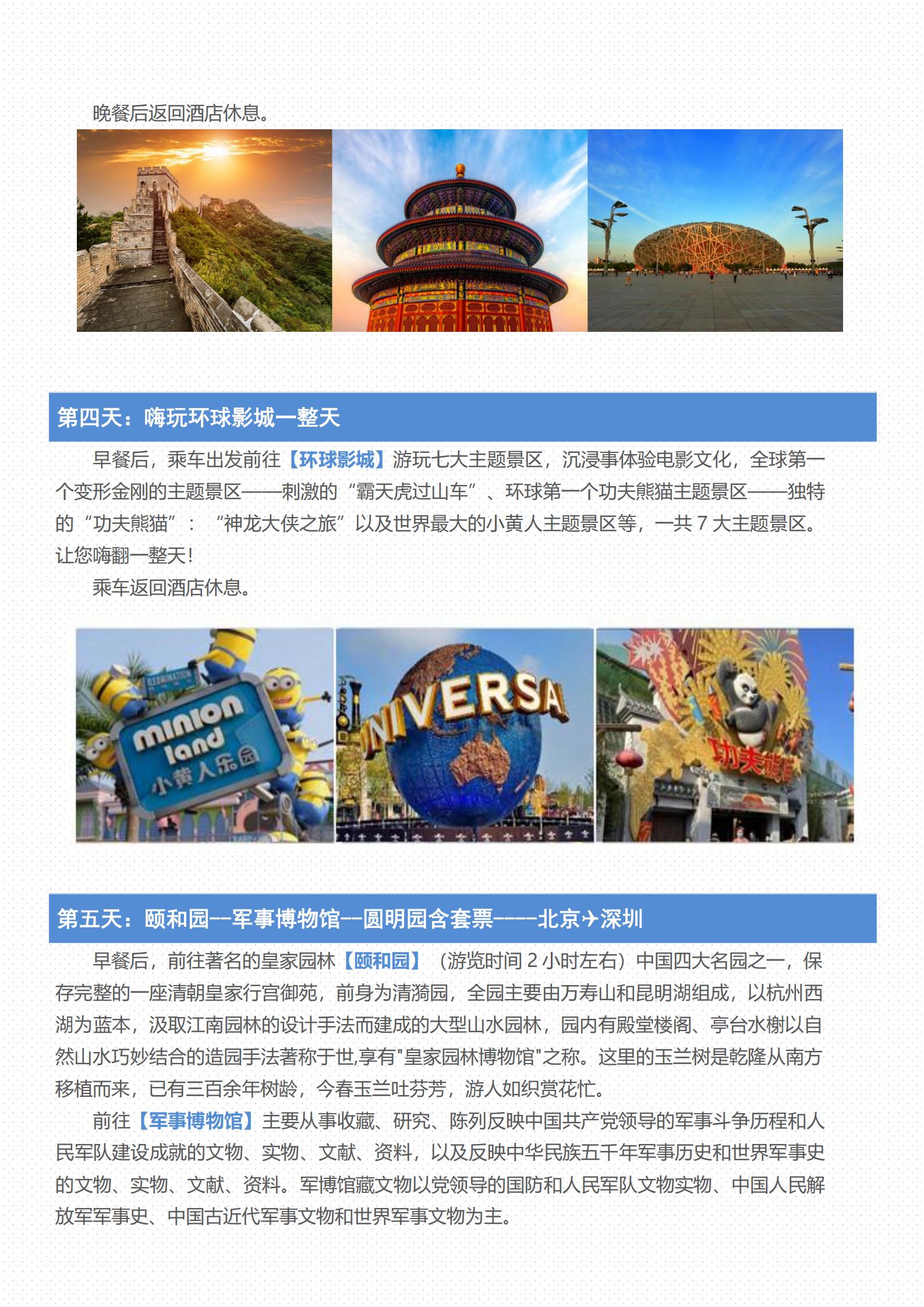 【五一】<北京5天双飞纯玩亲子团(3环沿线酒店)>环球影城、天坛、天安门广场、故宫、升旗仪式、八达岭长城、奥林匹克公园、颐和园、景山公园、前门大街、军事博物馆、圆明园