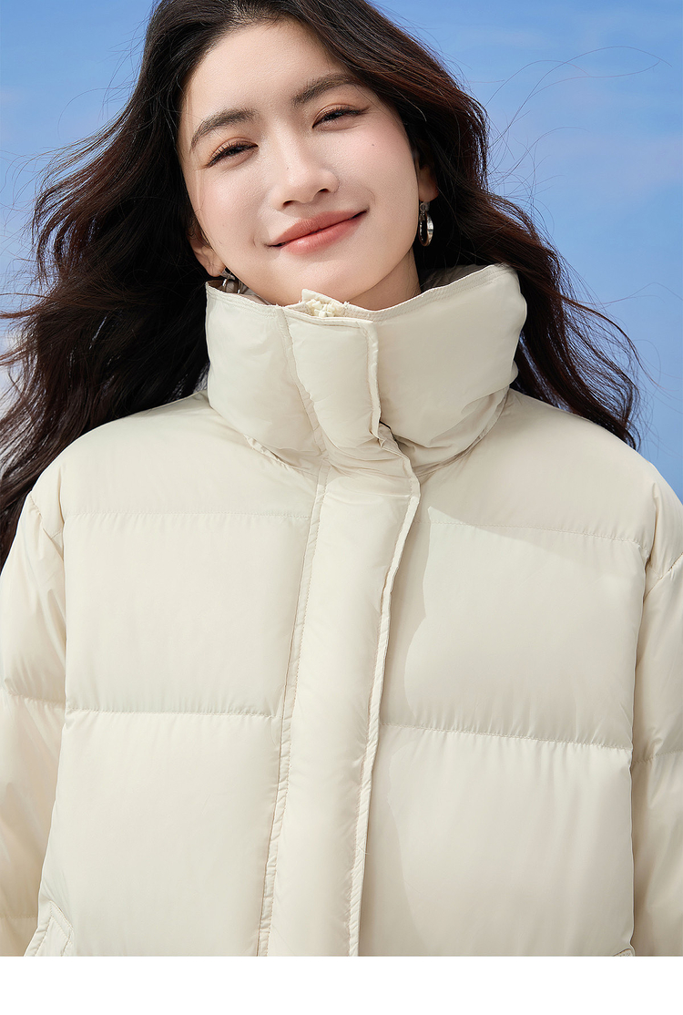 【年货节】熙世界奶呼呼杏色短款羽绒服女冬2025新款休闲落肩立领面包服外套