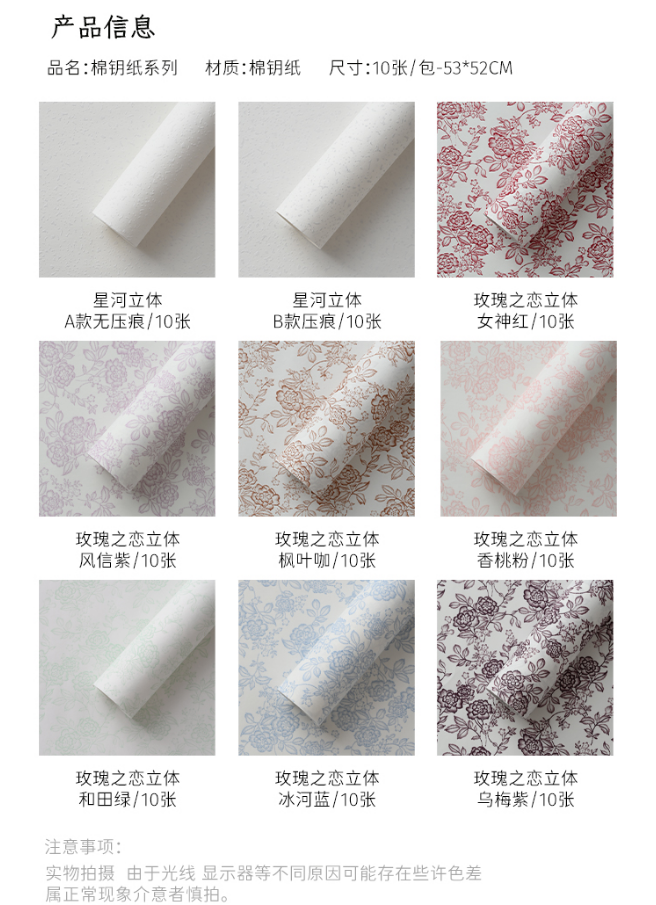 新款压纹浮雕木棉纸--玫瑰之恋(10张)