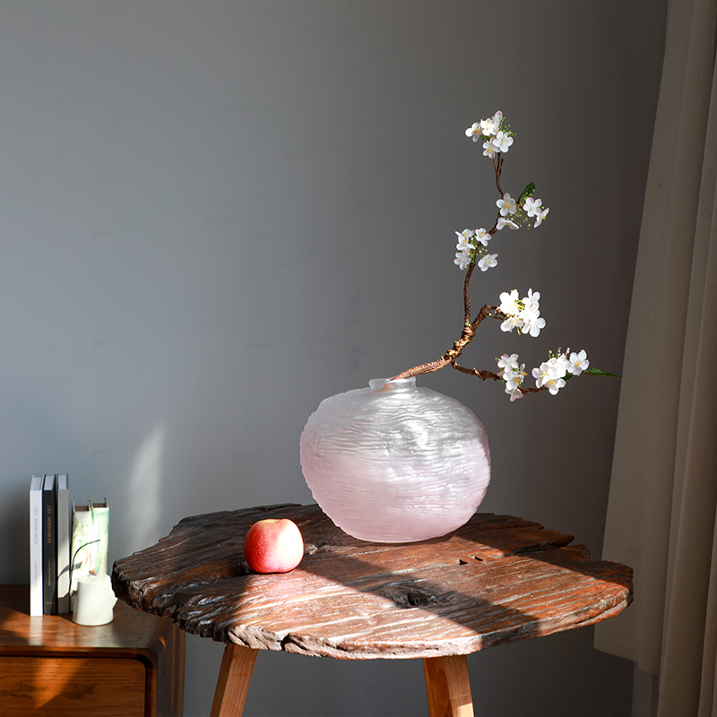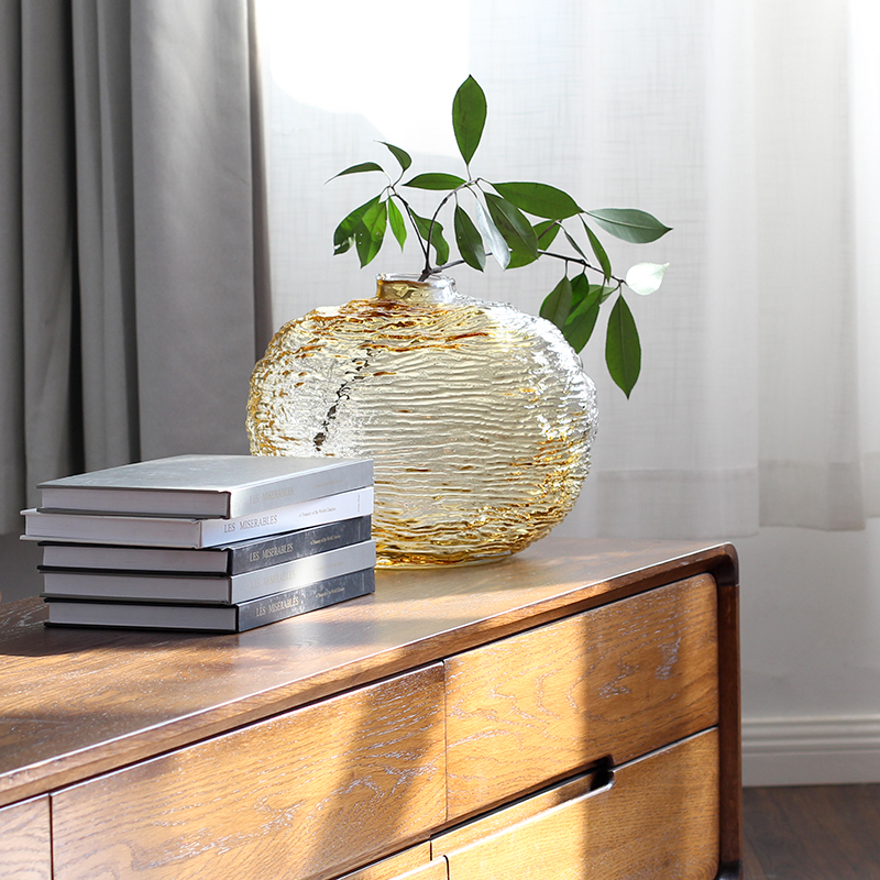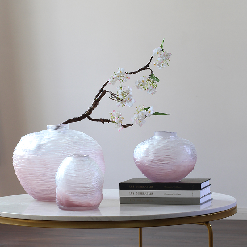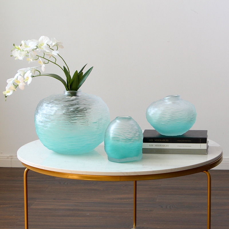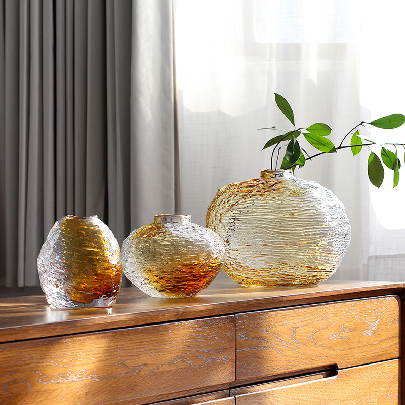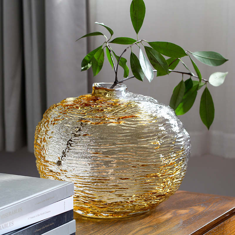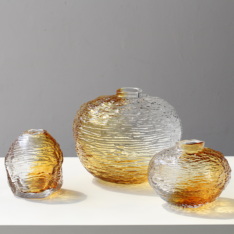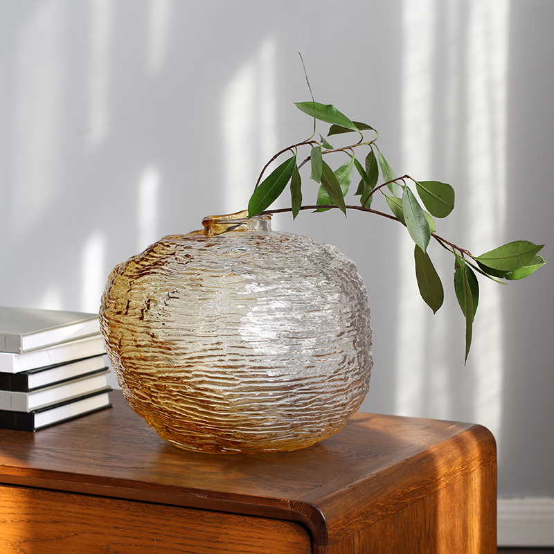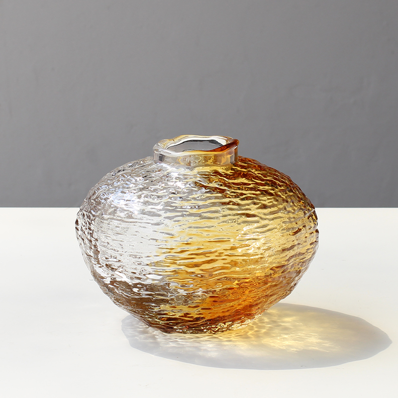 水波纹手感手工玻璃花瓶花插摆件