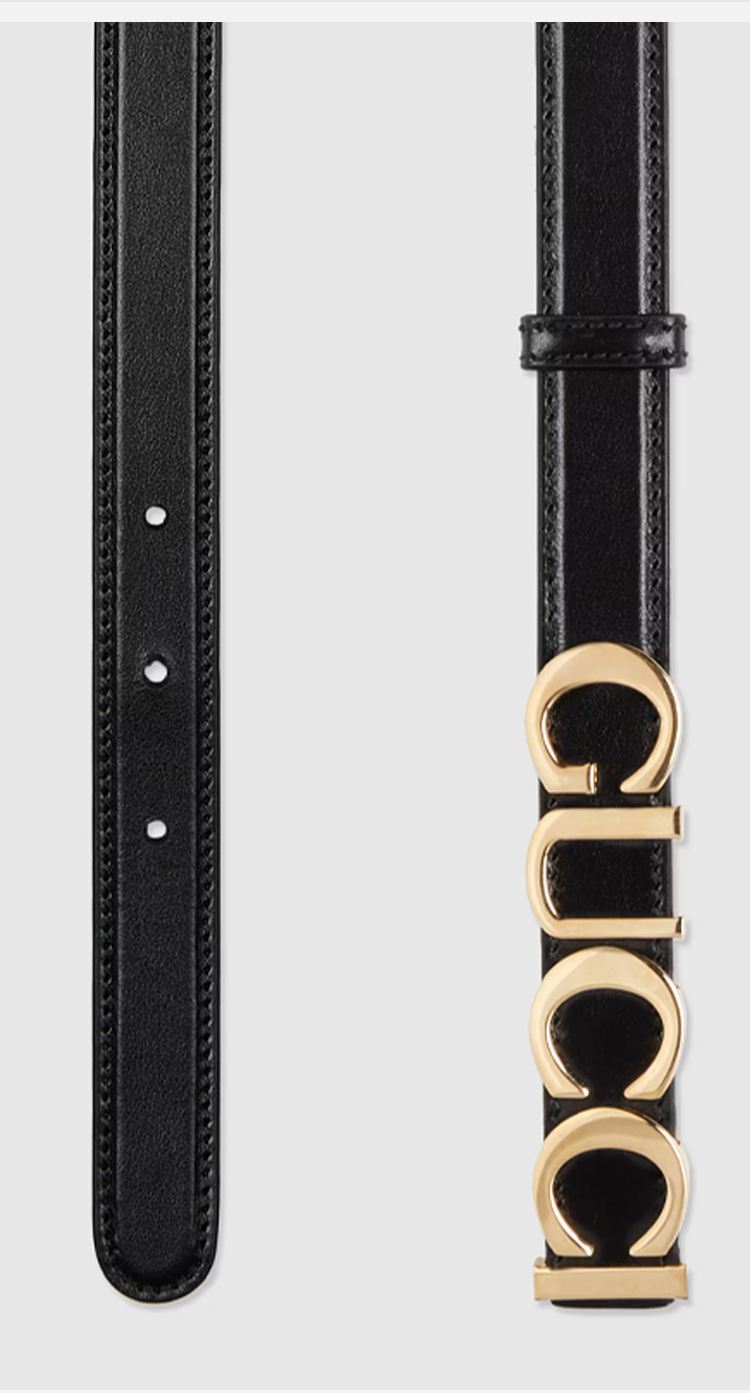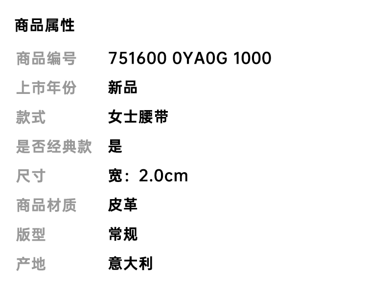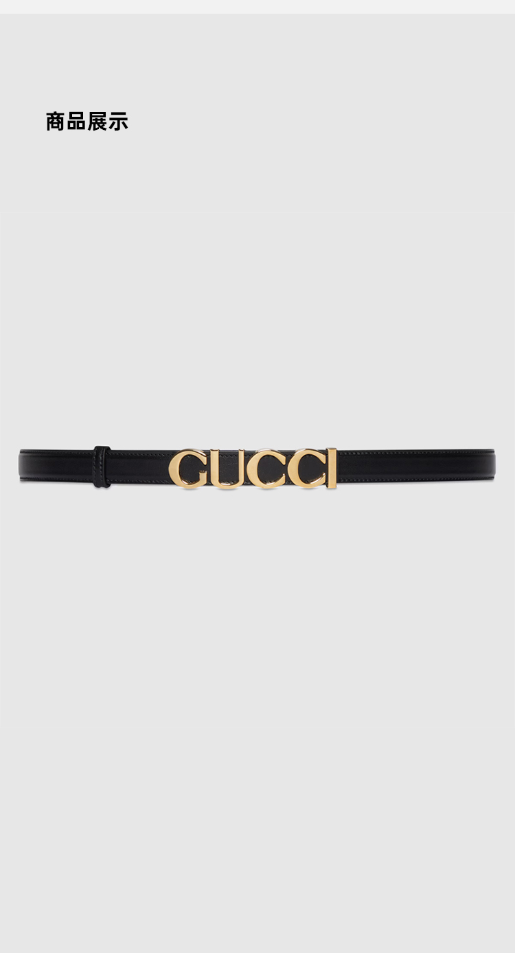 GUCCI 古驰 女士Gucci搭扣窄版皮革腰带 黑色 751600 0YA0G 1000