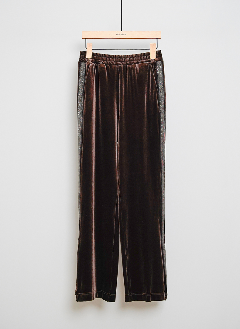 oldcolour秋冬款复古气质松紧腰直筒阔腿休闲长裤L44073426