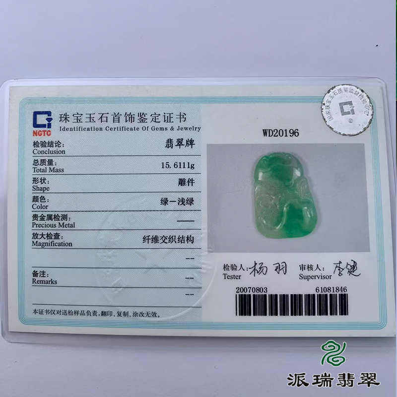 派瑞翡翠 翡翠挂件 糯冰 浅绿