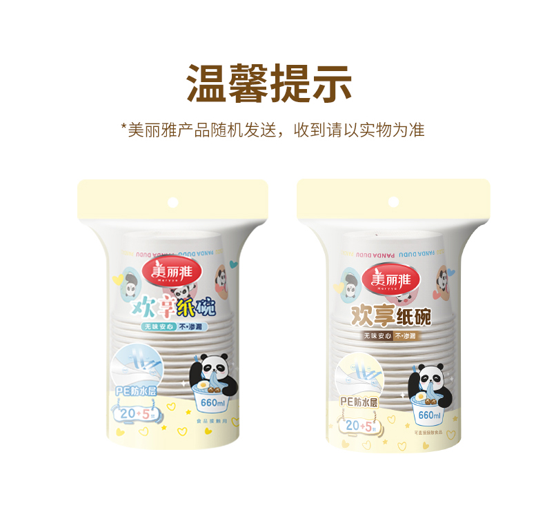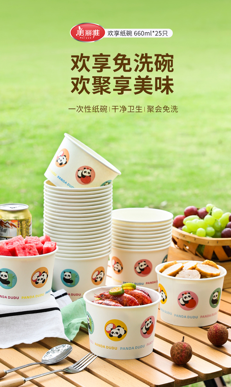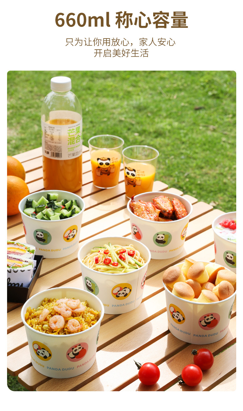 【批发】美丽雅660ml纸碗食品级家用加厚打包外卖餐盒 1袋